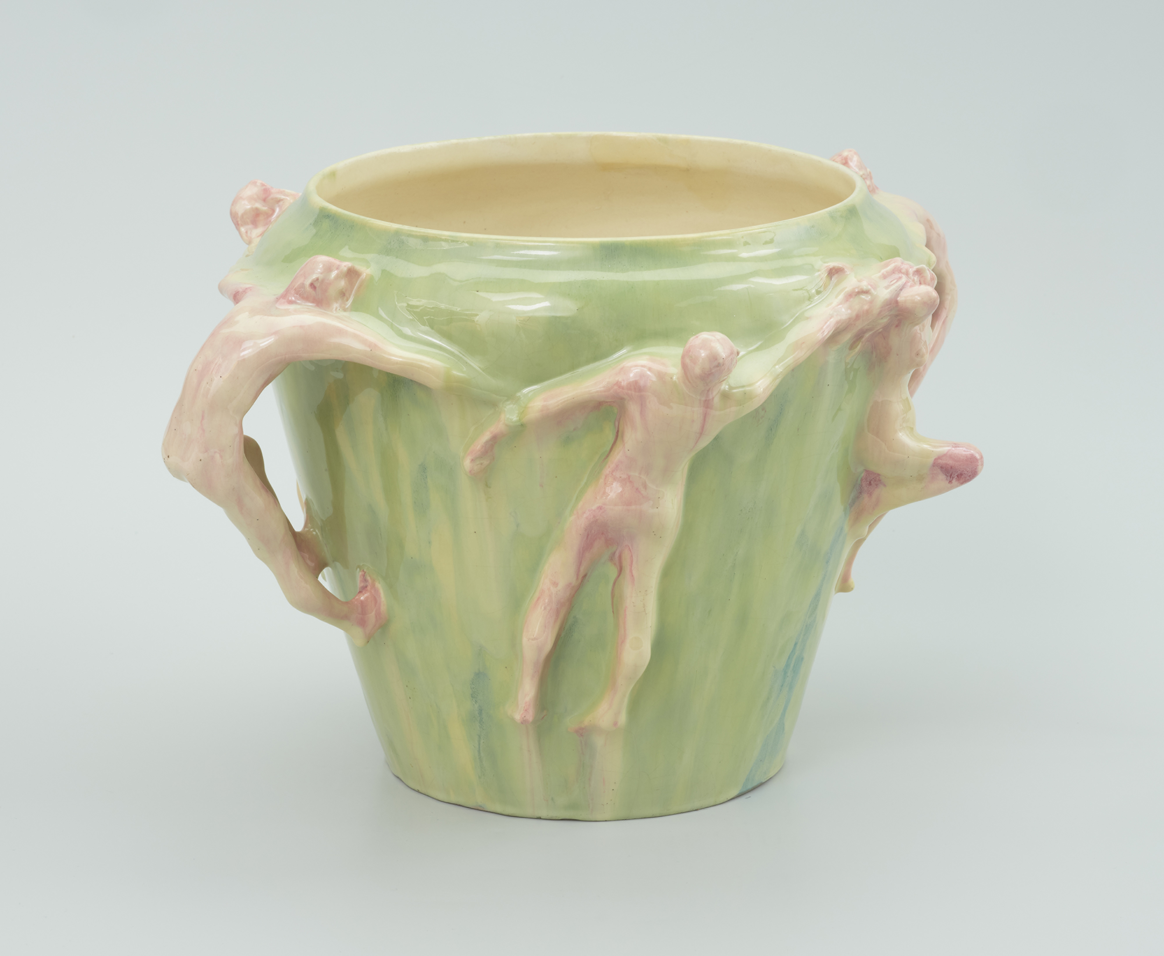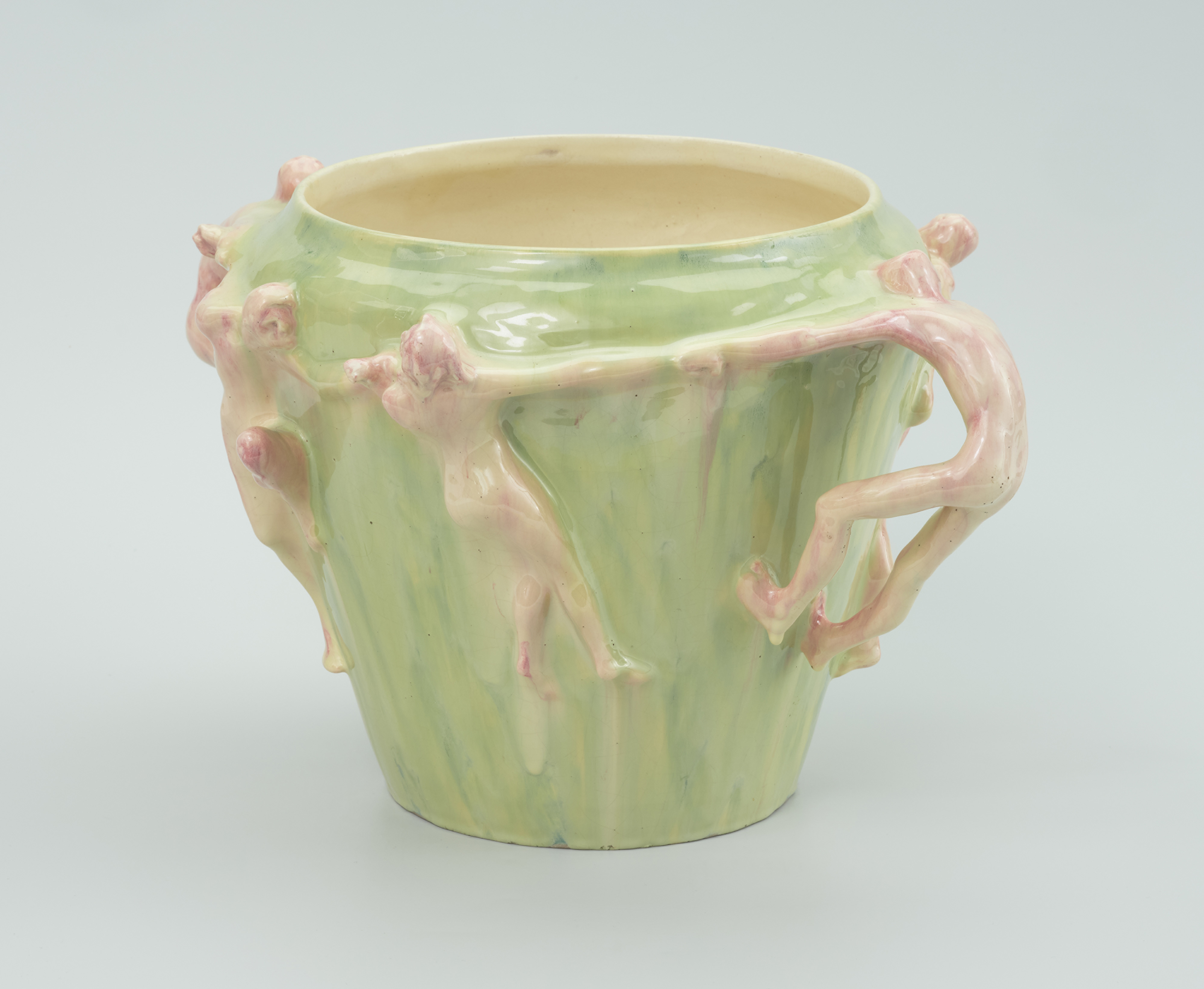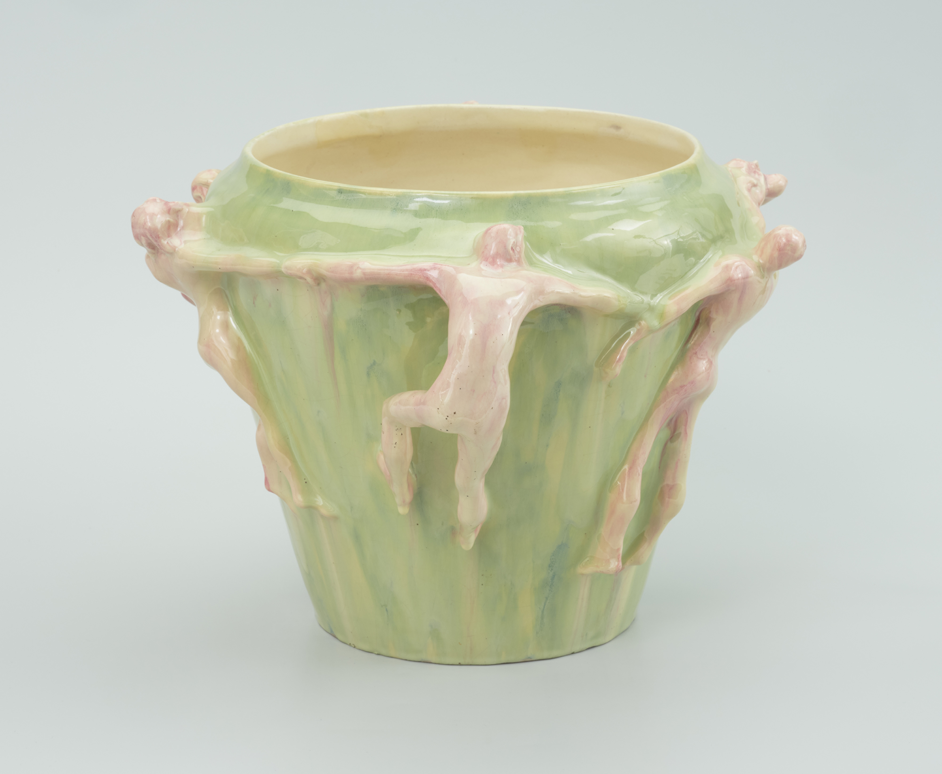 Jan Szczepkowski w latach 1892–1896 uczęszczał do Szkoły Przemysłu Drzewnego w Zakopanem, następnie zapisał się do Szkoły Sztuk Pięknych w Krakowie. Do 1900 roku odwiedził tamtejsze pracownie Alfreda Dauna, Konstantego Laszczki i Jacka Malczewskiego. W latach 1904–1907 przebywał z kilkoma przerwami w Paryżu, zapoznając się z pracami Auguste’a Rodina i Antoine’a Bourdelle’a. Pierwszy etap twórczości, przypadający na okres 1900–1914, naznaczyły tendencje powszechne w dwóch towarzystwach – Polskiej Sztuki Stosowanej i Artystów Polskich „Sztuka”, do których Szczepkowski należał. Jednym z elementów programowych było tematyczne nawiązanie do rodzimej kultury ludowej, widoczne w gipsowej kompozycji Dziewki (1903) oraz pierwszej dużej realizacji architektonicznej – figurach chłopów zdobiących fasadę Domu Towarzystwa Rolniczego w Krakowie (1910). Bardziej uniwersalne treści przekazał rzeźbiarz w wazonie z kręgiem postaci zaprojektowanym dla wytwórni J. Niedźwiedzki i S-ka w Dębnikach, której kierownikiem działu ceramiki artystycznej Szczepkowski został jeszcze w czasie studiów. We wszystkich tych dziełach uwidoczniła się secesyjna estetyka bliska Laszczce, zaś w pracach z zakresu drobnego rzemiosła – także bezpośrednie nawiązania do wzorców francuskich. Waza o kształcie przypominającym klasyczny skyfos wyróżnia się pełnoplastyczną dekoracją w formie nagich, rodinowsko abstrahowanych kobiecych i męskich postaci, trzymających się za ręce i oplatających brzusiec zielono szkliwionego naczynia. Dwie z nich, umieszczone po przeciwległych stronach, tworzą pionowe uchwyty (imadła), odrywając korpusy od podłoża i pozostawiając na nim jakby krwawe zacieki. Sytuacja ta przypomina szaleńczy pląs na łące, słowiański korowód lub taniec starogrecki, które na Wschodzie i Zachodzie Europy fascynowały artystów od schyłku XIX wieku. W archaicznych fantazjach i rekonstrukcjach poszukiwali źródeł regeneracji nowoczesnej kultury, w której pączkowały nudyzm, wegetarianizm czy neopoganizm.