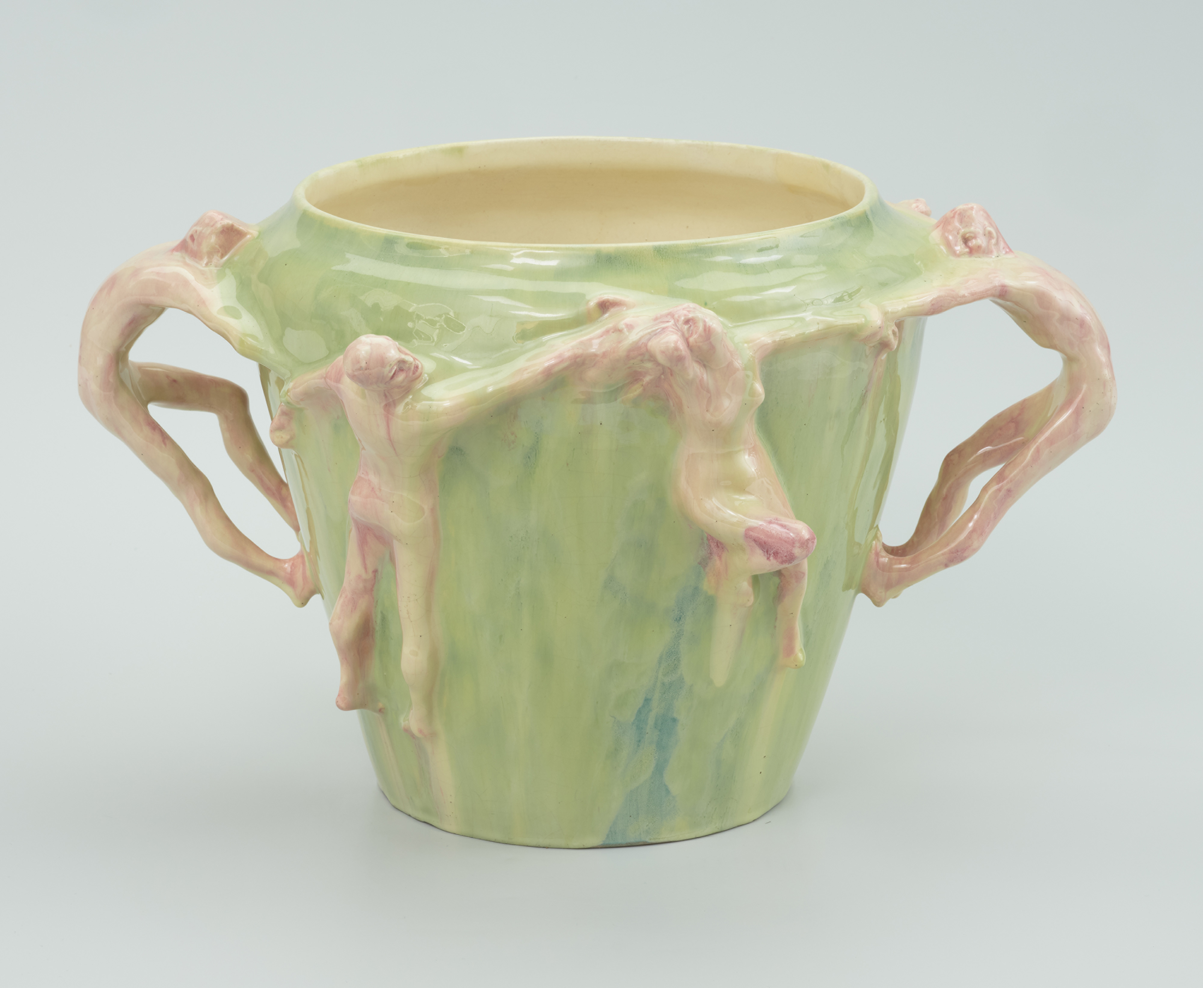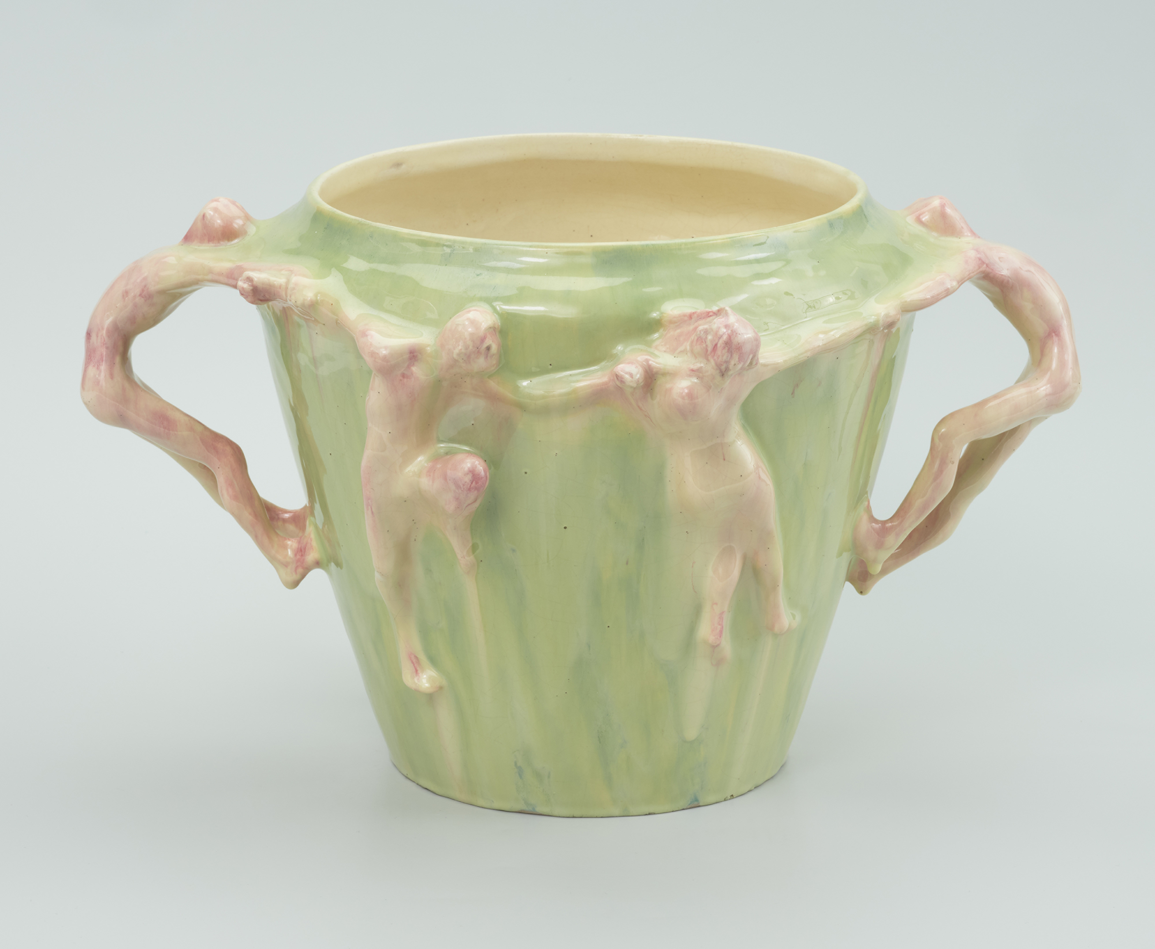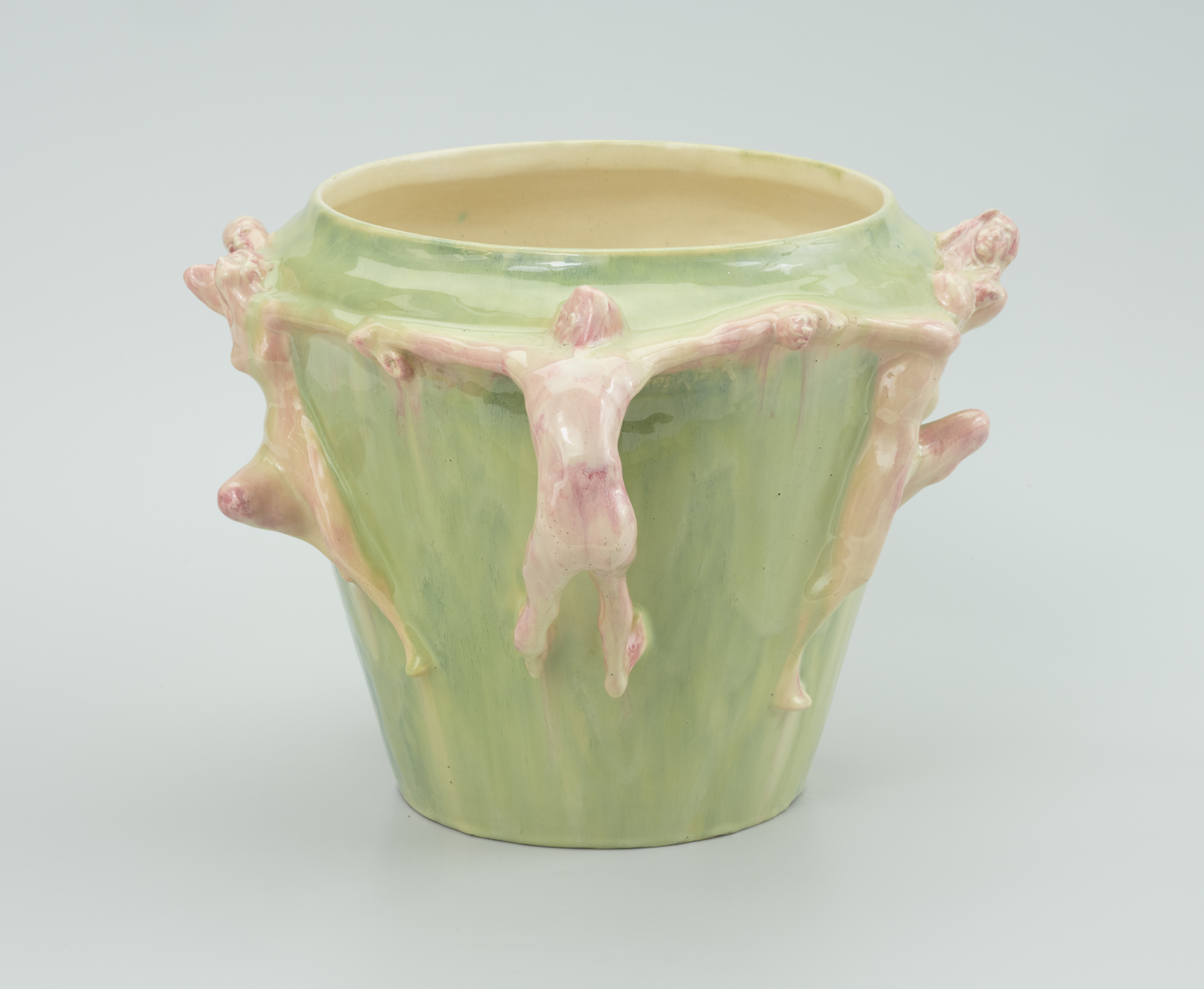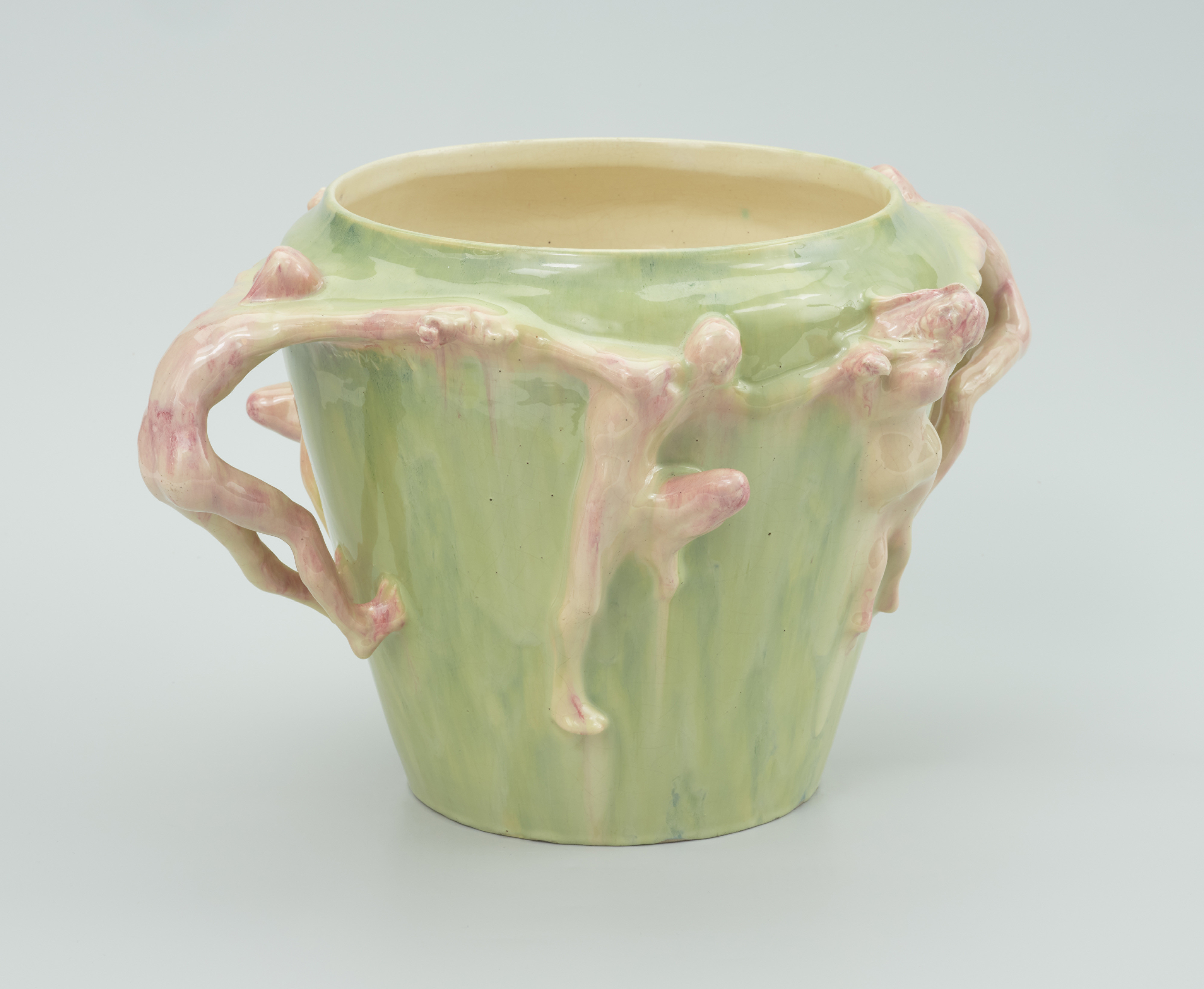 Jan Szczepkowski w latach 1892–1896 uczęszczał do Szkoły Przemysłu Drzewnego w Zakopanem, następnie zapisał się do Szkoły Sztuk Pięknych w Krakowie. Do 1900 roku odwiedził tamtejsze pracownie Alfreda Dauna, Konstantego Laszczki i Jacka Malczewskiego. W latach 1904–1907 przebywał z kilkoma przerwami w Paryżu, zapoznając się z pracami Auguste’a Rodina i Antoine’a Bourdelle’a. Pierwszy etap twórczości, przypadający na okres 1900–1914, naznaczyły tendencje powszechne w dwóch towarzystwach – Polskiej Sztuki Stosowanej i Artystów Polskich „Sztuka”, do których Szczepkowski należał. Jednym z elementów programowych było tematyczne nawiązanie do rodzimej kultury ludowej, widoczne w gipsowej kompozycji Dziewki (1903) oraz pierwszej dużej realizacji architektonicznej – figurach chłopów zdobiących fasadę Domu Towarzystwa Rolniczego w Krakowie (1910). Bardziej uniwersalne treści przekazał rzeźbiarz w wazonie z kręgiem postaci zaprojektowanym dla wytwórni J. Niedźwiedzki i S-ka w Dębnikach, której kierownikiem działu ceramiki artystycznej Szczepkowski został jeszcze w czasie studiów. We wszystkich tych dziełach uwidoczniła się secesyjna estetyka bliska Laszczce, zaś w pracach z zakresu drobnego rzemiosła – także bezpośrednie nawiązania do wzorców francuskich. Waza o kształcie przypominającym klasyczny skyfos wyróżnia się pełnoplastyczną dekoracją w formie nagich, rodinowsko abstrahowanych kobiecych i męskich postaci, trzymających się za ręce i oplatających brzusiec zielono szkliwionego naczynia. Dwie z nich, umieszczone po przeciwległych stronach, tworzą pionowe uchwyty (imadła), odrywając korpusy od podłoża i pozostawiając na nim jakby krwawe zacieki. Sytuacja ta przypomina szaleńczy pląs na łące, słowiański korowód lub taniec starogrecki, które na Wschodzie i Zachodzie Europy fascynowały artystów od schyłku XIX wieku. W archaicznych fantazjach i rekonstrukcjach poszukiwali źródeł regeneracji nowoczesnej kultury, w której pączkowały nudyzm, wegetarianizm czy neopoganizm.