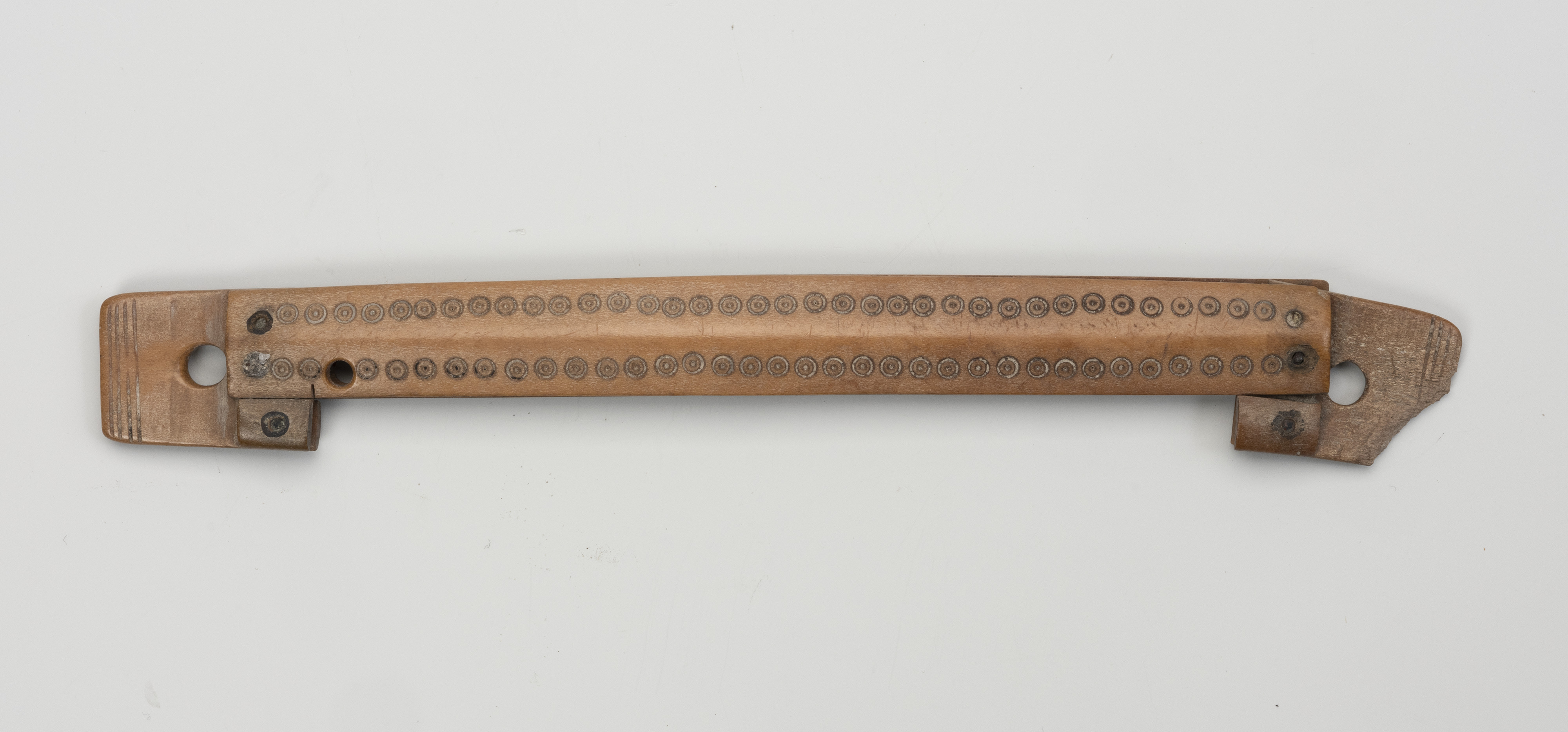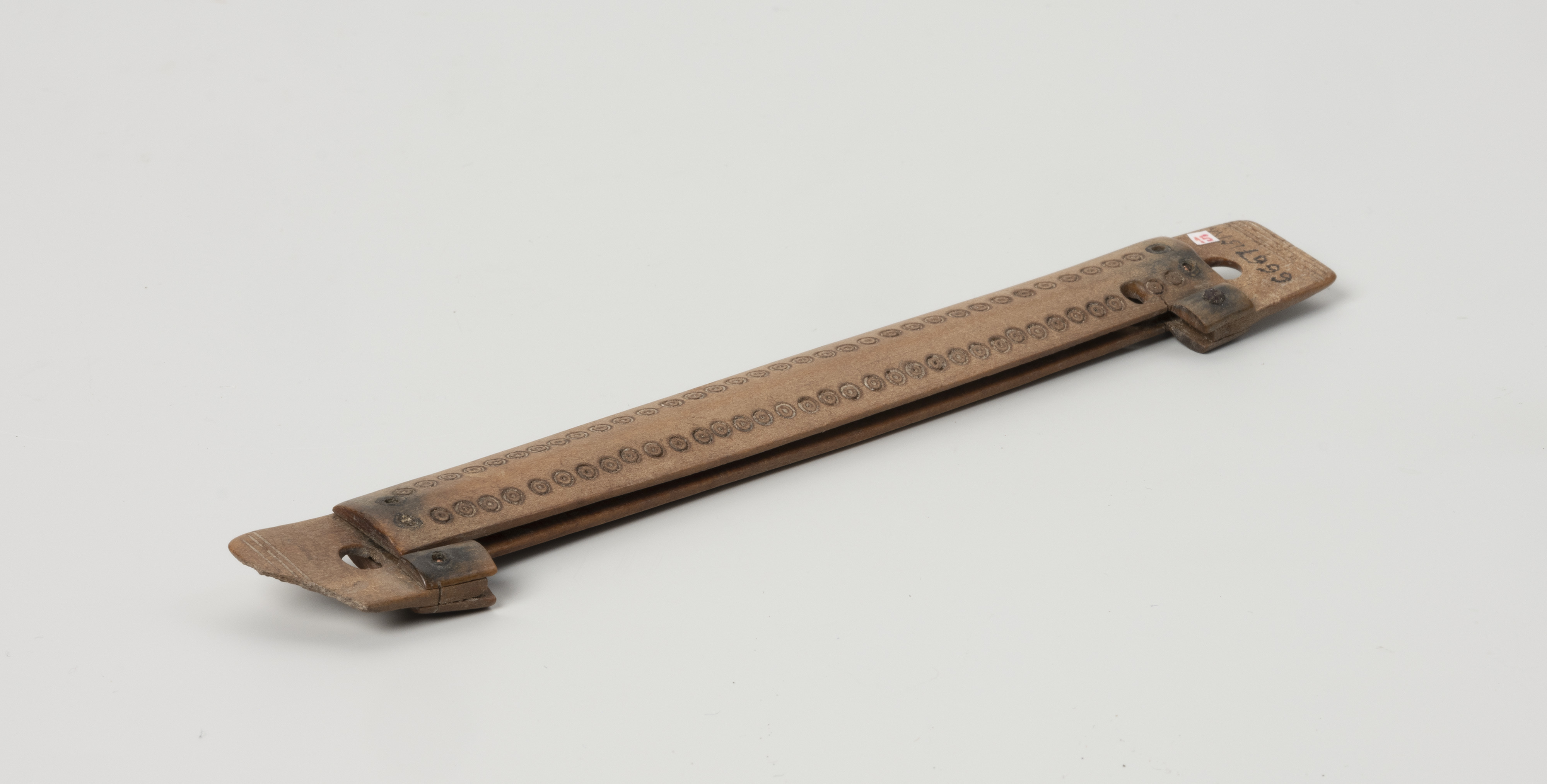 Zachowana w całości pochewka grzebienia jednostronnego pozyskana została podczas wieloletnich badań archeologicznych prowadzonych w obrębie wykopu nr VI w kwartale nr 5 szczecińskiego Podzamcza. Było to pewnego rodzaju etui, które miało chronić szczególnie narażone na uszkodzenia, delikatne zęby grzebieni jednostronnych. Przy założonej pochewce wsuwały się one w przestrzeń pomiędzy okładzinami.