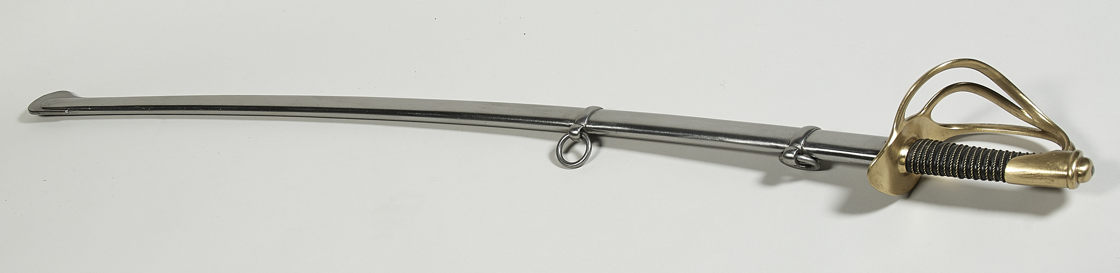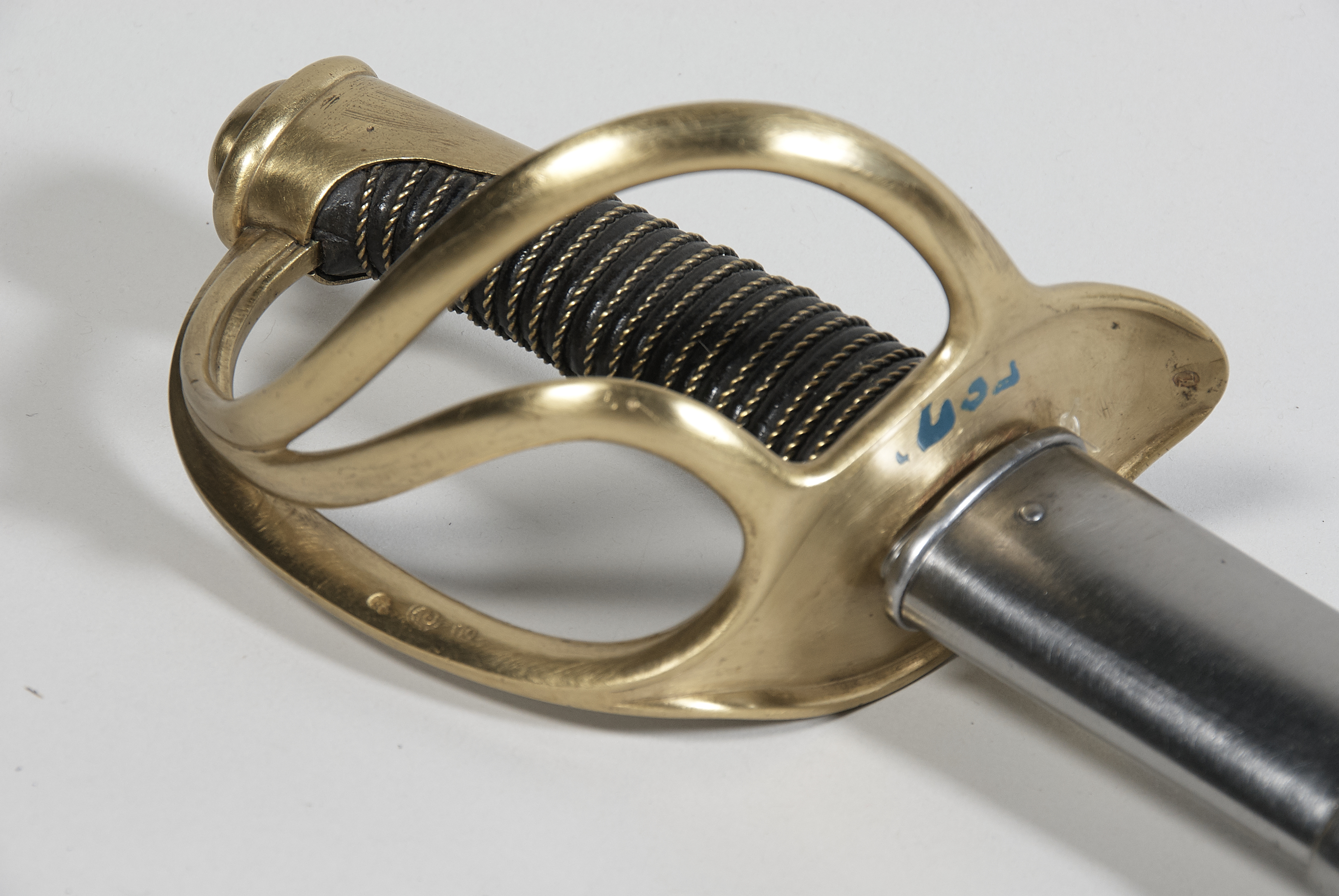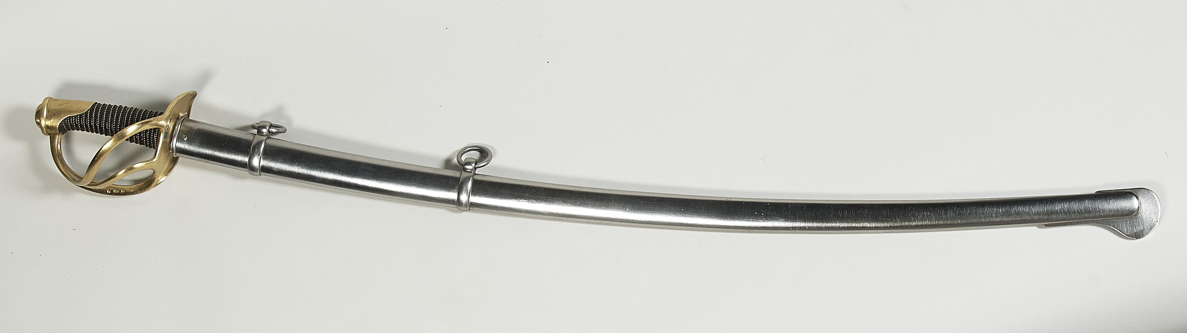 Francuska szabla z 1823 r. z zakrzywioną głownią o długości 92,5 cm. Na zastawie czyli tylnej części szabli wyryty napis Manufre R le Klingenthal gbu. Rękojeść szabli jest mosiężna z kabłąkiem i tarczkowym jelcem, natomiast sam trzon pokryty jest czarną skórą i opleciony mosiężnym drutem. Pochwa jest żelazna zakończona trzewikiem. Tego typu szable rzecz jasna wykorzystywane były do zadawania szeregu rodzaju cięć, rzadziej pchnięć. Szabla zyskała ogromną popularność w Polsce W XVII w., co doprowadziło do powstania jej kultu jako jedynej broni godnej polskiego szlachcica. Jako broń, popularna do końca XIX w. a nawet początków wieku XX.