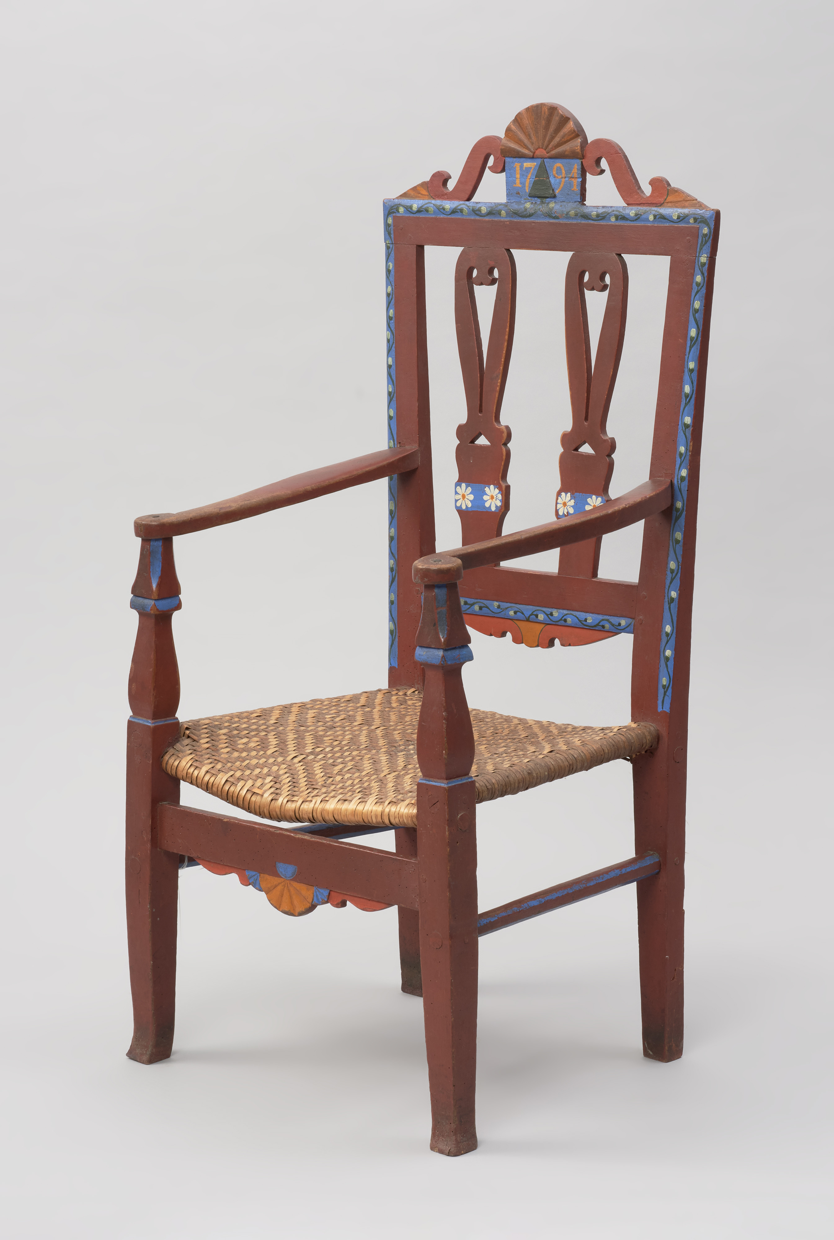Fotele były tradycyjnymi meblami służącymi do siedzenia. Od krzeseł odróżniały je boczne poręcze (podłokietniki) oraz znacznie wyższe oparcie, przywodzące na myśl tron. Zdaniem etnografa Romana Reinfussa szersze rozpowszechnienie foteli wiąże się prawdopodobnie dopiero z okresem renesansu, kiedy krzesło ramowe typu sedia otrzymało dodatkowe oparcia boczne (…). Fotele najpierw pojawiły się w dworach szlacheckich i domach mieszczańskich, dopiero z czasem zaczęło po nie sięgać meblarstwo ludowe. Sprzęty zaopatrzone w tylne i boczne oparcia rozpowszechniły się przede wszystkim w izbach wiejskich zachodniej i północnej Europy. Na Pomorzu Zachodnim występowały fotele z siedziskami wyplatanymi z dartych korzeni drzew, wikliny, słomy bądź trzciny. Zdobiła je bogata malatura najczęściej o roślinnych motywach lub ornamentacja snycerska. W zbiorach etnograficznych Muzeum Narodowego w Szczecinie znajduje się fotel wykonany na terenie Pomorza Zachodniego, najprawdopodobniej w 1794 roku. Na rok wykonania wskazuje data umieszczona na zaplecku mebla. Fotel jest wyrobem stolarskim, rzemieślniczym (warsztat nieznany). Ma siedzisko misternie wyplecione z korzeni sosen w dwóch odcieniach. Zdobiony jest motywem wachlarza oraz ornamentem roślinnym złożonym z drobnych kwiatków. Do zbiorów MNS trafił jako przekaz ze zlikwidowanego w 1951 roku Muzeum Regionalnego w Białogardzie.