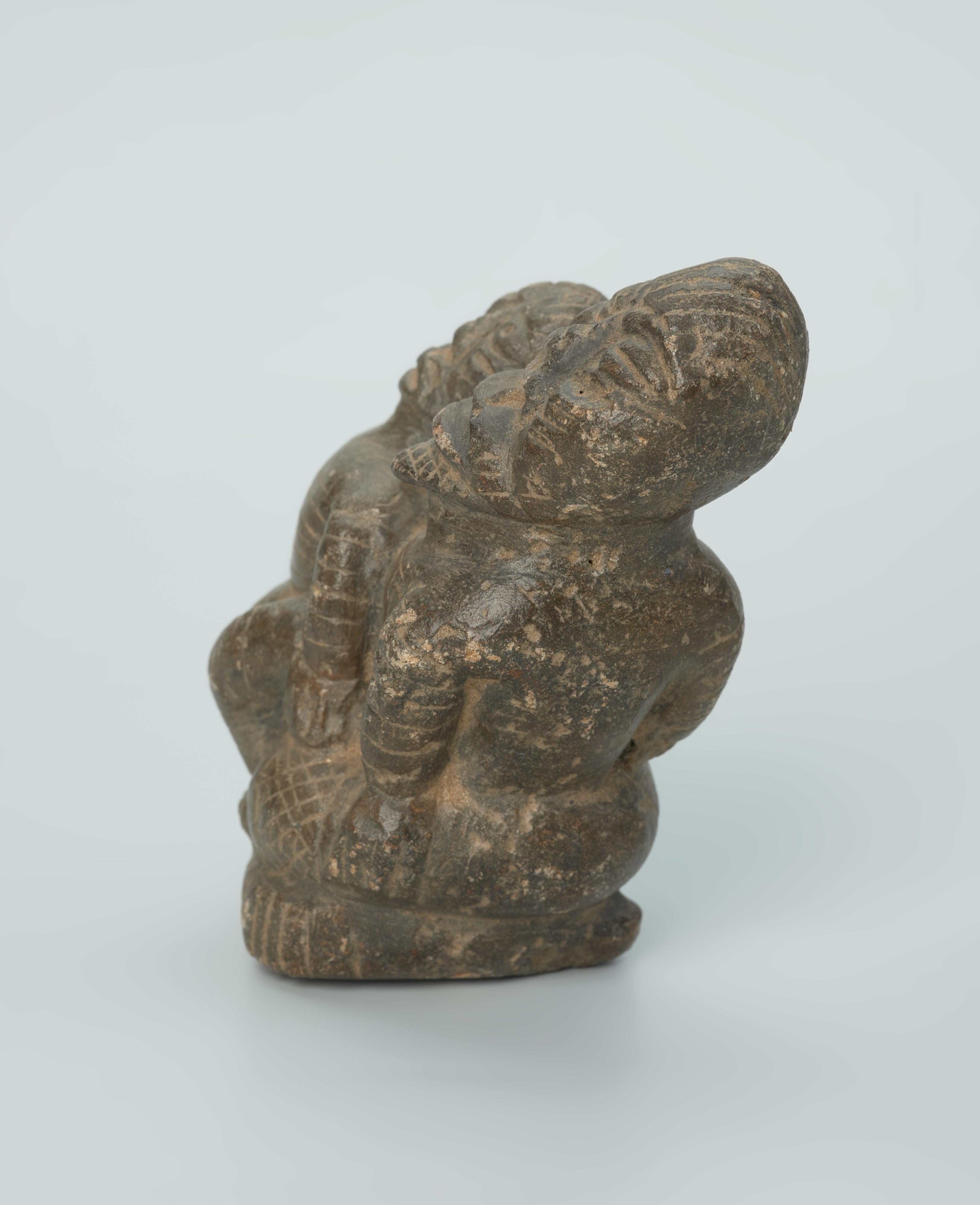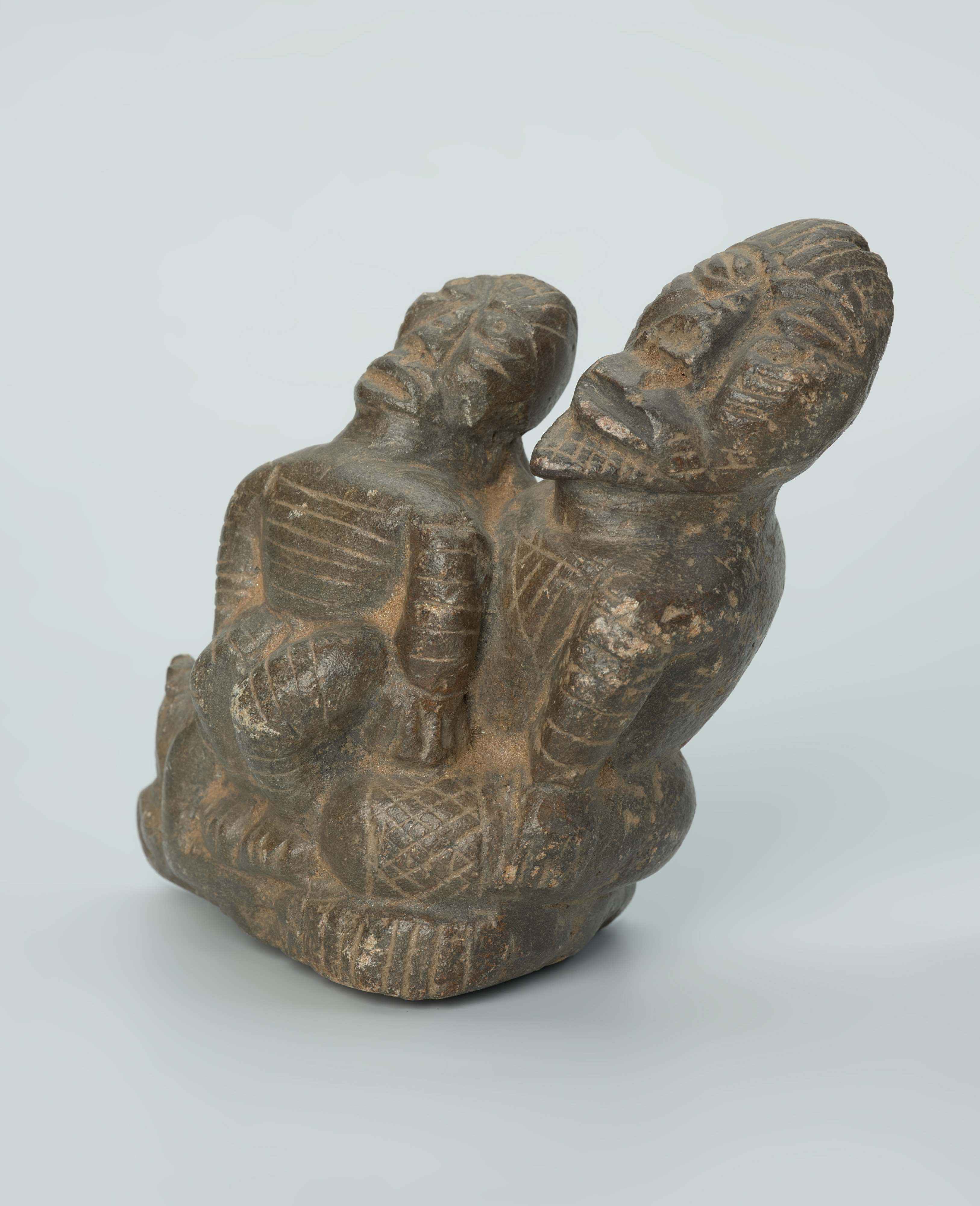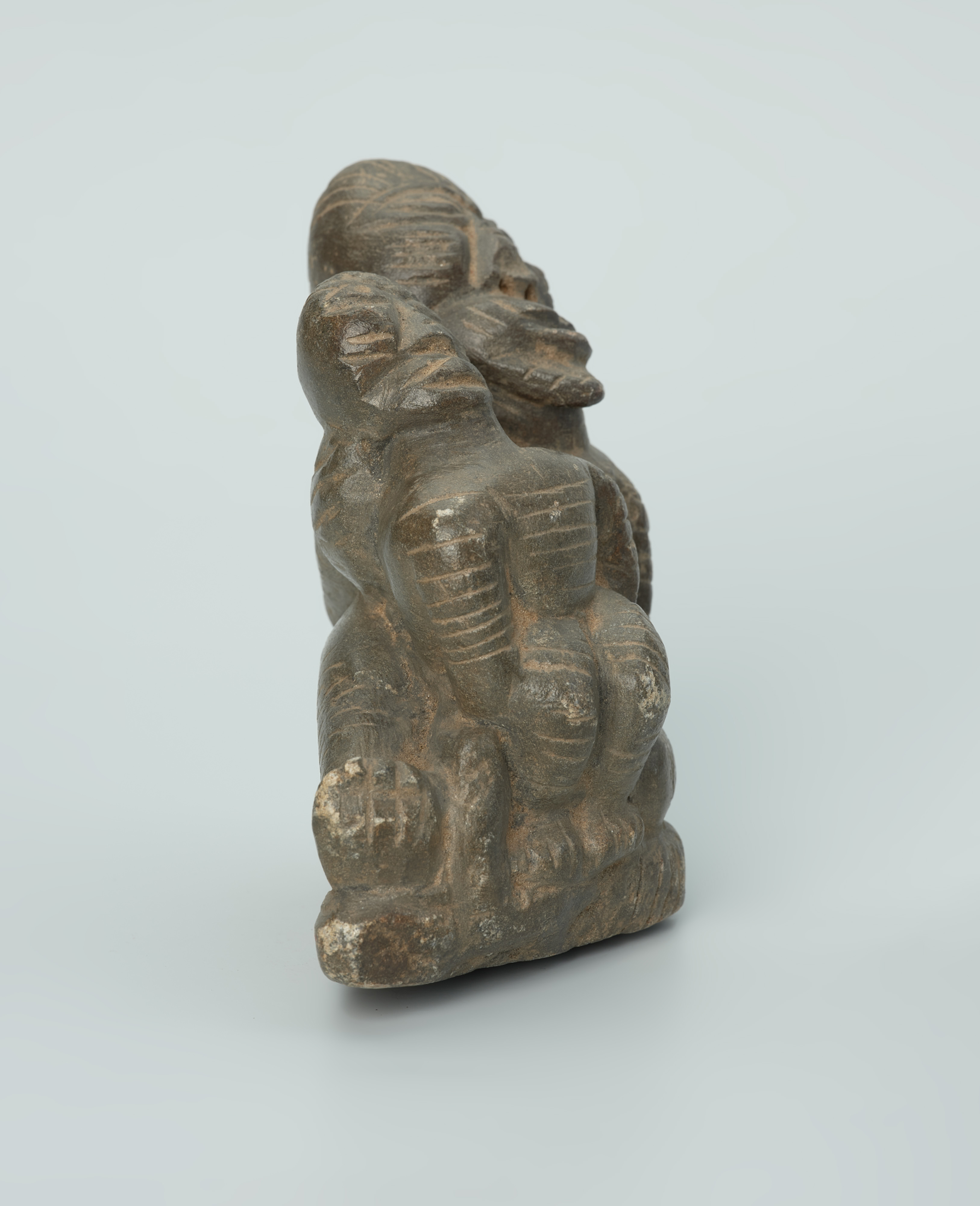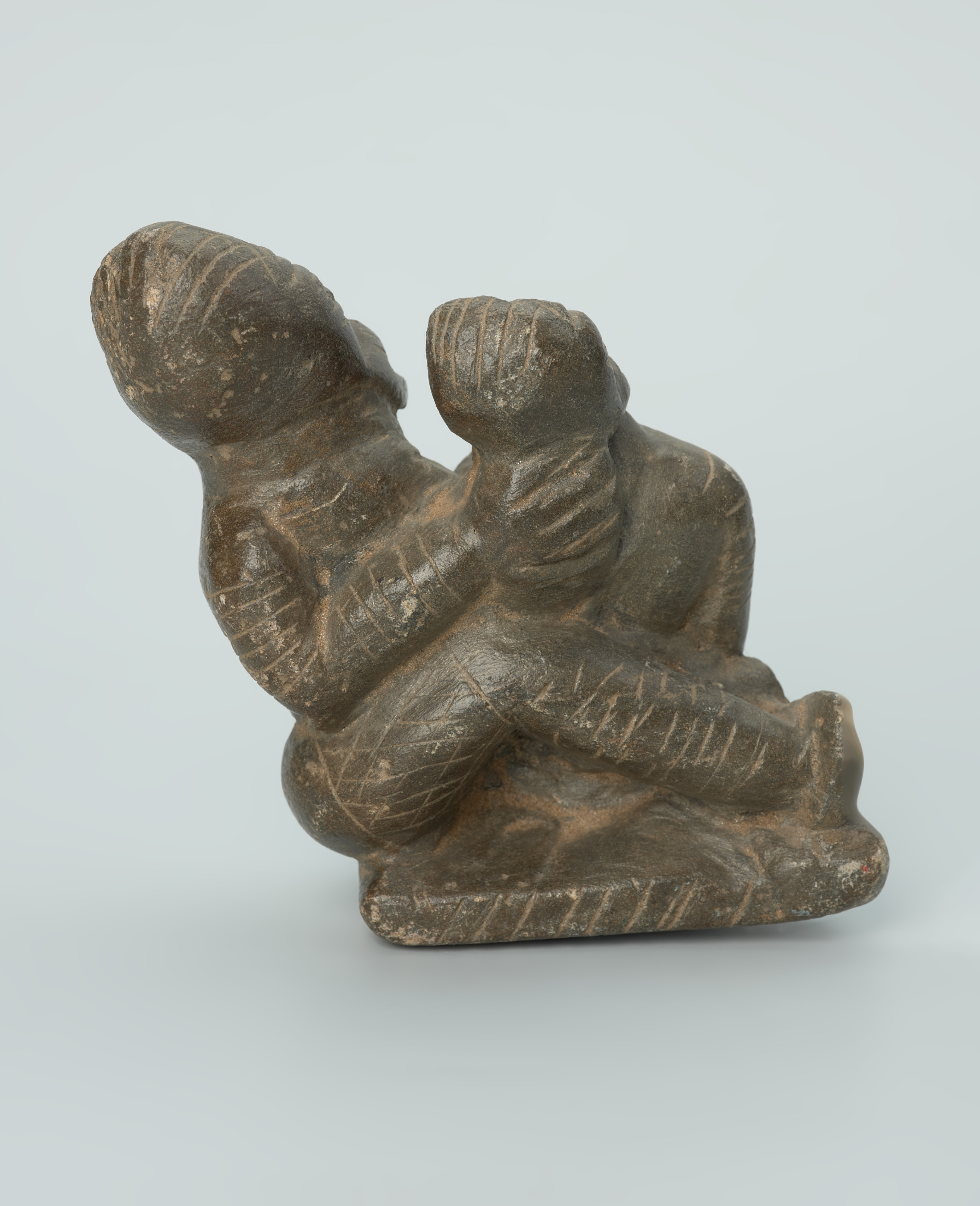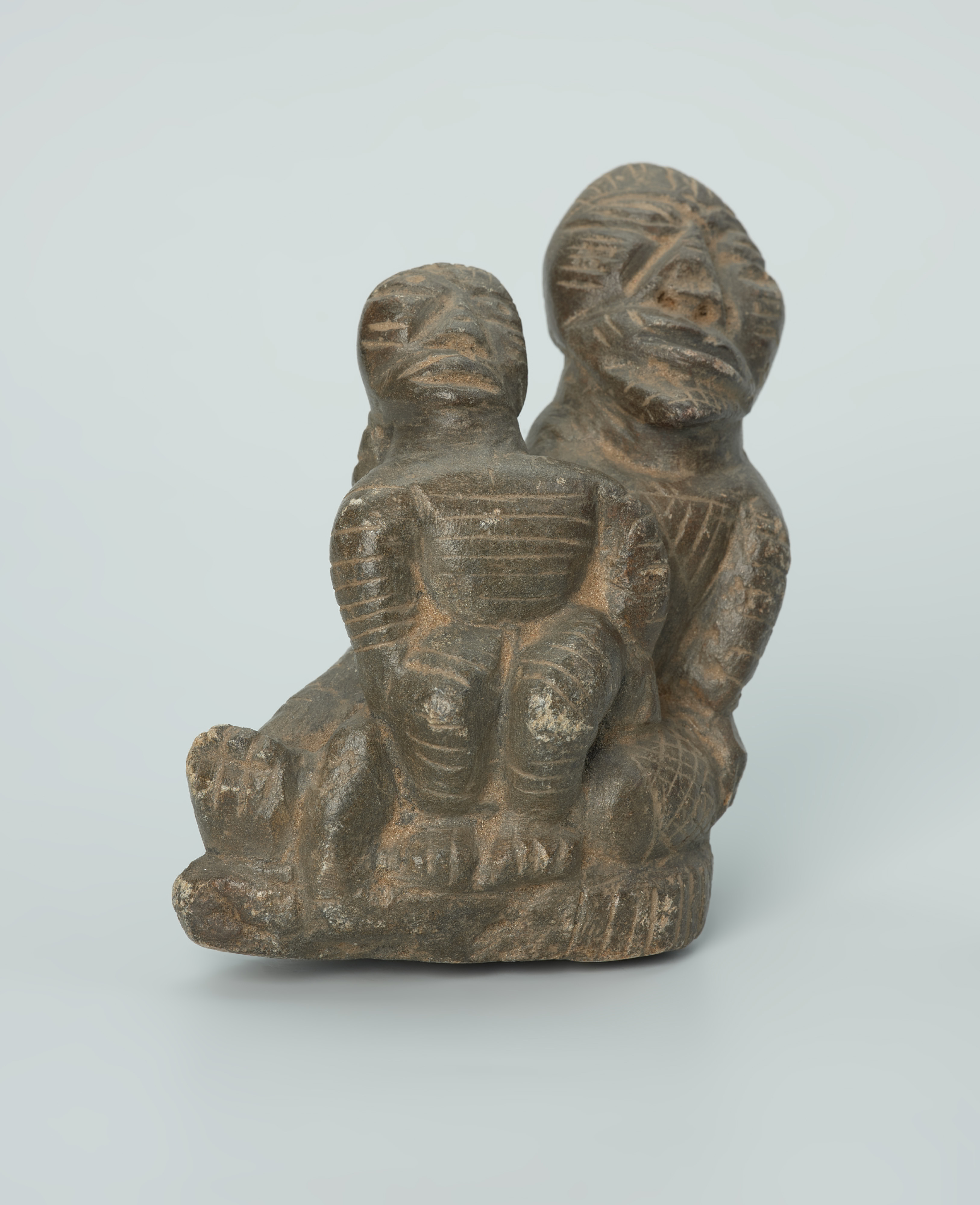 Zaprezentowana rzeźba kultu przodków przedstawia typ pierwszy – „matkę z dzieckiem”. Zarówno całe ciało kobiety, jak i dziecka zostało pokryte licznymi poziomymi, pionowymi oraz ukośnymi nacięciami. W ten sposób najprawdopodobniej zaprezentowano skaryfikacje, rodzaj zdobienia ciała poprzez nacinanie, zadrapywanie lub wypalanie skóry tak, że tworzy się jaśniejsza tkanka bliznowata (tatuaż bliznowy). Bakongo zdobią w ten sposób ciała kobiet jak i mężczyzn. Zabieg ten wykonuje się podczas obrzędu inicjacji. U kobiet jest on wyznacznikiem nie tylko piękna, ale i płodności. Bakongo wierzą, że jeśli dziewczyna przyjmie nacięcia bez krzyku to znaczy, że zniesie też ból związany z przyszłymi porodami. Natomiast gdy, krzyczy lub przerywa zabieg, nie będzie się nadawać do rodzenia dzieci. Dlatego też niektórzy mężczyźni przed ślubem sprawdzają, czy aby na pewno ich wybranka ma dokończoną skaryfikację, uważając tatuaż za gwarancję płodności przyszłej małżonki.