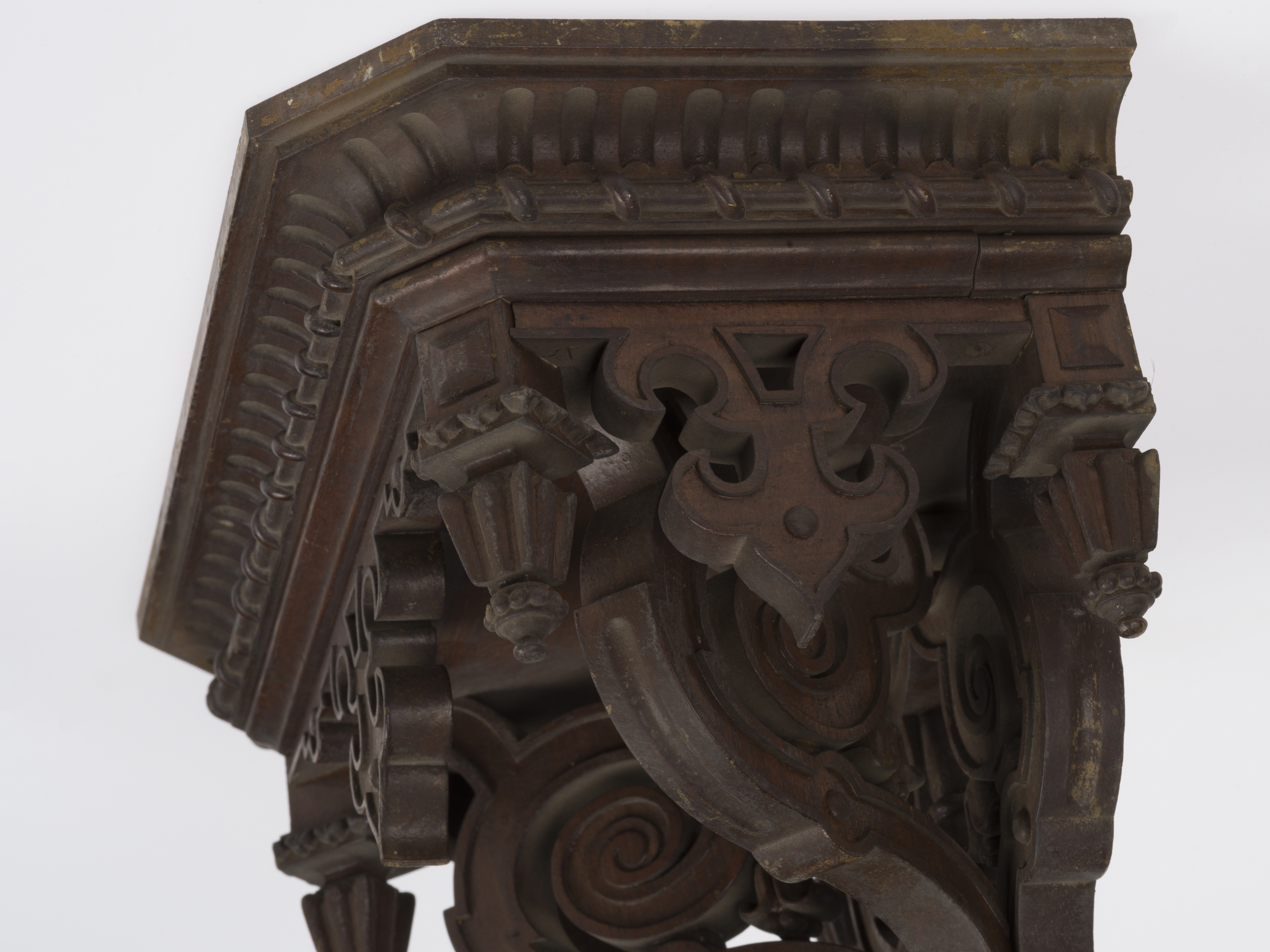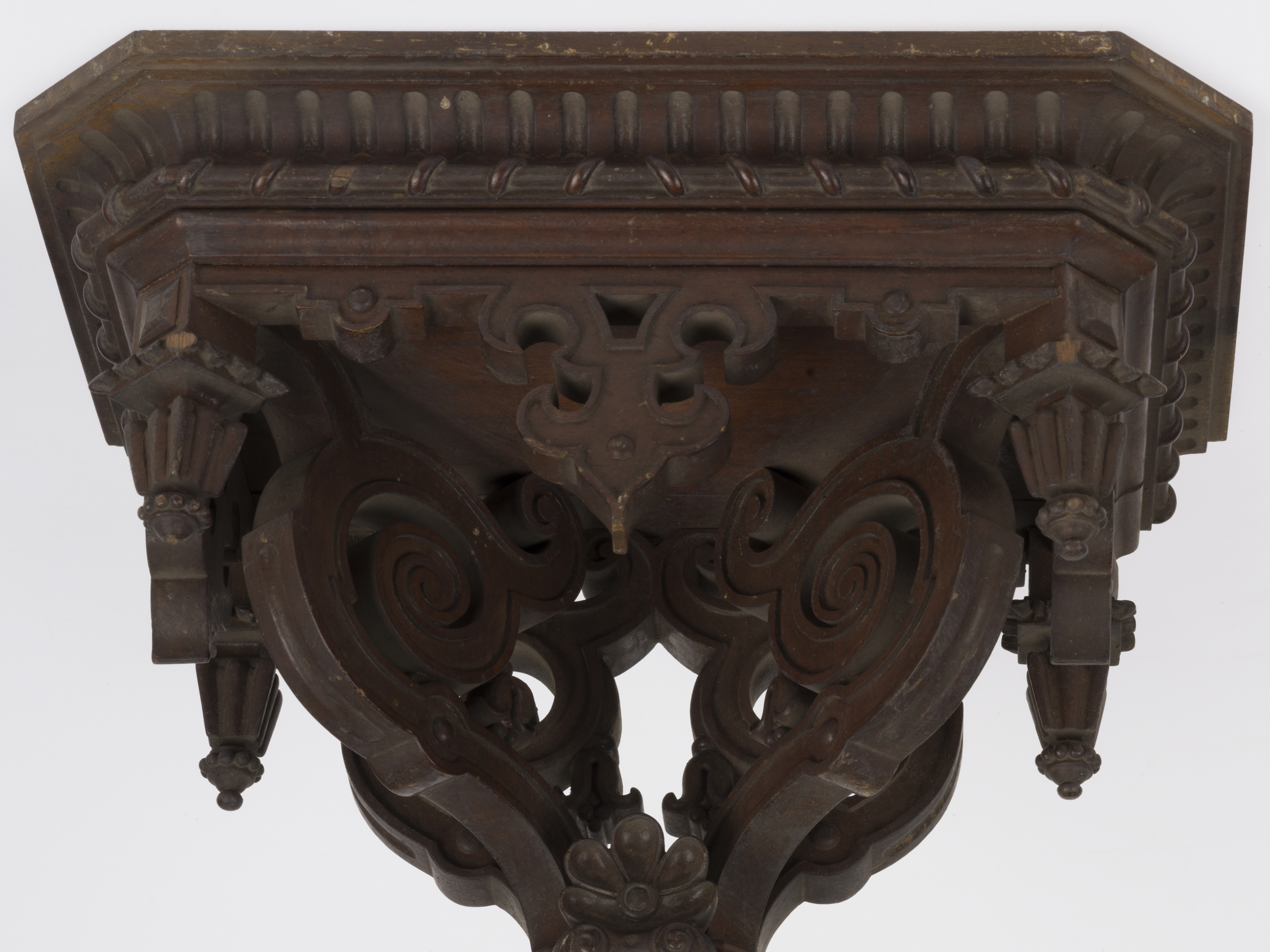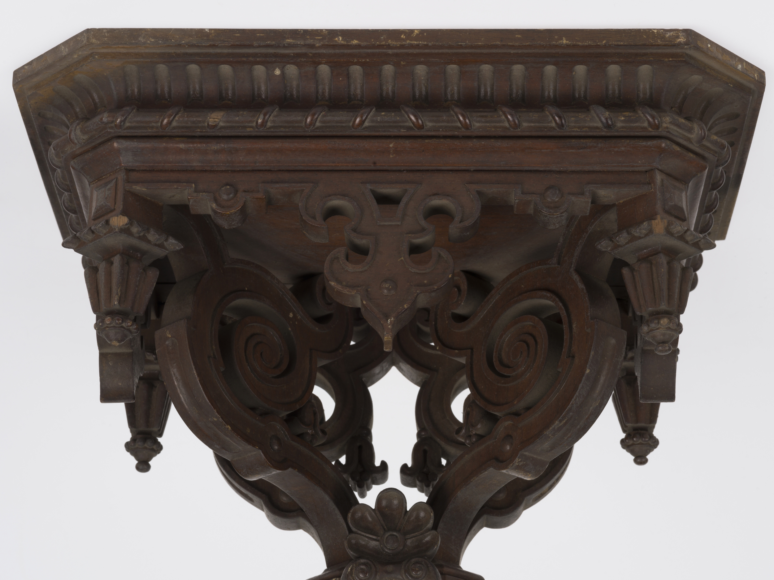 Przedmiot stanowi element zespołu, na który składają się cztery konsolki o numerach inwentarzowych Wil.3237/1-4.