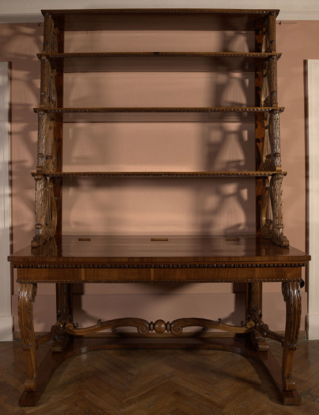 Stół konsolowy z nastawą [Stół – konsola z półkami]