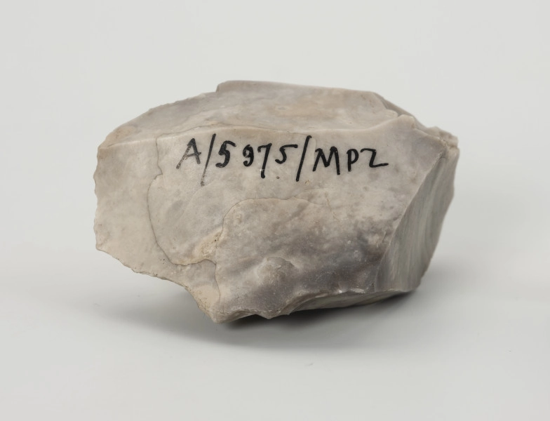 Zabytek ma formę wydłużonego klina z bryły jasnoszarego krzemienia kredowego bardzo dobrej jakości. Formalnie jest to rdzeń wielopiętowy, co oznacza, że na jego powierzchni widocznych jest kilka miejsc, z których odbijano wióry przy użyciu miękkiego tłuka. Taka strategia redukcji jest typowa dla rdzeni w ostatnim stadium eksploatacji, szczególnie na stanowiskach bez źródeł surowca dobrej jakości w pobliżu.