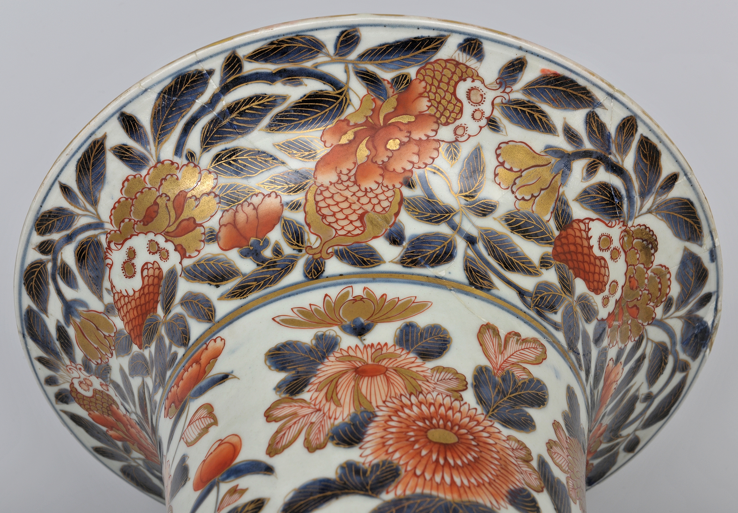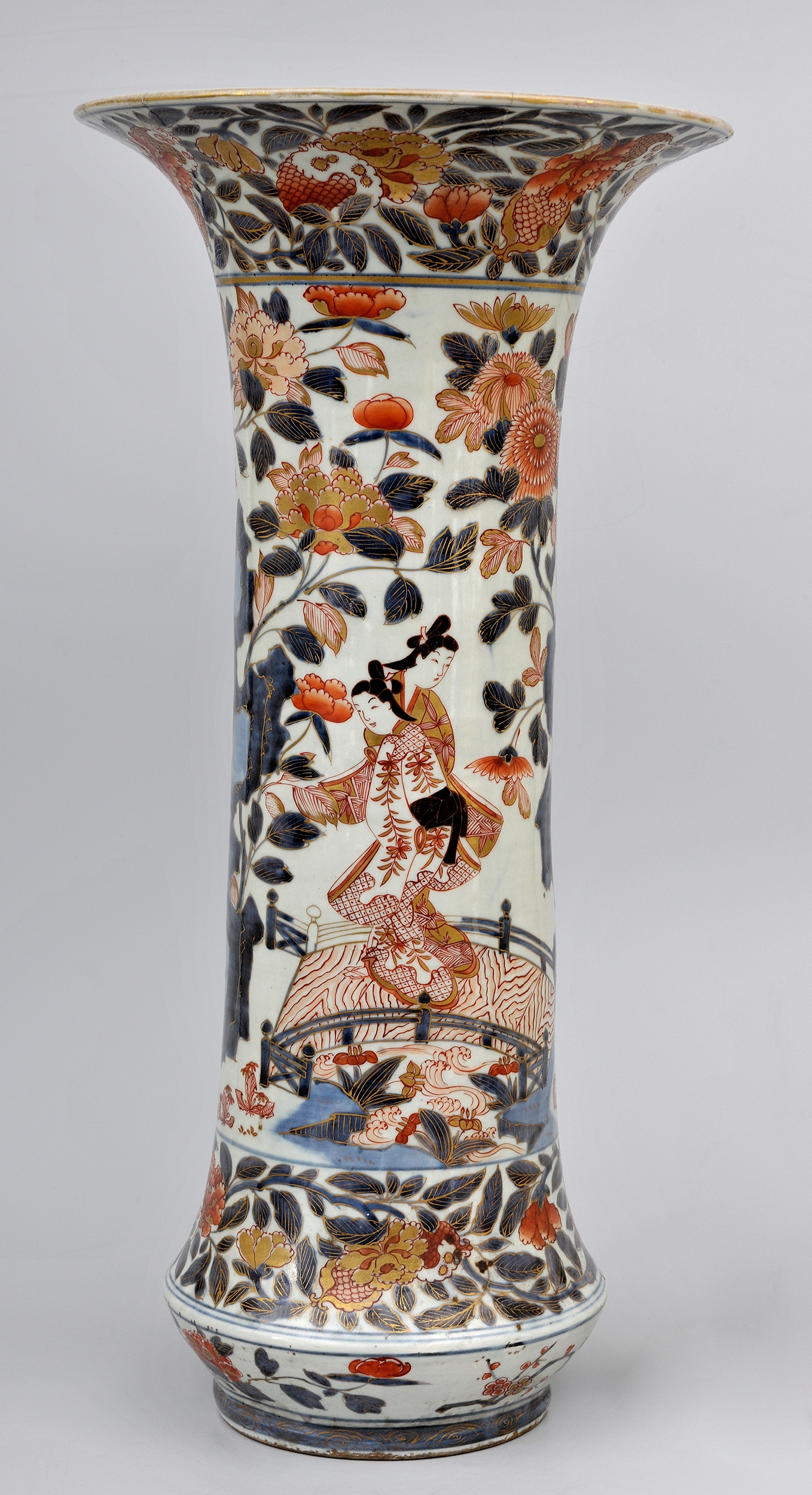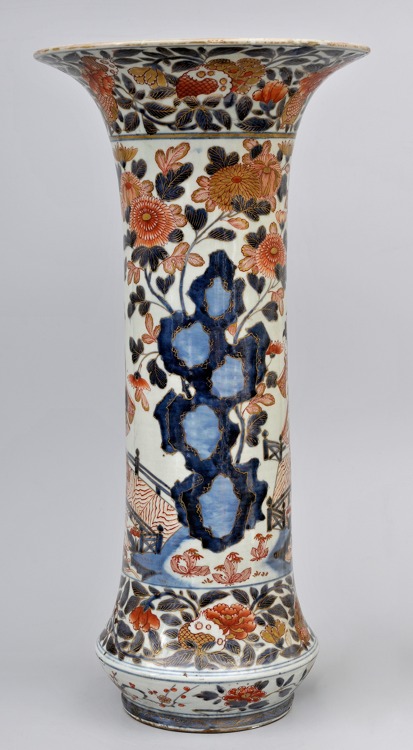 Wazon z jego dekoracją jest typowym przykładem zdobienia nazywanego „Imari”, czyli porcelany wytwarzanej w Arita na wyspie Kiusiu. Określenie Imari pochodzi od nazwy portu, z którego wypływały statki z japońskimi wyrobami eksportowymi. Kolorystyka charakterystyczna dla porcelany typu Imari obejmowała podszkliwny kobalt i naszkliwną czerwień żelazową i złocenia. Wyroby dalekowschodnie były niezwykle cenione i pożądane w Europie, dlatego też od XVII wieku produkowano je z przeznaczeniem na rynek europejski jako naczynia dekoracyjne.