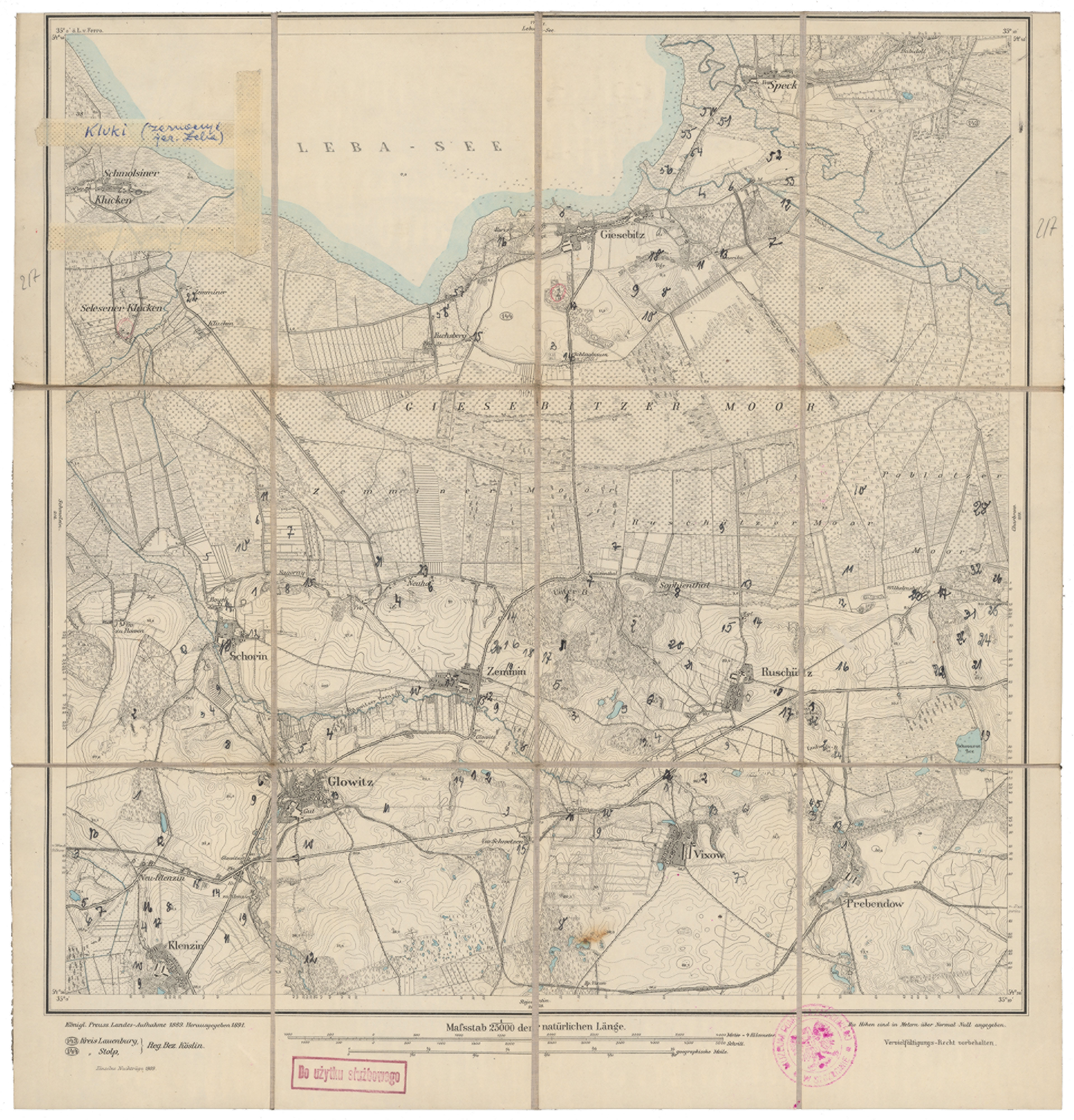 Mapa jest załącznikiem do spisu toponimów, wykonanego w ramach zainicjowanego przez pomorskiego językoznawcę dr. Roberta Holstena (1862–1954) projektu, polegającego na zebraniu z przedwojennej prowincji Pomorze w wyniku wywiadów terenowych i kwerendy źródeł nazw obiektów fizjograficznych naturalnych i antropogenicznych oraz miejsc zamieszkanych i niezamieszkanych. Mapy topograficzne typu Meßtischblatt w skali 1:25 000 charakteryzują się bardzo wysoką szczegółowością i dokładnością odwzorowania topografii terenu.