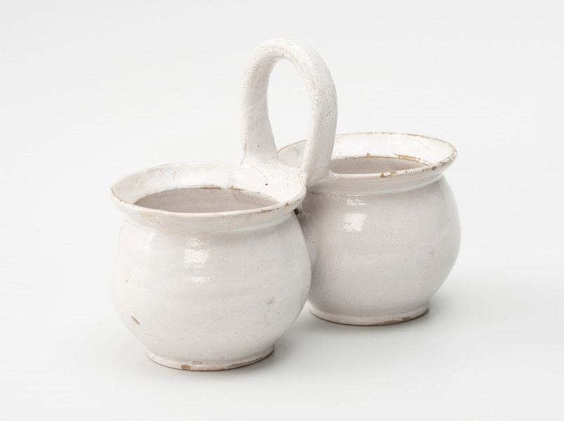 Obiekt znajdujący się w zbiorach szczecińskiego muzeum wyróżnia się nie formą, która jest typowa dla dwojaków, ale zastosowanym szkliwem, powlekającym całą jego powierzchnię, tak w środku jak i na zewnątrz. Zastosowana formuła mieszaniny ołowiowo-cynowej dawała białą tonację po wypaleniu. Szkliwo to, choć popularne i coraz częściej używane przez chłopstwo w drugiej połowie XIX wieku, należało nadal do szkliw drogich. Nie każdy garncarz je stosował ze względu na brak umiejętności lub wyższe koszty surowców, niejednokrotnie podnoszące ostateczną cenę naczynia. Szkliwione tym sposobem dwojaki były więc stosunkowo drogie, co sugeruje, że używane były w bogatym gospodarstwie.