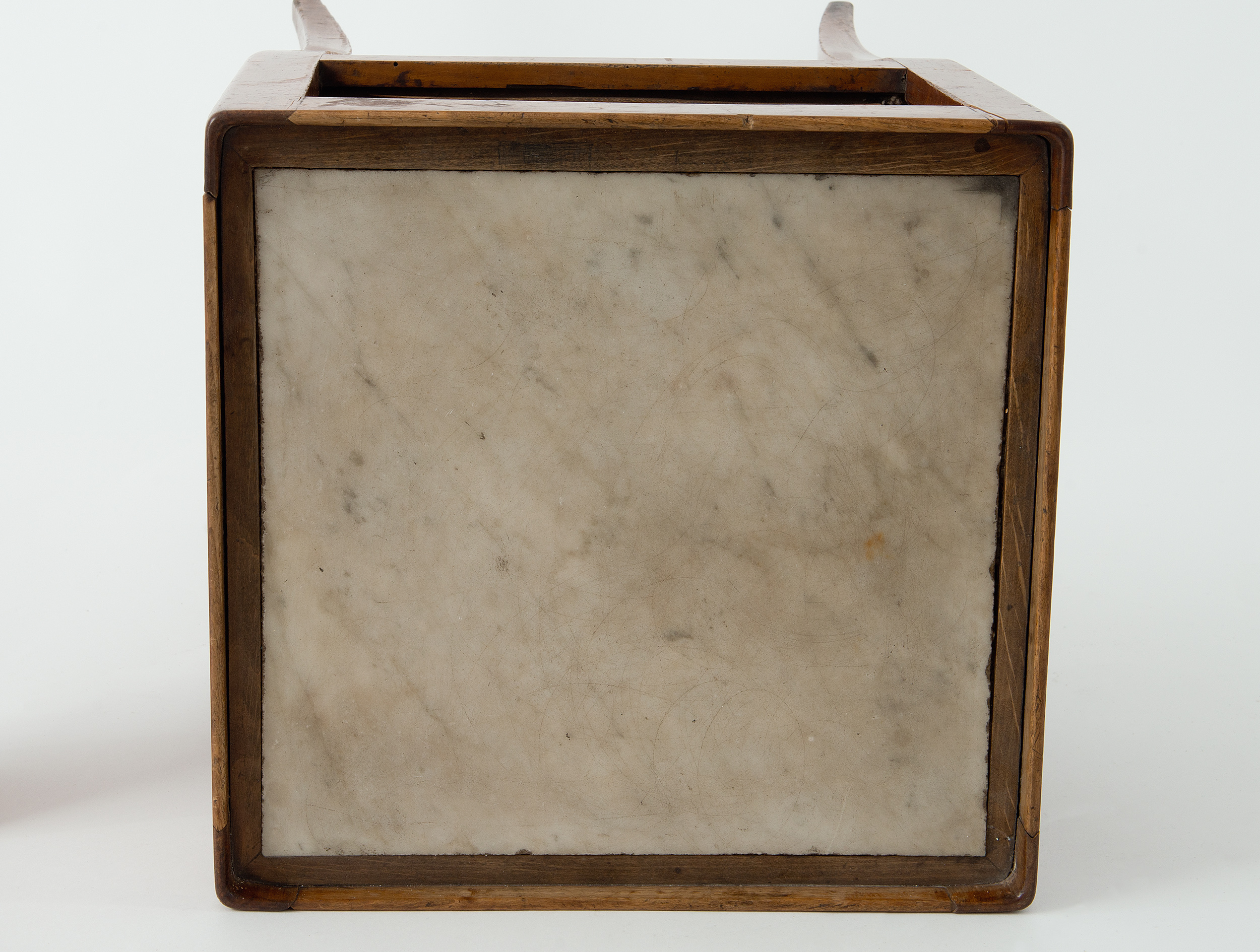 Stolik jest niemal pozbawiony zdobień, jedyną jego dekorację stanowi gładka powierzchnia polerowanego drewna i lekkie wygięcia nóżek. Głębię koloru podkreślała politura, dodając mu dyskretnego połysku. Jasny kolor marmurowego blatu był trafnym uzupełnieniem kompozycji barwnej. W 1932 r. wchodził w skład wyposażenia Pokoju Zielonego przy łazience ks. Izabeli Lubomirskiej w pałacyku gucińskim należącego do Potockich. Kolejny właściciel August Potocki przeniósł go do Pałacu Wilanowskiego przed 1867 r. .