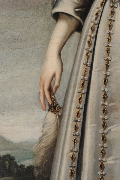 Bożena Fabiani [1973, s. 164–165], autorka opracowania ikonografii Ludwiki Marii, miała wątpliwości, czy jest to jej wizerunek jako księżniczki, czy już królowej, ponieważ dama wygląda na młodszą. Insygnia mogły zostać domalowane później. Ponadto bryła zamku nie przypomina ani Gdańska, ani Warszawy, ani Krakowa. Może jest to Nevers, do którego Ludwika Maria dokonała wjazdu 29 maja 1639 (jesień 1638?), obejmując we władanie księstwo po śmierci ojca. Nie udało się jednak znaleźć przekonywujących materiałów ikonograficznych do siedziby Gonzagów. Jednocześnie trzeba pamiętać, że Dankers po 1635 r. był już zatrudniony na polskim dworze i raczej nie wyjeżdżał do Francji. Zachowane wizerunki graficzne Ludwiki Marii ukazują ją w okresie tuż przed poślubieniem Władysława IV lub niedługo po ceremonii; zapewne większość odmładza królową. W tym stanie badań wiele pytań pozostaje bez odpowiedzi, chociaż przypisanie autorstwa Dankersowi przez badaczy pracujących dla Instytutu RKD wydaje się prawdopodobne.