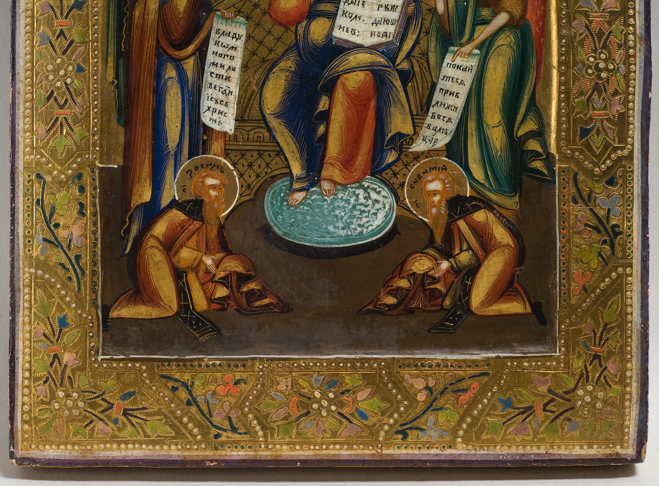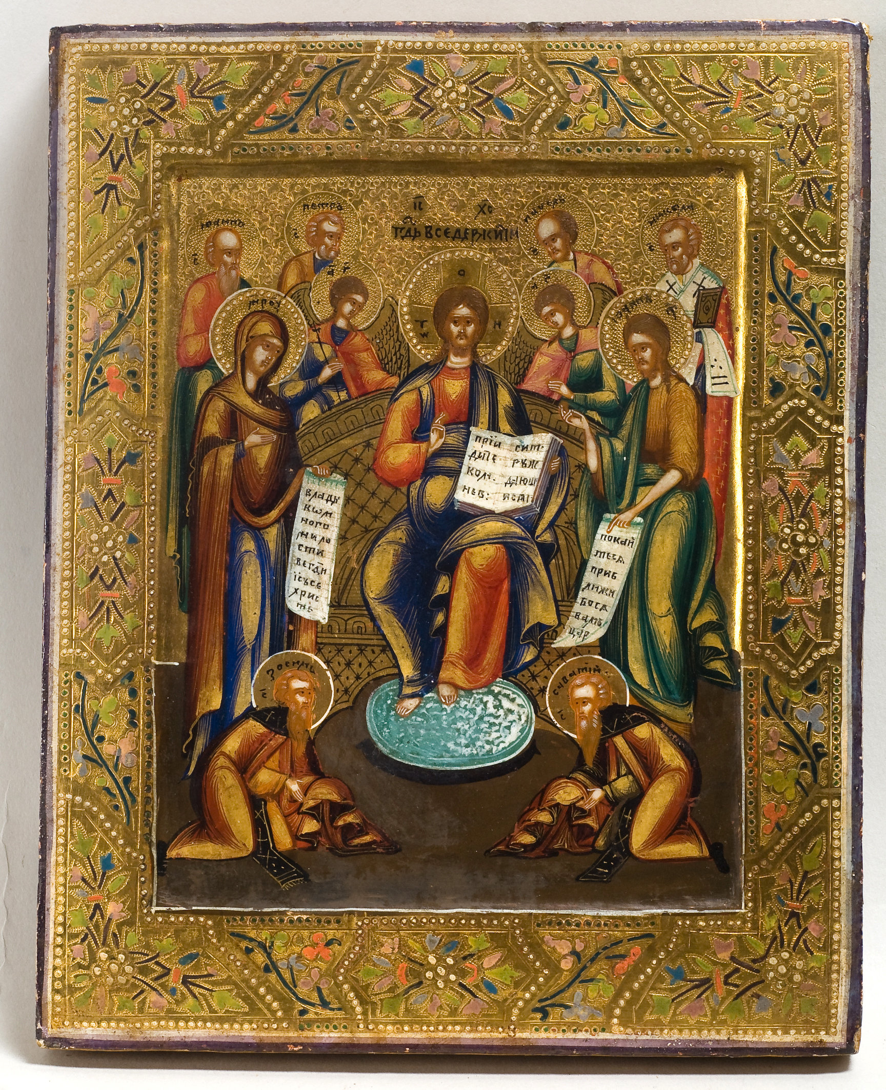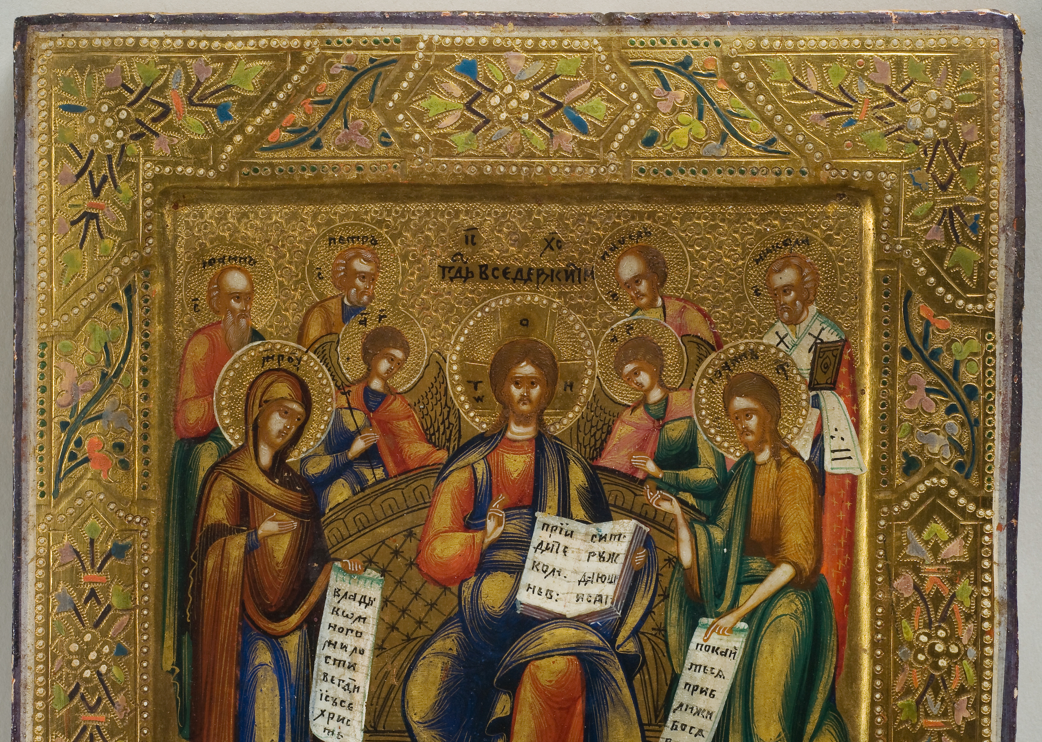 Termin Deesis, oznaczający z języka greckiego błaganie, prośbę, ukształtował się w oparciu o teksty liturgiczne, w których Kościół ucieka się do orędownictwa świętych w błagalnej modlitwie przed tronującym Zbawicielem. Obrazowa forma Deesis występuje we wschodnim chrześcijaństwie od VI-VII w. Wraz z ukształtowaniem na Rusi wielostrefowej przegrody ołtarzowej w XVI-XVII w. Deesis stało się jednym z rzędów ikonostasu. W podstawowym wariancie przedstawienia ukazane są trzy osoby: tronujący Chrystus – Pantokrator Wszechwładca i zwracający się do niego najwięksi orędownicy człowieka: Boża Rodzicielka i św. Jan Chrzciciel, którzy reprezentują cały rodzaj ludzki. Uobecniają oni tajemnicę Wcielenia Zbawiciela (dokonaną z udziałem Bogurodzicy) i poświadczoną przez Jana (wylanie Ducha Świętego na Syna Bożego podczas chrztu w Jordanie). Na równi z podstawowym istnieją bardziej rozbudowane warianty przedstawienia, uzupełnione o postacie Archaniołów jako przedstawicieli niewidzialnego świata anielskiego, Apostołów oraz innych świętych, których układ jest zawsze jest hierarchiczny. Na prezentowanej rosyjskiej ikonie oprócz wymienionych widzimy Jana Ewangelistę, św. Mikołaja Cudotwórcę oraz Zozyma i Sawacjusza Sołowieckich. W tradycji rosyjskiego prawosławia takie przedstawienia Deesis nazywano potocznie „siedmicą” – w nawiązaniu do tygodnia. Każdy jego dzień służy upamiętnieniu świętego lub święta: niedziela jest wspomnieniem Zmartwychwstania, poniedziałek – poświęcony Siłom Niebiańskim, wtorek – dzień Jana Chrzciciela, środa – Bogurodzicy, czwartek – Apostołów i św. Mikołaja Cudotwórcy, piątek – Ukrzyżowania Chrystusa, sobota – wszystkich świętych.