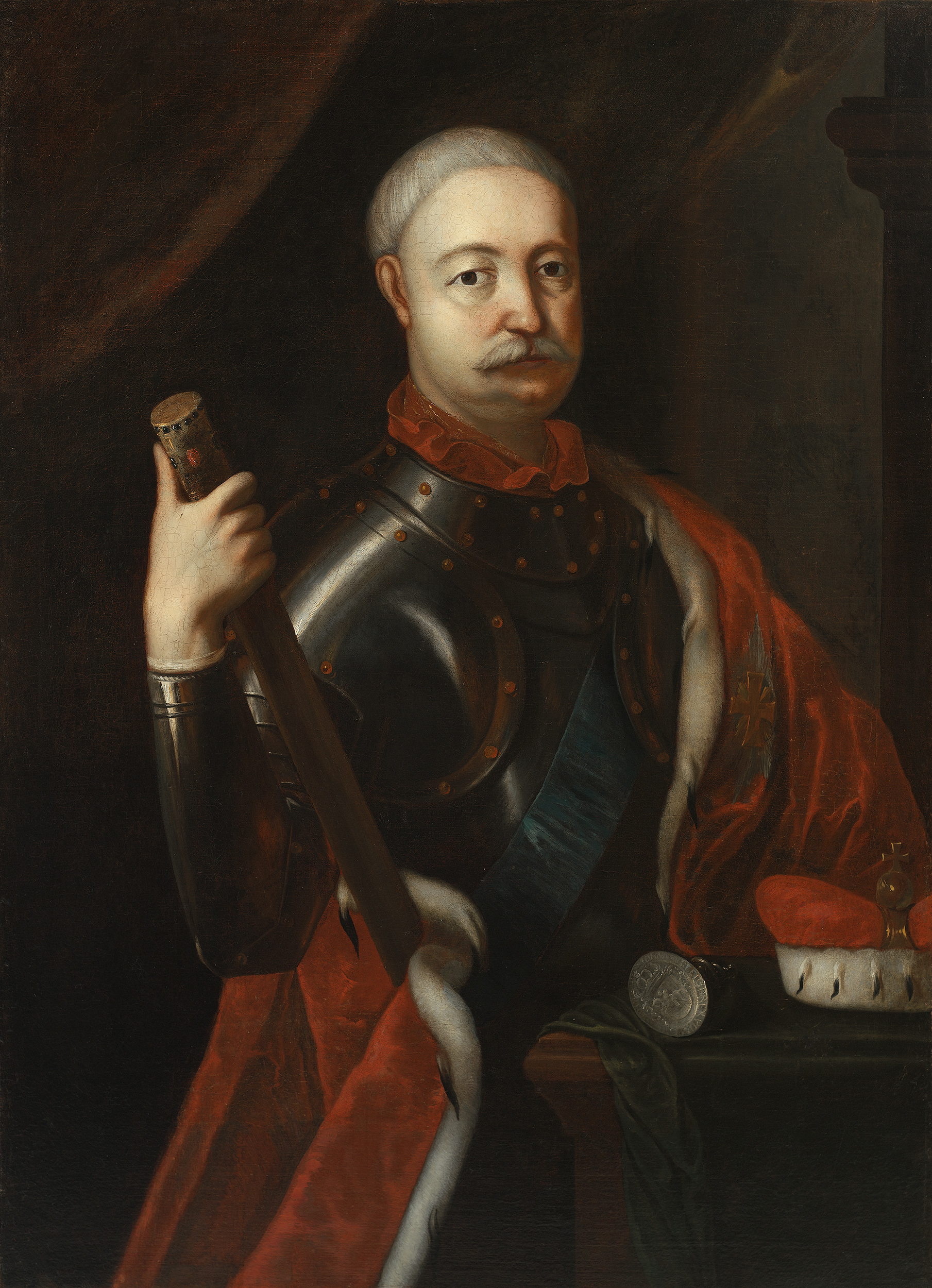 Karol Stanisław Radziwiłł herbu Trąby (1669-1719), książę, kanclerz wielki litewski, Ordynat Nieświeski i Ołycki; zachodnioeuropejska zbroja płytowa; futro z gronostajów; Michał Kazimierz Radziwiłł (1635-1680), książę; Katarzyna z Sobieskich Radziwiłłowa (1634-1694), księżna; Jan III (1629-1696), król Polski; Jerzy Józef Radziwiłł (1668-1689), książę; mitra książęca; pieczęć kanclerska; Order Orła Białego; Hirsz Leybowicz (Lejbowicz; 1700-1770 [po 1785?]); Michał Kazimierz Radziwiłł „Rybeńko” (1702-1762).