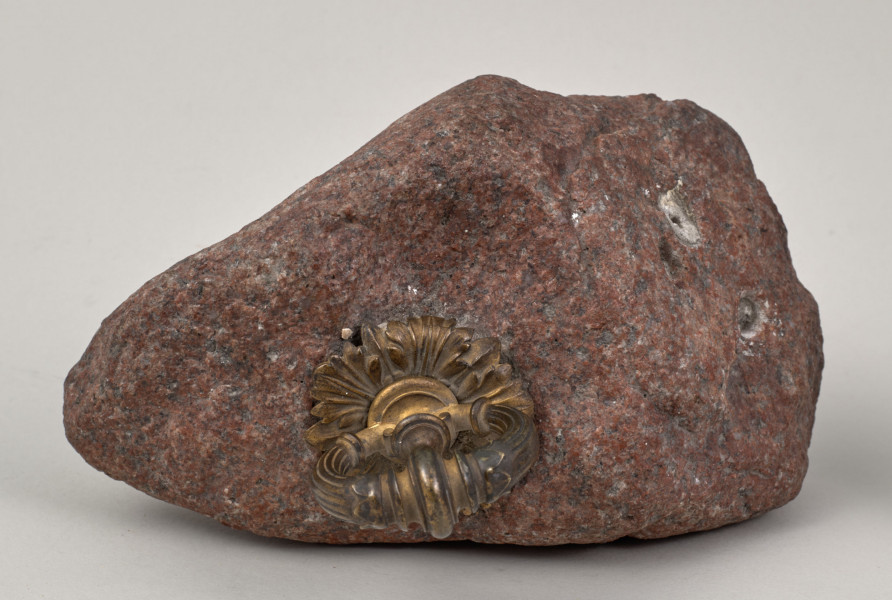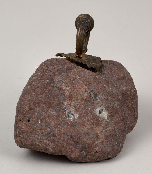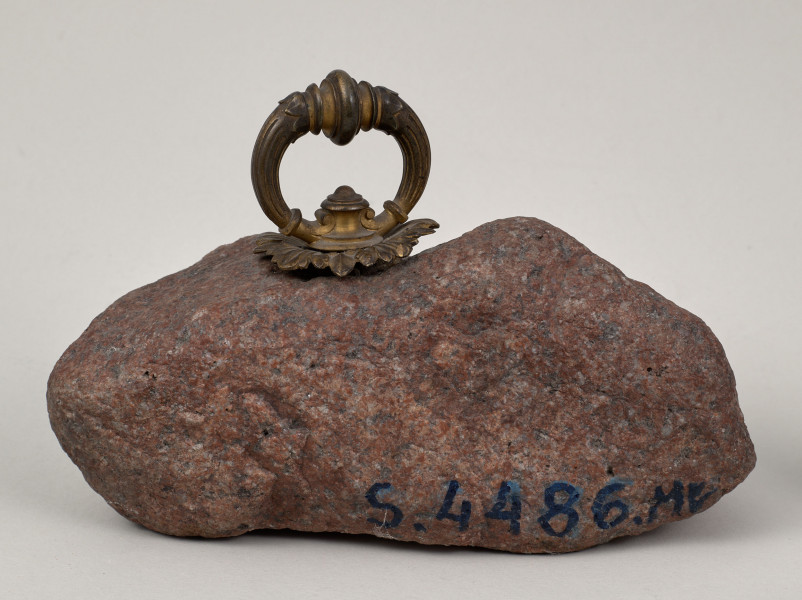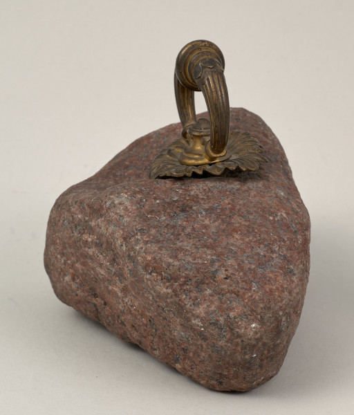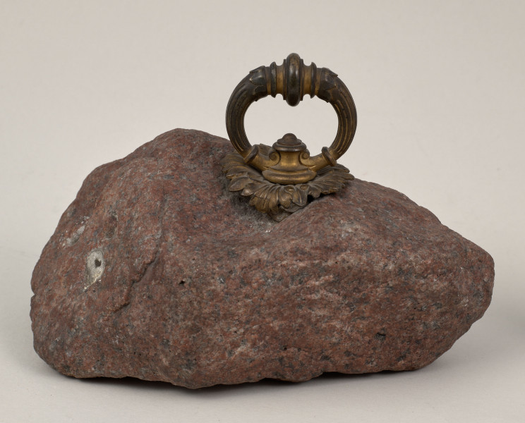 Omawiane przyciski do papieru ze zbiorów Muzeum – Zamek w Łańcucie, pochodzą z kolekcji Potockich, należą do drugiej kategorii i zostały przywiezione z miejsc obecnie poza granicami kraju. Jeden z takich przycisków o nr inw.4486MŁ z kamienia, w kształcie leżącego trójkąta ma zamontowany okrągły mosiężny uchwyt na stylizowanym kartuszu. Obecnie przycisk nie posiada mosiężnej tabliczki z napisem „Zamek birżański”, pozostały tylko ślady po mocowaniu tabliczki do kamienia.