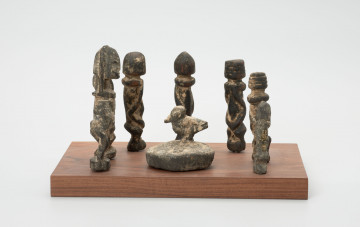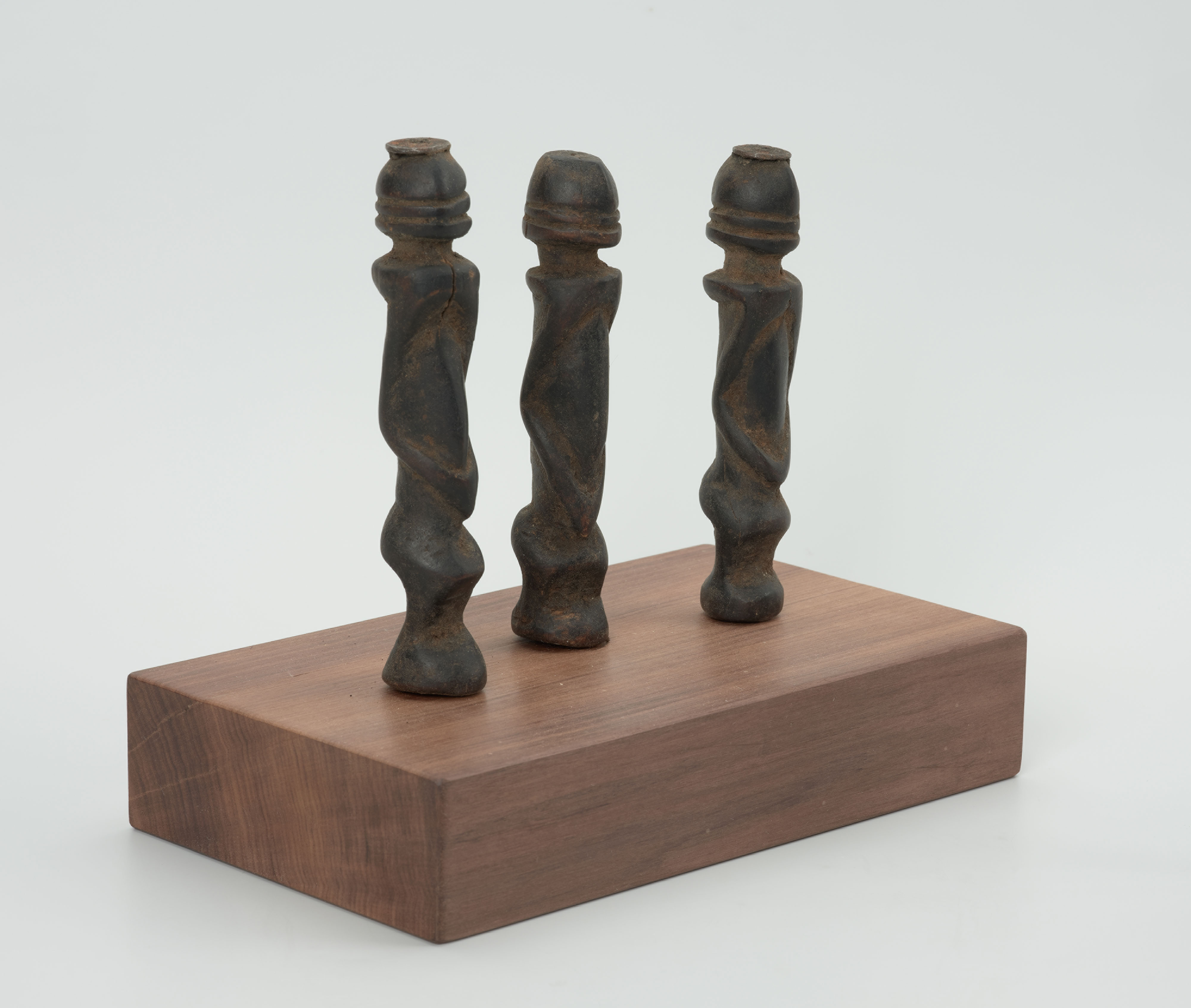 Prezentowany zestaw wróżebny składa się z trzech figurek antropomorficznych, najprawdopodobniej przedstawiających przodków, które nie mają wyraźnie zaznaczonych twarzy, co symbolizuje umiejętność przepowiadania przyszłości. Dogonowie znają wiele sposobów wróżenia, m.in. z muszelek kauri, ramienia, dłoni, pozycji, w jakiej umiera zwierzę ofiarne, ze snów i śladów lisa. Podstawowym celem dédegué kunu – sztuki wróżbiarskiej jest uzyskanie odpowiedzi na nurtujące Dogonów pytania dotyczące ich przyszłości oraz zbadanie przyczyny nieszczęścia, które miało miejsce w ich życiu. Omawiany zestaw figurek był niezbędny przy stawianiu pytań kierowanych do przodków. Pytano, czy wybudować nowy dom, kiedy i za kogo wydać córkę za mąż, kiedy rozpocząć siew oraz czy można spodziewać się obfitych plonów. W momencie, gdy dogońska kultura stała się atrakcją turystyczną, a turystyka głównym źródłem utrzymania wielu dogońskich rodzin, zmieniły się pytania kierowane do przodków. Obecnie przewodnicy chcą wiedzieć, kiedy przybędą turyści, i czy w związku z tym dużo zarobią. Ruch turystyczny w kraju Dogonów trwa przynajmniej od końca lat sześćdziesiątych XX wieku. Dekady turystycznego boomu doprowadziły do dużych zmian kulturowych i społecznych w społeczności Dogonów. Większość mężczyzn porzuciło pracę na roli i zaczęło żyć z bardziej opłacalnej turystyki. Trudnią się sprzedażą wyrobów artystycznych, takich jak maski, rzeźby, stroje, pracują jako tłumacze, przewodnicy, prowadzą hotele i restauracje. Kobiety natomiast, z uwagi na brak znajomości języka francuskiego, rzadziej angażują się w tego typu prace. Zdarza się jednak, że pracują jako tragarki lub sprzedawczynie. Współcześnie Dogonowie znaleźli się w niezwykle trudnej i złożonej sytuacji geopolitycznej. Ich kraj jest na granicy konfliktu pomiędzy rządem Republiki Mali a rebeliantami (Tuaregami, a później fundamentalistami islamskimi) z północy kraju, co doprowadziło do całkowitego zatrzymania ruchu turystycznego w tym regionie.
