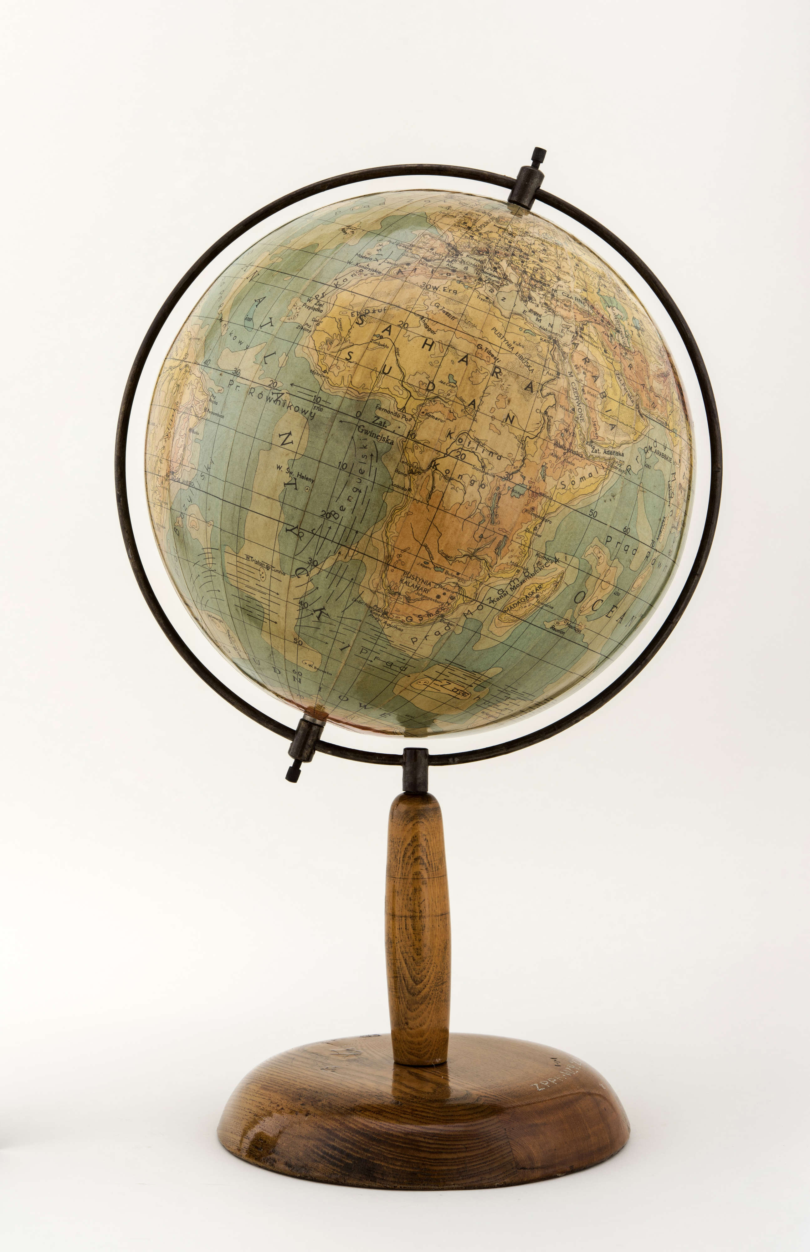 Globus fizyczny Ziemi znajdujący się w zbiorach Dworku Wincentego Pola jest pierwszym obiektem wydanym po II wojnie światowej. Autorami mapy są Gustaw Wuttke (1887–1975) – geograf, wszechstronny dydaktyk, instruktor ministerialny, konstruktor (zaprojektował i samodzielnie wykonał 96 pomocy dydaktycznych, z czego 24 weszły do produkcji i użytku szkolnego), autor podręczników szkolnych oraz geograf i kartograf Andrzej Lorentski (1914–1988). Wobec niszczenia pomocy dydaktycznych podczas wojny, gdy cała produkcja lwowskiego wydawnictwa „Książnica-Atlas” – atlasy, mapy i globusy – została unicestwiona po wkroczeniu Rosjan do Lwowa 17 września 1939 roku, koniecznością stało się wyposażenie polskich szkół w podstawowe pomoce naukowe.