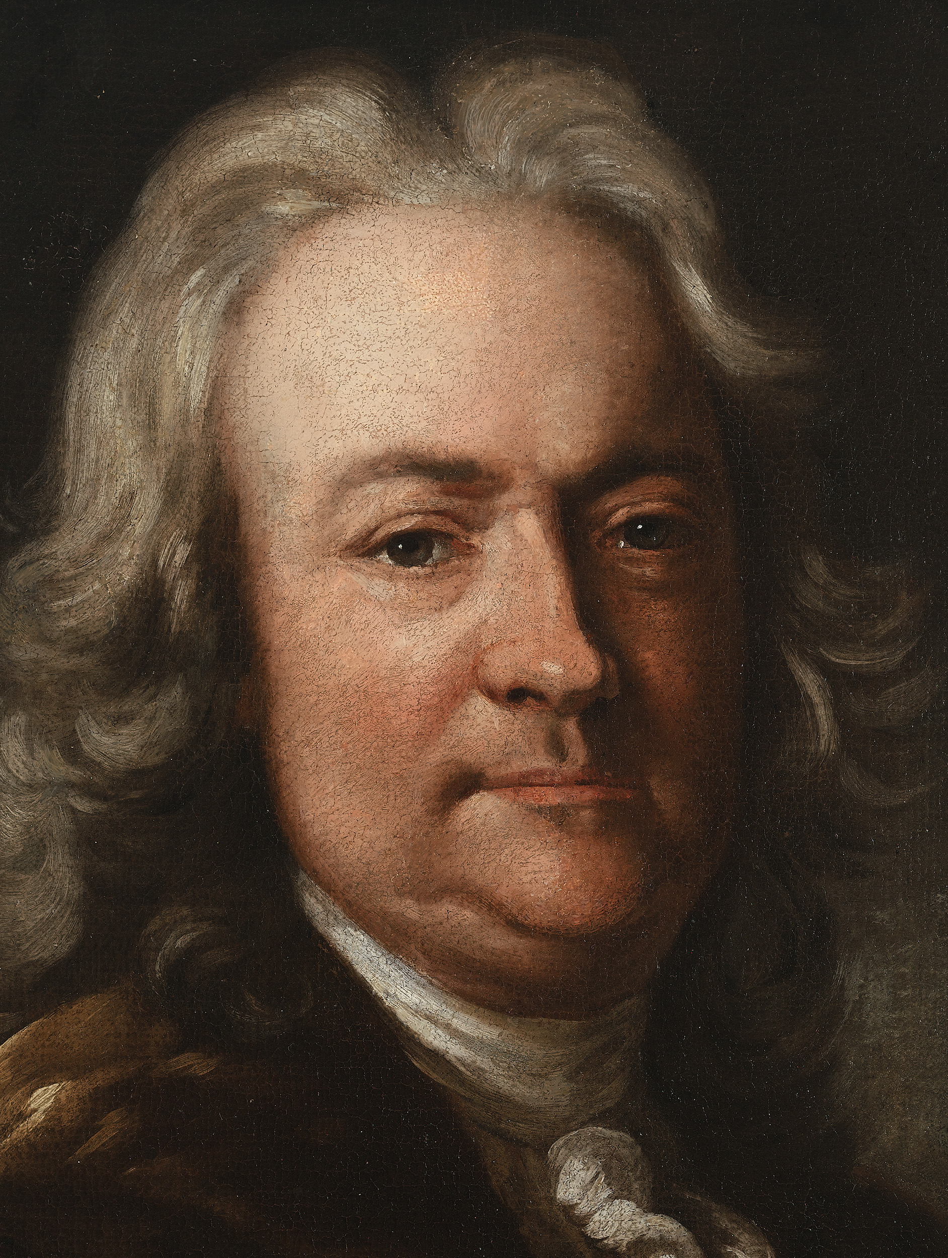 Twarz starszego mężczyzny uchwycona została prawie en face. Ubiór pozwala określić datowanie obrazu na XVIII wiek. Ten portret nie jest usztywniony ani w pozie ani w rygorze rysunkowym – malowany jest swobodnie szeroką plamą. Kształtujący przestrzeń światłocień nie opiera się na zbyt dużym kontraście walorowym efekt zbliżony jest do światła rozproszonego, które pozwala wydobyć wszelkie szczegóły ubioru czy mimiki twarzy dostojnika. Bohater ma długie czesane na przedziałek siwe włosy a ubrany jest w oliwkową szubę z futrzanym kołnierzem, u szyi biały halsztuk. Jednak najbardziej charakterystyczny dla tego dzieła malarskiego jest uśmiech: zarysowany uniesionym kącikiem ust i widoczny w błyszczących oczach.