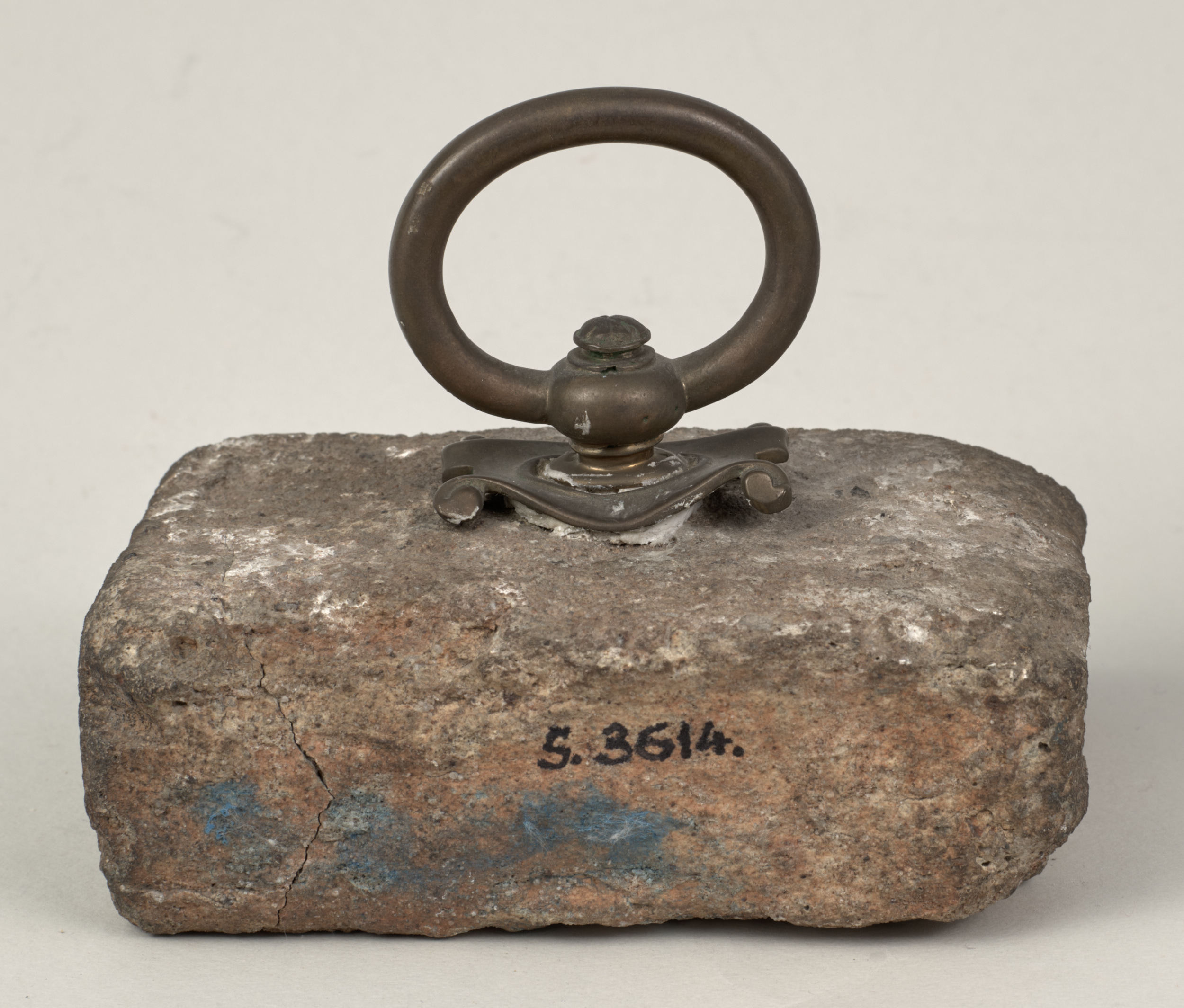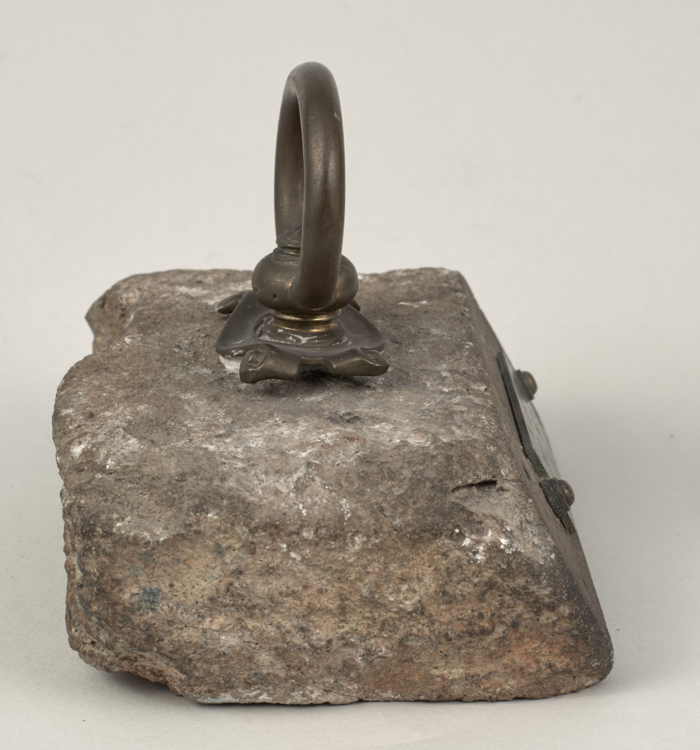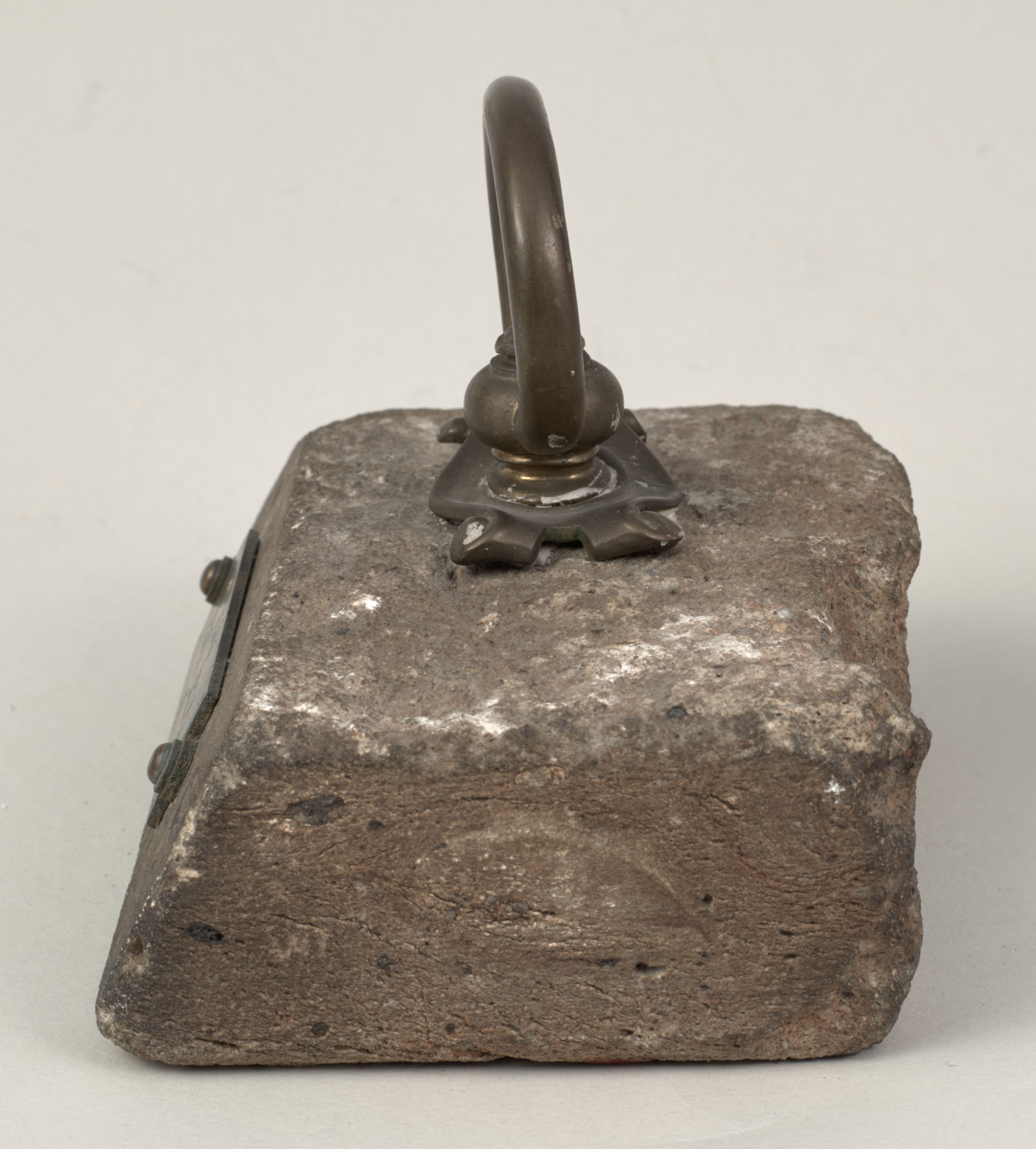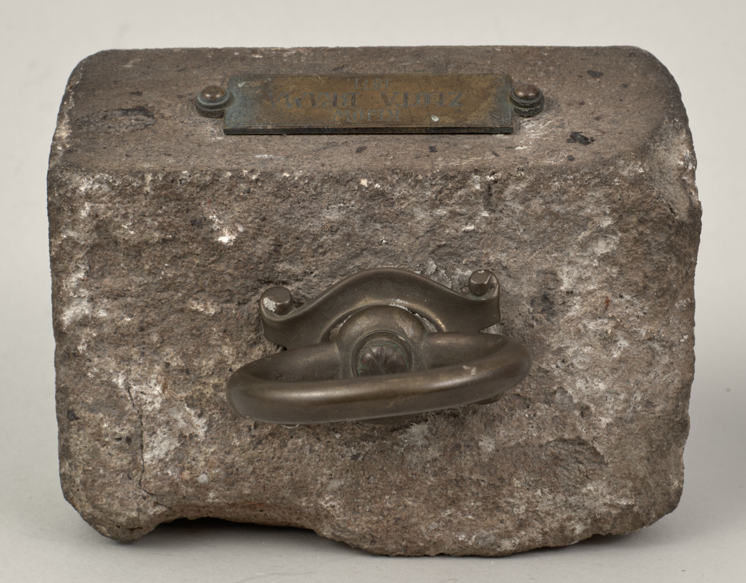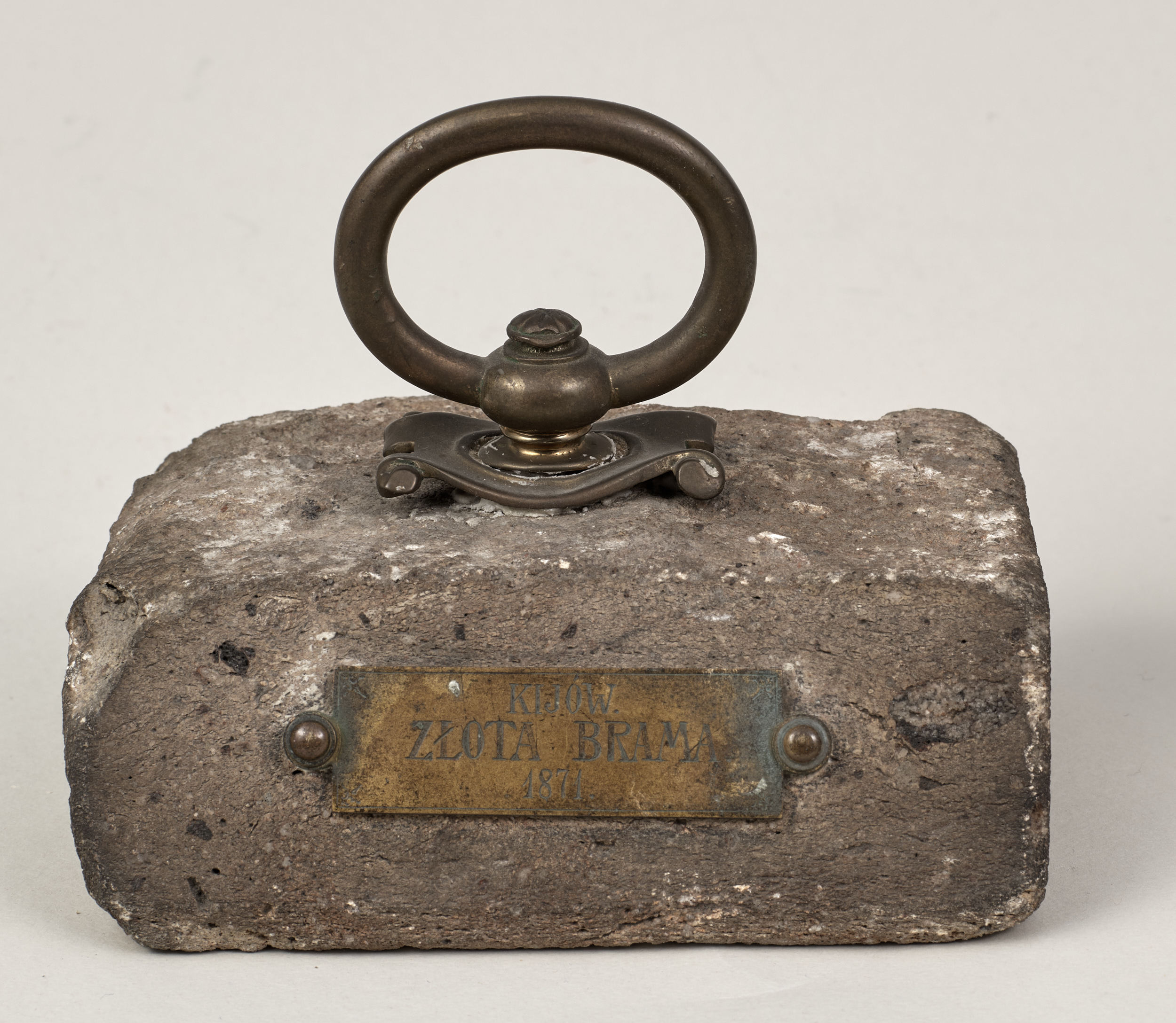 Omawiane przyciski do papieru ze zbiorów Muzeum – Zamek w Łańcucie pochodzą z kolekcji Potockich, należą do tej drugiej kategorii i pochodzą z miejsc obecnie poza granicami kraju (Kresy) związanych z dziejami Polski. Jednym z nich jest przycisk o nr inw. S.3614MŁ w kształcie leżącego kamiennego prostopadłościanu o lekko zaokrąglonych krawędziach, na górze ma zamontowany okrągły mosiężny uchwyt na stylizowanym kartuszu, z tego samego materiału wykonana jest podłużna tabliczka mocowana do kamienia dwoma ćwiekami z napisem „Kijów – Złota Brama 1871”.
