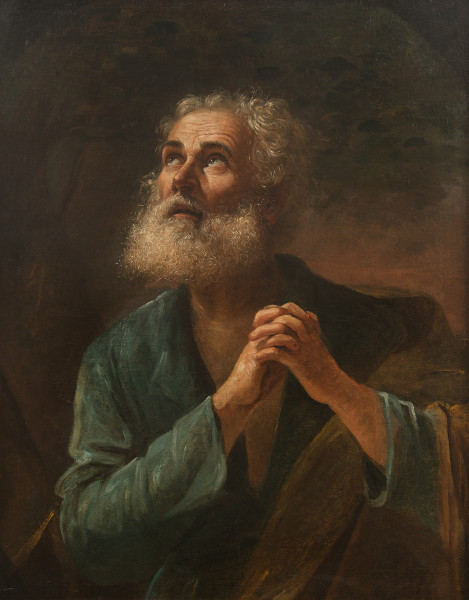 Stary mężczyzna z rękoma złożonymi do modlitwy unosi głowę wysoko w górę skąd pada na niego intensywne światło. Towarzysząca mu nadzieja wysłuchania rysuje się w jego wyrazie twarzy. Nurt realistyczny, który reprezentuje to dzieło, gwarantuje obiektywizm malarza w oddaniu rzeczywistości. Szczególnie widać to w wykończeniu kędzierzawych włosów i zarostu. Efekt ich puszystości oddał rozbijając bryłę na poszczególne elementy, licząc niejako każdy włos z osobna i malując go przy użyciu małego pędzelka. Ta sama skrupulatność towarzyszy malarzowi przy oddaniu pooranej zmarszczkami twarzy czy spracowanych rąk apostoła.