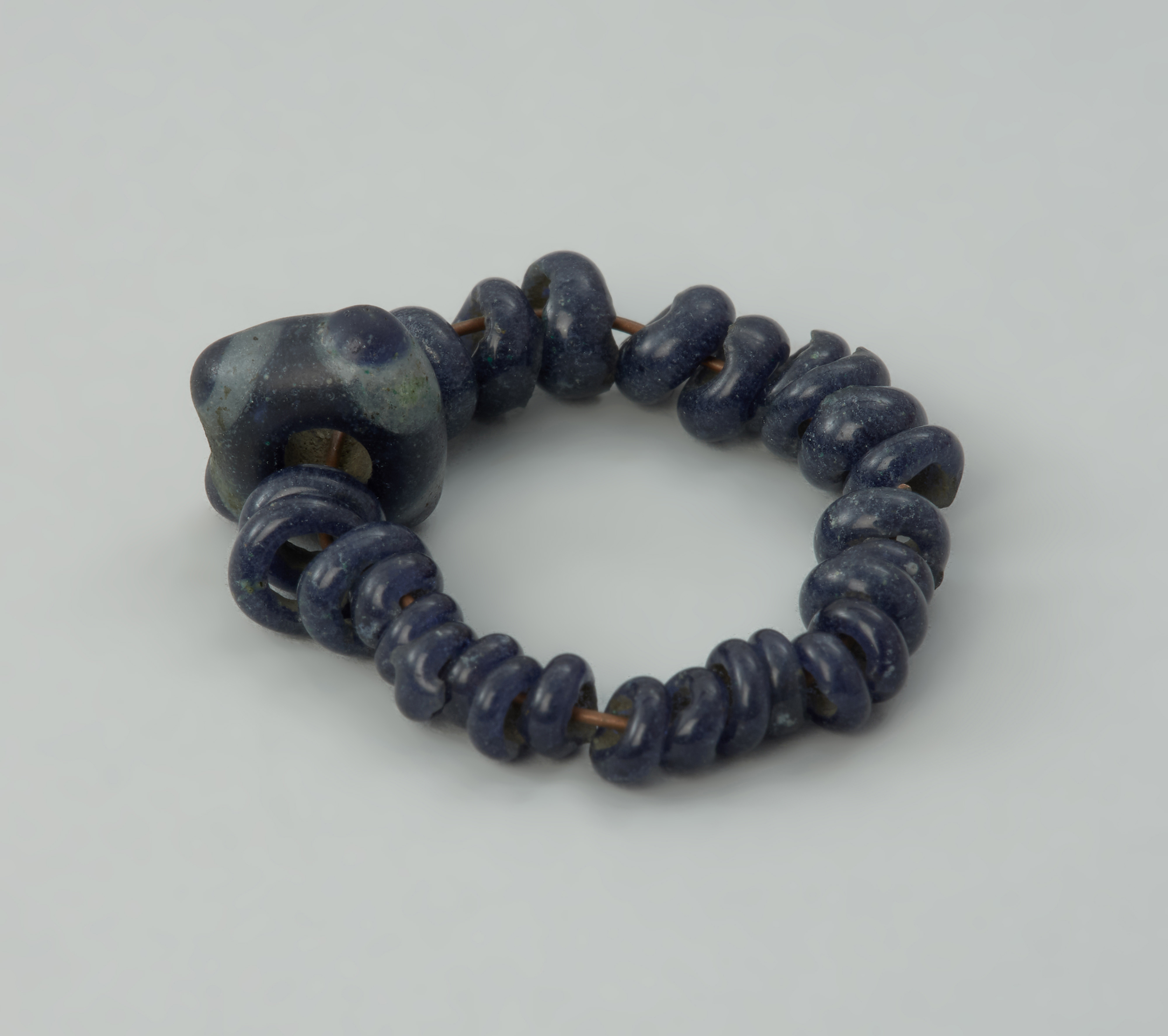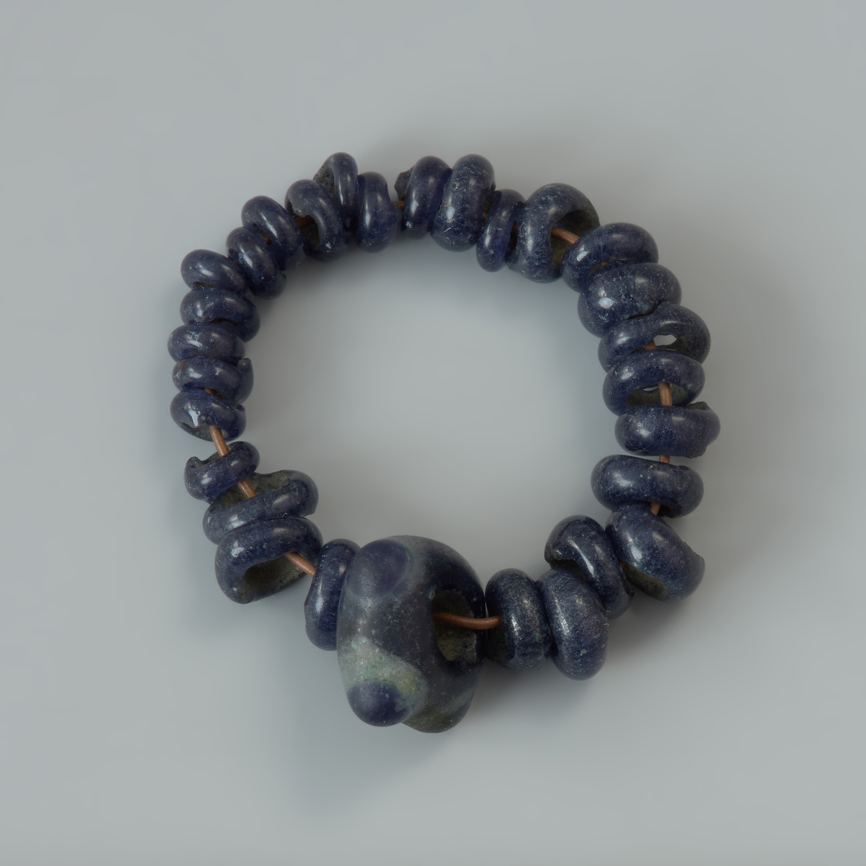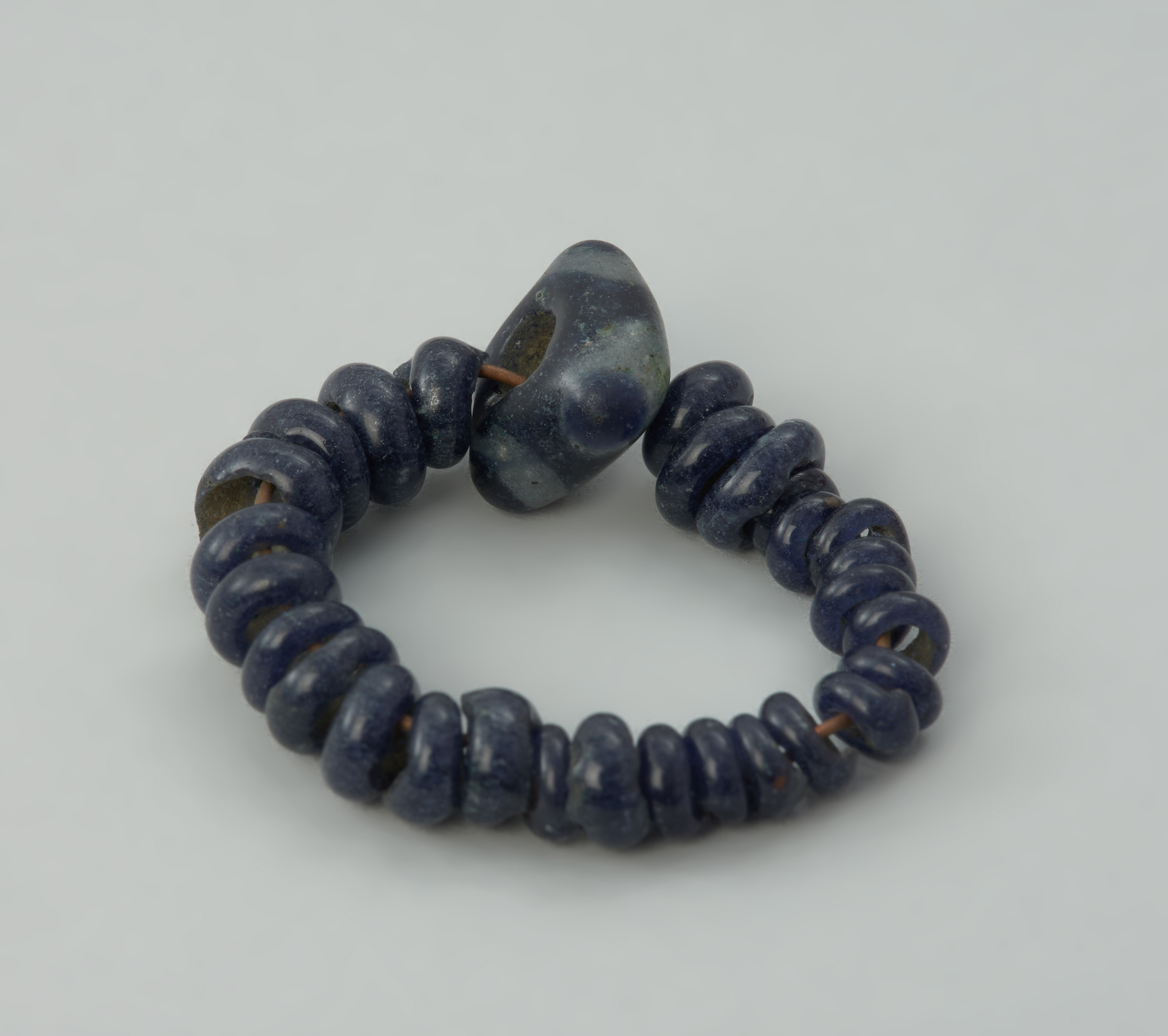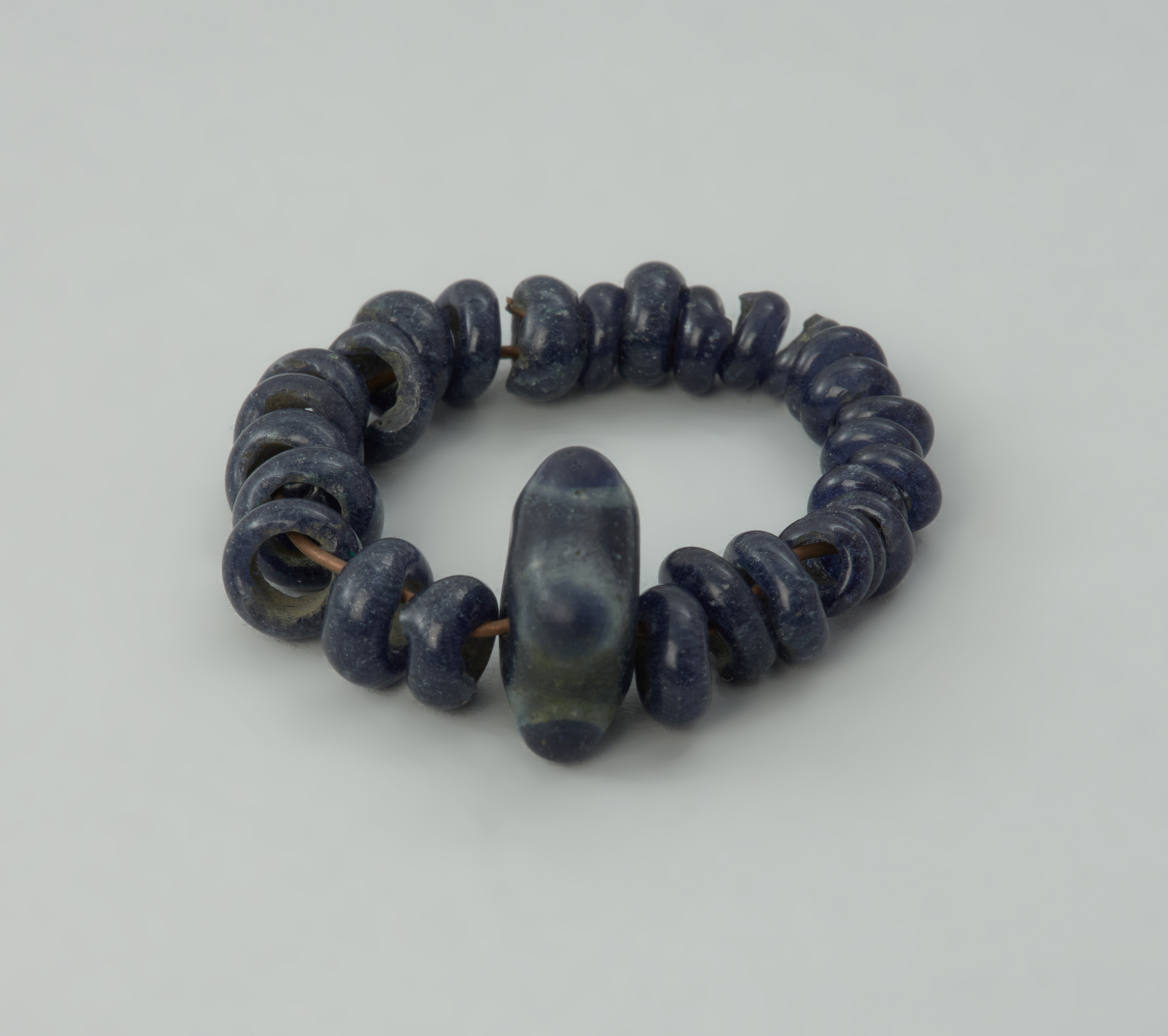 „Bransoletka” z Rzędzin to zbiór 28 małych ciemnoszafirowych, niezdobionych paciorków szklanych oraz jednego większego, w przybliżeniu czworokątnego, z charakterystycznymi wypustkami-guzkami. Faktyczna rola tych koralików, które w chwili odkrycia nie były na nic nawleczone, jest niestety trudna do określenia. Być może łączyły się w bransoletkę, a być może były elementami innych ozdób. Paciorki wchodzą w skład dużego skarbu, w którym znajdowały się ozdoby i narzędzia z brązu, umieszczone pierwotnie w glinianym naczyniu. Depozyt ten znaleziono przypadkowo w 1884 roku podczas rozrzucania kopców ziemniaków. W 1944 roku większość skarbu została wywieziona na zachód Niemiec i ukryta przed zniszczeniem wojennym i grabieżą. Ponowne scalenie skarbu nastąpiło dopiero w 2009 roku, w efekcie polsko-niemieckiej wymiany dawnych zbiorów archeologicznych. Depozyt z Rzędzin jest jednym z ciekawszych znalezisk archeologicznych. Reprezentuje nieliczną grupę skarbów pomorskich z IV okresu epoki brązu (lata ok. 1100–900 BC), które w swoim składzie nie mają ozdób brązowych typu „łużyckiego” ale wyroby charakterystyczne dla nordyjskiego kręgu kulturowego, który obejmował rozległe tereny południowej Skandynawii oraz północnych Niemiec. Drobne paciorki szklane należą do rzadkich znalezisk, natomiast duży koralik z guzkami jest okazem unikatowym w Polsce. Analogiczne do niego egzemplarze znane są ze Szwajcarii, Niemiec, Czech, Grecji i Chorwacji. Przypuszcza się, że paciorki z Rzędzin zostały wykonane w odległej Italii.