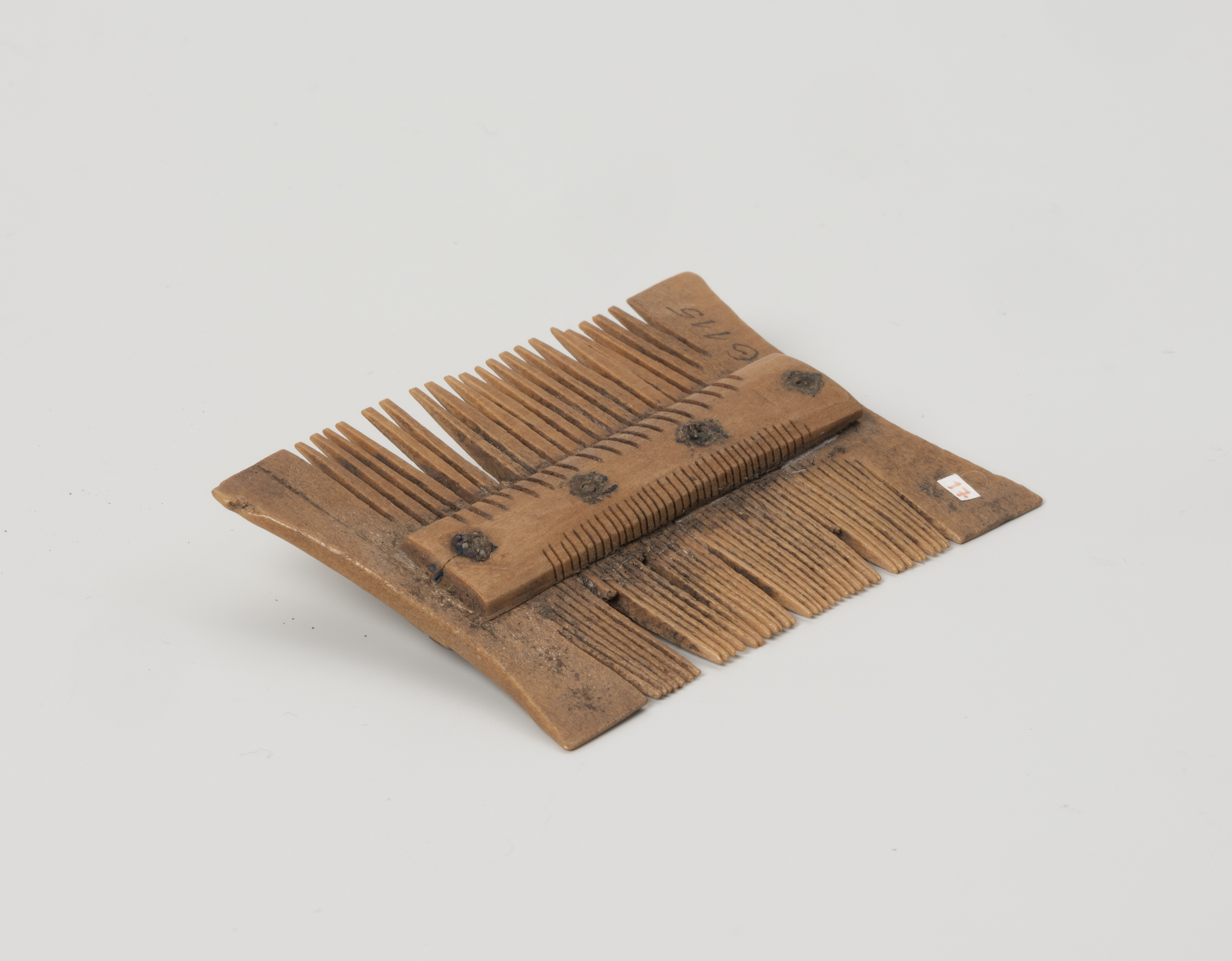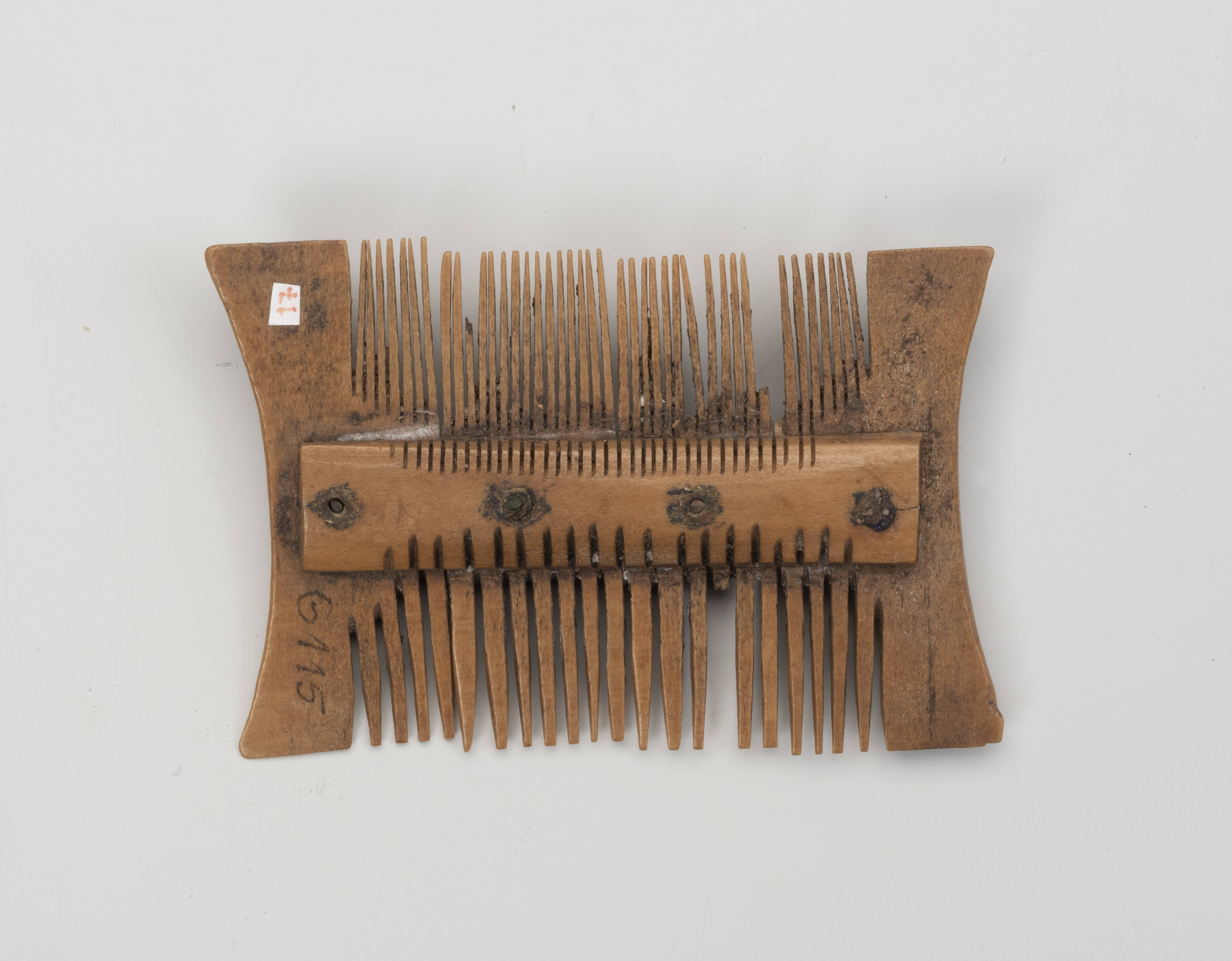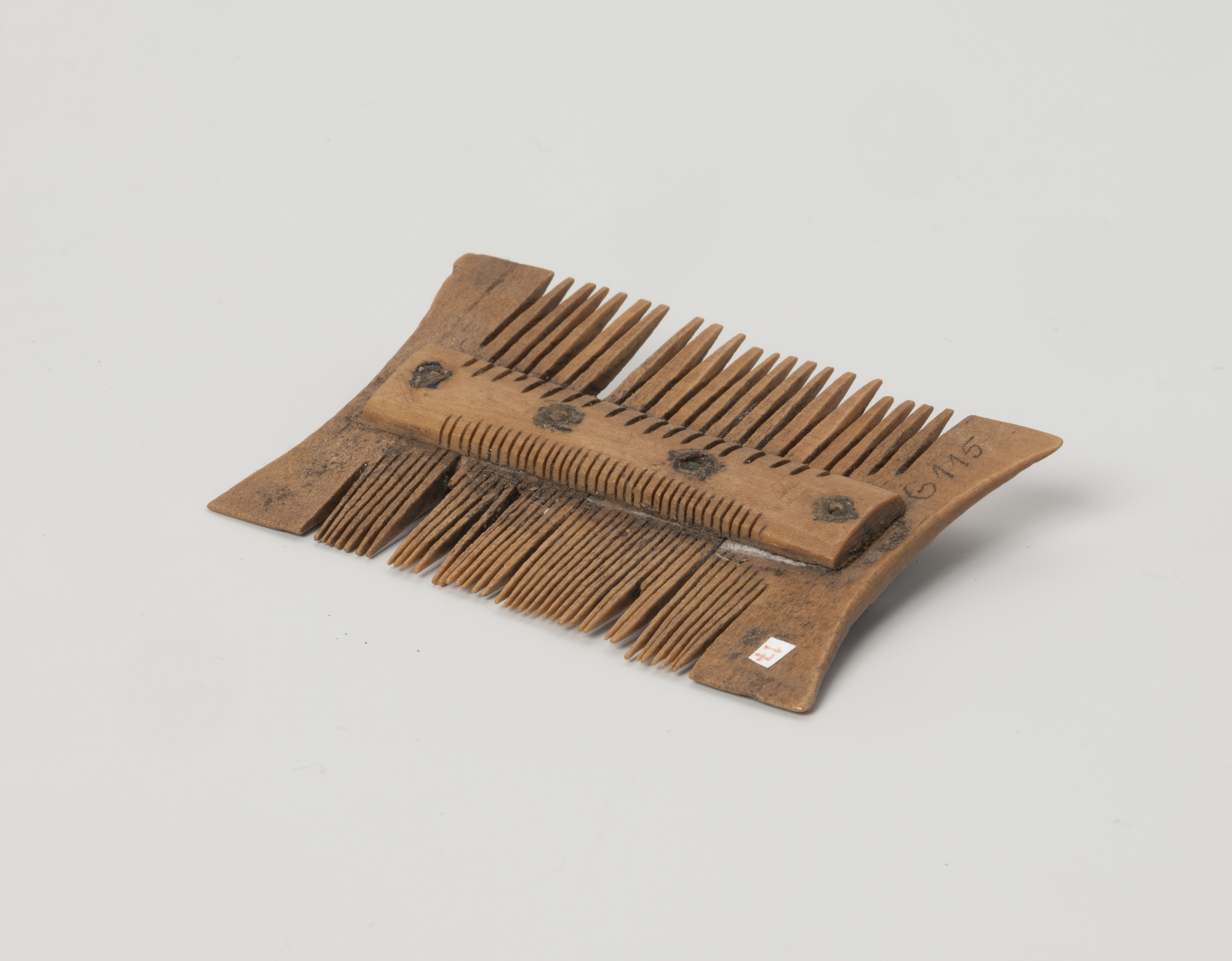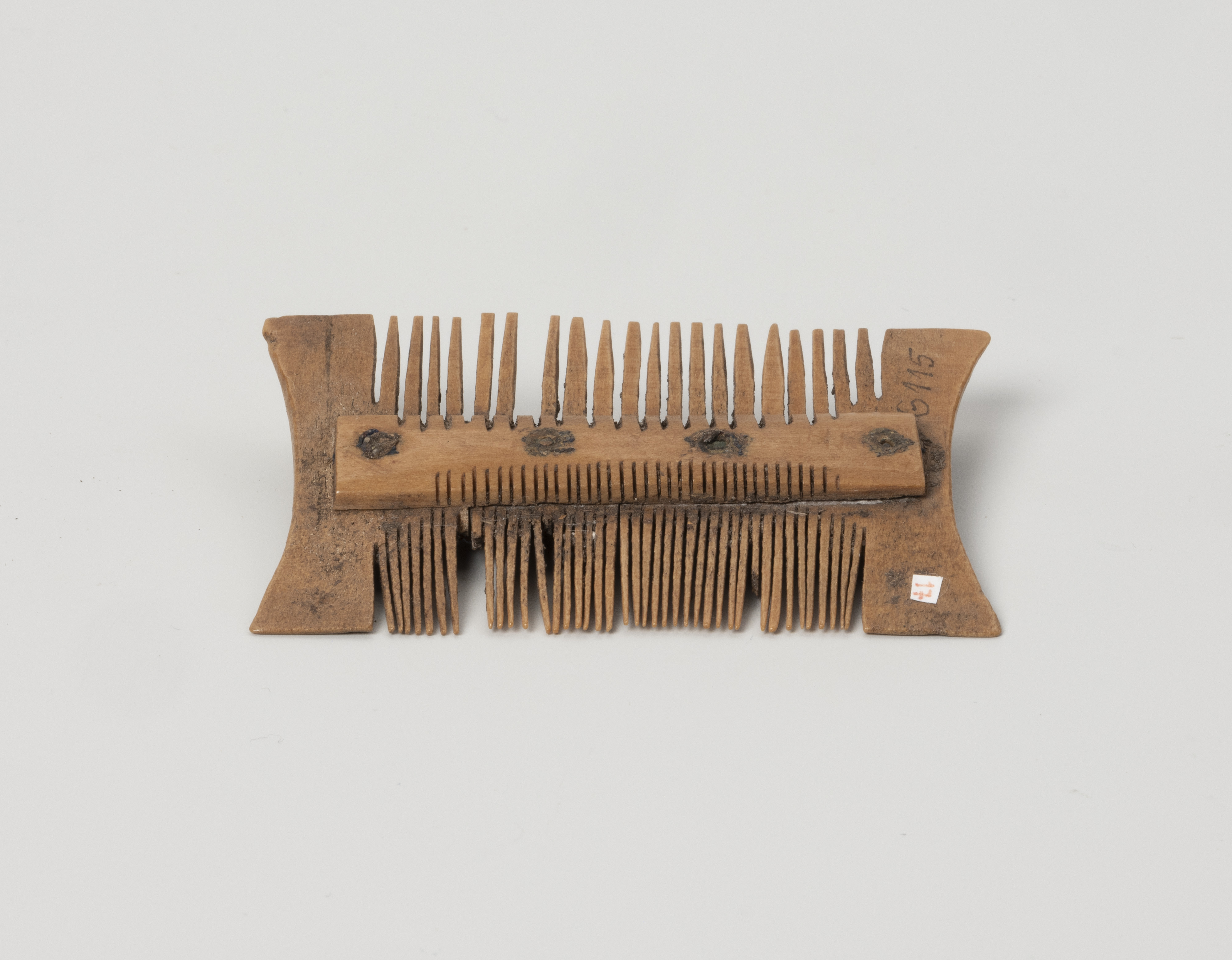 Dwustronny, niezdobiony grzebień, o numerze polowym 6115/5/VI/S, pochodzi z badań archeologicznych prowadzonych na terenie szczecińskiego Podzamcza. Wydobyto go z wykopu VI zlokalizowanego na kwartale 5. Zalegał w warstwie nr XXXIVg1, w budynku oznaczonym numerem 86.