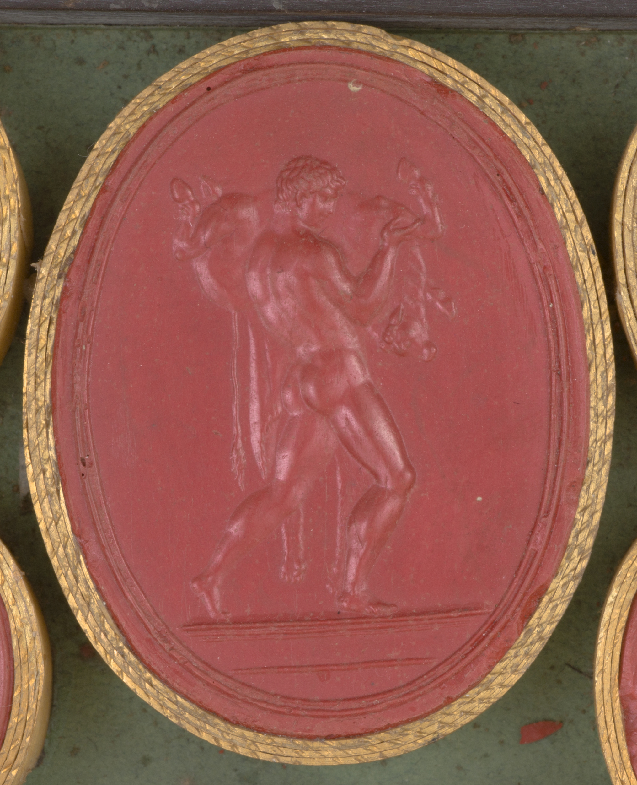 Repertuar odcisków jest niezwykle zróżnicowany, obejmując portrety, popiersia historyczne, postacie mitologiczne, sceny historyczne i mitologiczne, rzeźby, zwierzęta, wazy oraz maski. Odciski wykonane z czerwonej masy sugerują różnorodne pochodzenie.