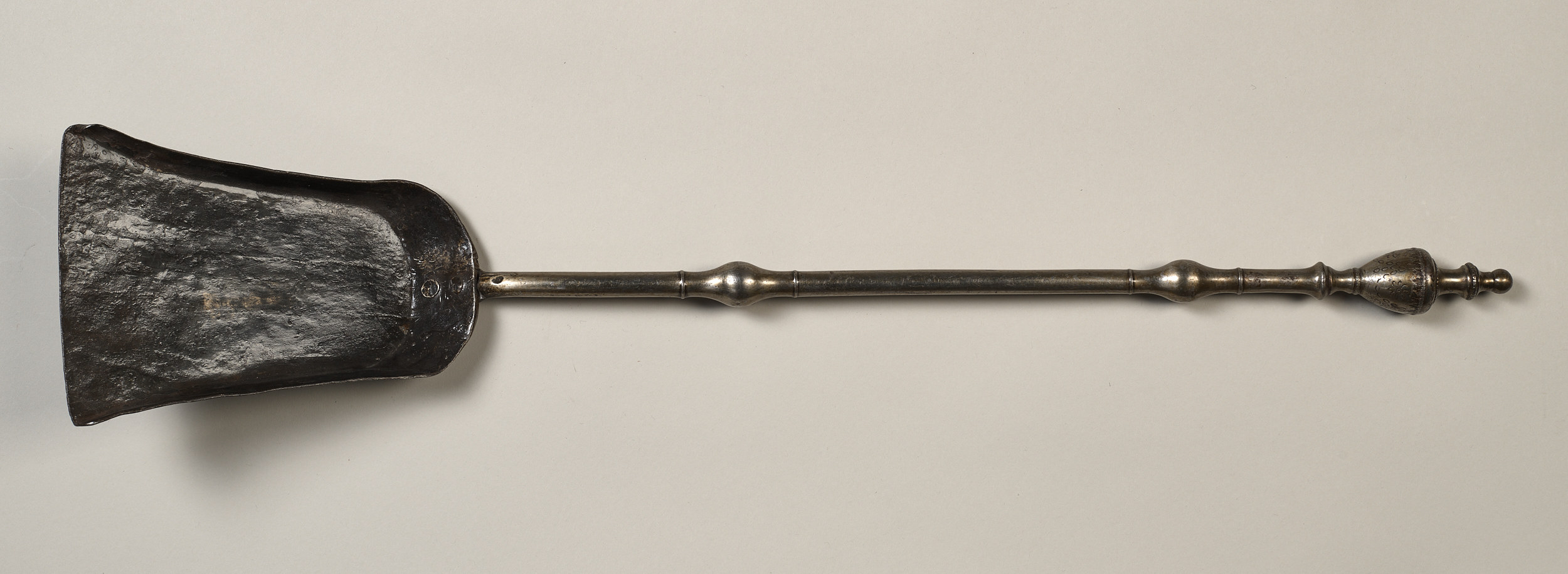 Kominkom, które służyły do ogrzewania pomieszczeń, towarzyszyły przybory kominkowe pełniące dwie funkcje- użytkową i dekoracyjną. W ich skład wchodziły: wilki kominkowe, szczypce, łopatka – szufelka, pogrzebacz, haczyk, miotełka, mieszek do podtrzymywania ognia (zwykle drewniany oprawiony w skórę), stojak na przybory, ekranik kominkowy, blacha przed kominek. Wyroby te podlegały modzie i ich wygląd zmieniał się w zależności od dominującego w danym okresie stylu w sztuce. Większość posiadanych przez Muzeum – Zamek w Łańcucie akcesoriów kominkowych pochodzi z czasu od XVIII wieku do pocz. XX wieku, a wykonane są z mosiądzu, brązu złoconego, stali, powstały zaś głownie Anglii, Francji i Polsce. Łopatka do wybierania popiołu z kominka, z kolekcji Potockich, ze stali, wyrób angielski z początku XIX wieku. Składa się z czółenka o kształcie wazonowym, rozszerzającym się ku zakończeniu i długiego okrągłego trzonu. Trzon ozdobiony jest w połowie długości nodusem i zakończony stylizowaną tralką ozdobioną dekoracją z girland, liści i perełek.