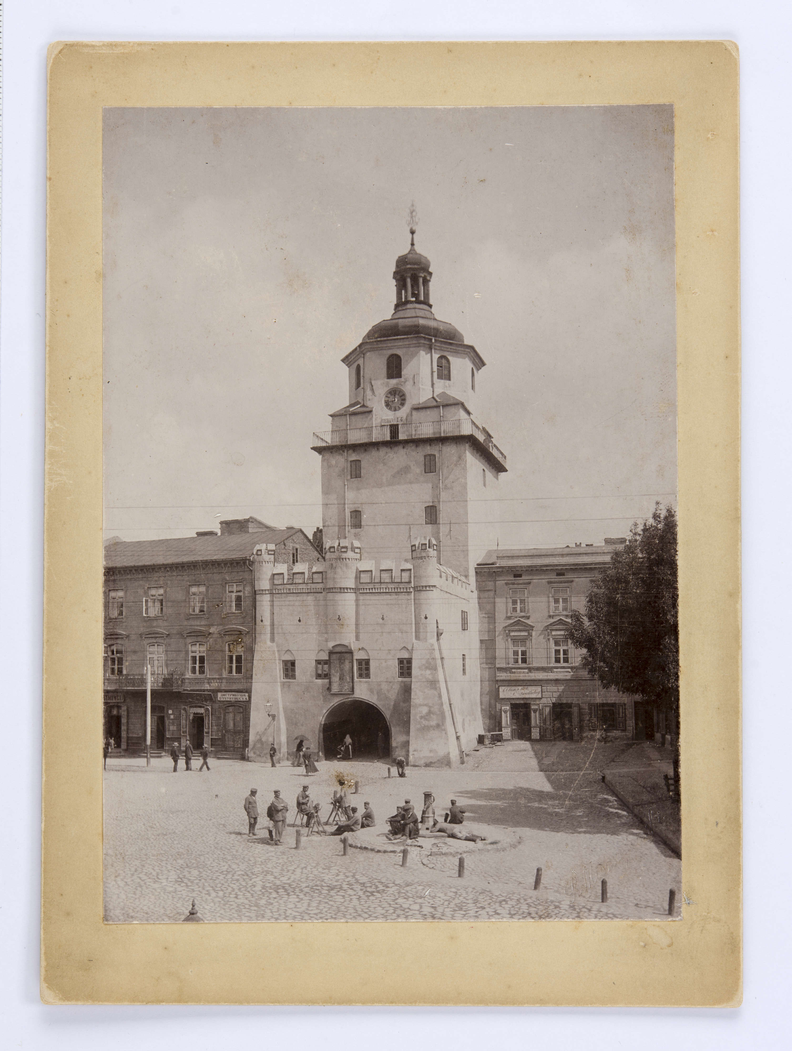 Jest to jedna z najstarszych zachowanych fotografii Lublina. Nieznany autor uwiecznił Bramę Krakowską jako miejsce, wokół którego toczy się życie codzienne miasta. W czasie powstania fotografii brama już od dawna nie pełniła pierwotnej funkcji obronnej. Z racji swojej wysokości była siedzibą straży ogniowej. Z ostatniej kondygnacji, czyli prawie 30 m, strażacy obserwowali, czy nie widać pożaru. Ponadto wywieszali tablicę z aktualną temperaturą powietrza w dwóch językach – rosyjskim i polskim, co widać na fotografii: „14 stopni tiepła”. W okresie zaborów rosyjski był językiem urzędowym.