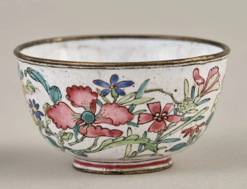 Czarka drewniana z toczonego drewna, wysoka, pokryta polerowaną laką, napylana złotym proszkiem, do picia sake. malowana czarną laką kuro-urushi, polerowaną. Dekoracja w postaci kompozycji pejzażowej obiega wokół zewnętrznych ścianek czarki. Przedstawia nadbrzeżne domostwo na tle skał, drzew sosnowych i wierzb, jest tam tez głaz porośnięty roślinnością; z odpoczywającym ptakiem wodnym. Wewnątrz dna czarki dekoracja kwiatowa, złocona. Japonia, Średnie i Późne Edo, XVIII/XIX wiek. Laka to żywica sumaka lakowego, rosnącego na południe od rzeki Jangcy, używana w japońskiej i chińskiej sztuce zdobniczej, często barwiona. Żywicę sumaka lakowego uzyskuje się przez nacięcie kory, wtedy wypływa z drzewa gęsty sok w postaci szarej emulsji. Substancja ta ciemnieje w kontakcie z powietrzem, a po odparowaniu wody w twardnieje. Żywica jest następnie oczyszczana i barwiona tlenkami metali. Szkielet przedmiotu wykonywano głównie z drewna wyszlifowanego, czasem oklejonego papierem lub płótnem dla wyrównania powierzchni. Lakowano także skórę, metal, papier mâché, plecionkę bambusową. Lakę nakładano wielokrotnie przed nałożeniem warstw, po stwardnieniu powierzchnia była dokładnie polerowana. Ilość nakładanych warstw zależała od techniki zdobienia. Przy gładkich tłach wystarczyło kilka warstw, przy rzeźbieniu nawet kilkaset. Laka stanowiła tło dla dekoracji. Techniki zdobienia laki ogólnie można podzielić na inkrustację, rzeźbienie i prószenie. Dwie pierwsze techniki pochodzą ze sztuki chińskiej, prószenie jest wkładem Japonii. Czarną i czerwoną laką pokrywano tace, grzebienie, biżuterię, gliniane naczynia, a nawet zbroje i trumny. Najstarsze wyroby z laki pochodzą z IV tysiąclecia p.n.e. Przez wieki sztuka zdobienia laką prawie zanikła, odrodziła się ponownie w XVIII/XII wieku naszej ery. Laka służyła do wyrobu bądź zdobienia mebli, naczyń, pędzli. Proces zdobienia tym rodzajem laki polegał na wielokrotnym pokrywaniu powierzchni żywicą i rzeźbieniu ornamentu w każdej warstwie, co nadawało temu zdobieniu przestrzenności. Przedmioty z laki jako pierwsi sprowadzili do Europy w XVI wieku jezuici. Laka stała się popularna w XVII i XVIII wieku.