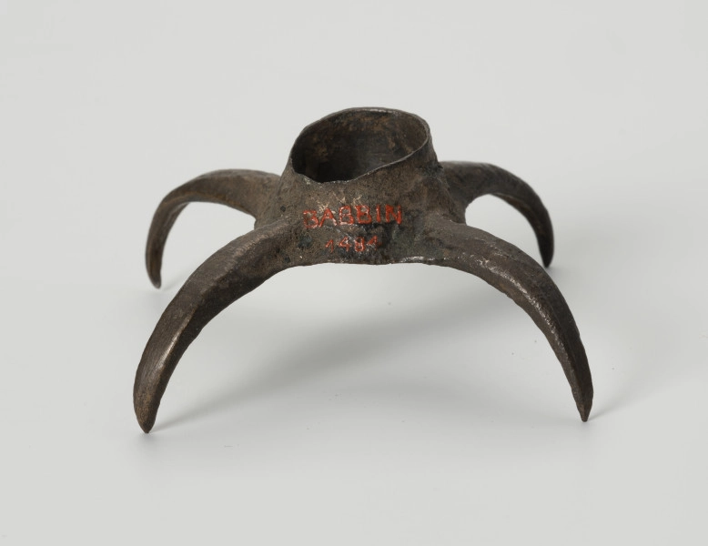 Ten zagadkowy niewielki przedmiot, złożony z tulejki i czterech kolczastych ramion, stanowi element pokaźnego skarbu, w którego składzie wystąpiły także spiralne naramienniki, groty włóczni i siekierki. Pierwsza wzmianka o depozycie, znalezionym podczas kopania torfu, pojawiła się w naukowym czasopiśmie „Anzeiger für Kunde der deutschen Vorzeit” w 1878 roku, czyli tuż po odkryciu. Dzięki staraniom kilku światłych osób, metale zostały przekazane w komplecie do zbiorów szczecińskiego Gesellschaft für Pommersche Geschichte und Altertumskunde (Towarzystwo Historii i Starożytności Pomorza).