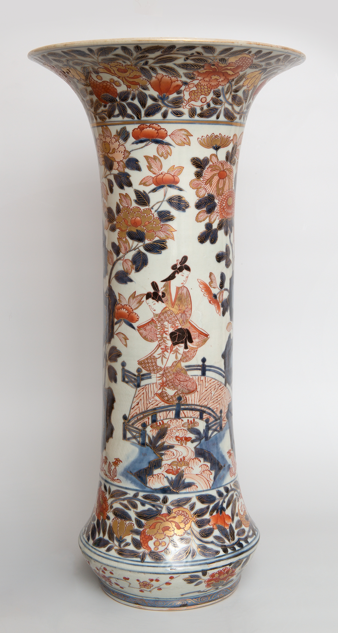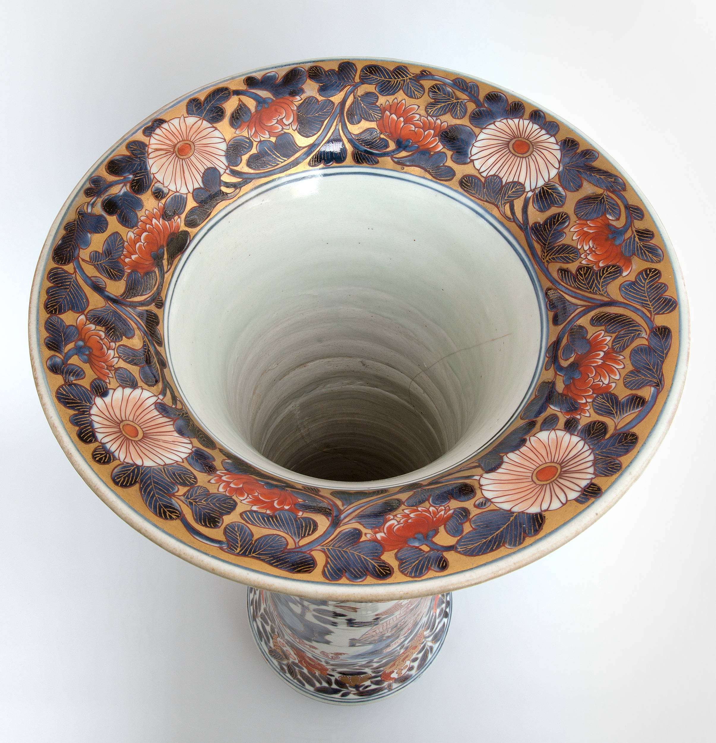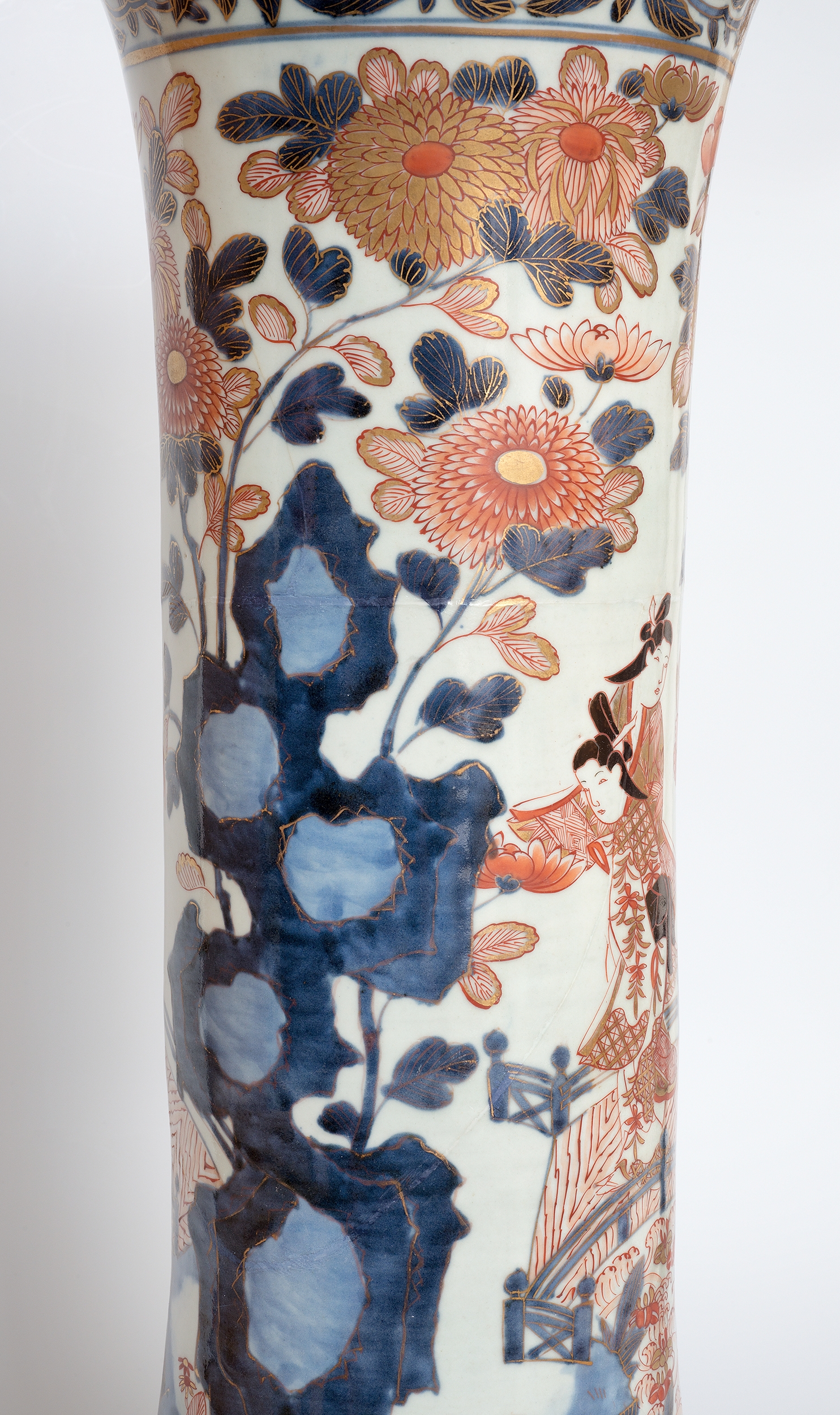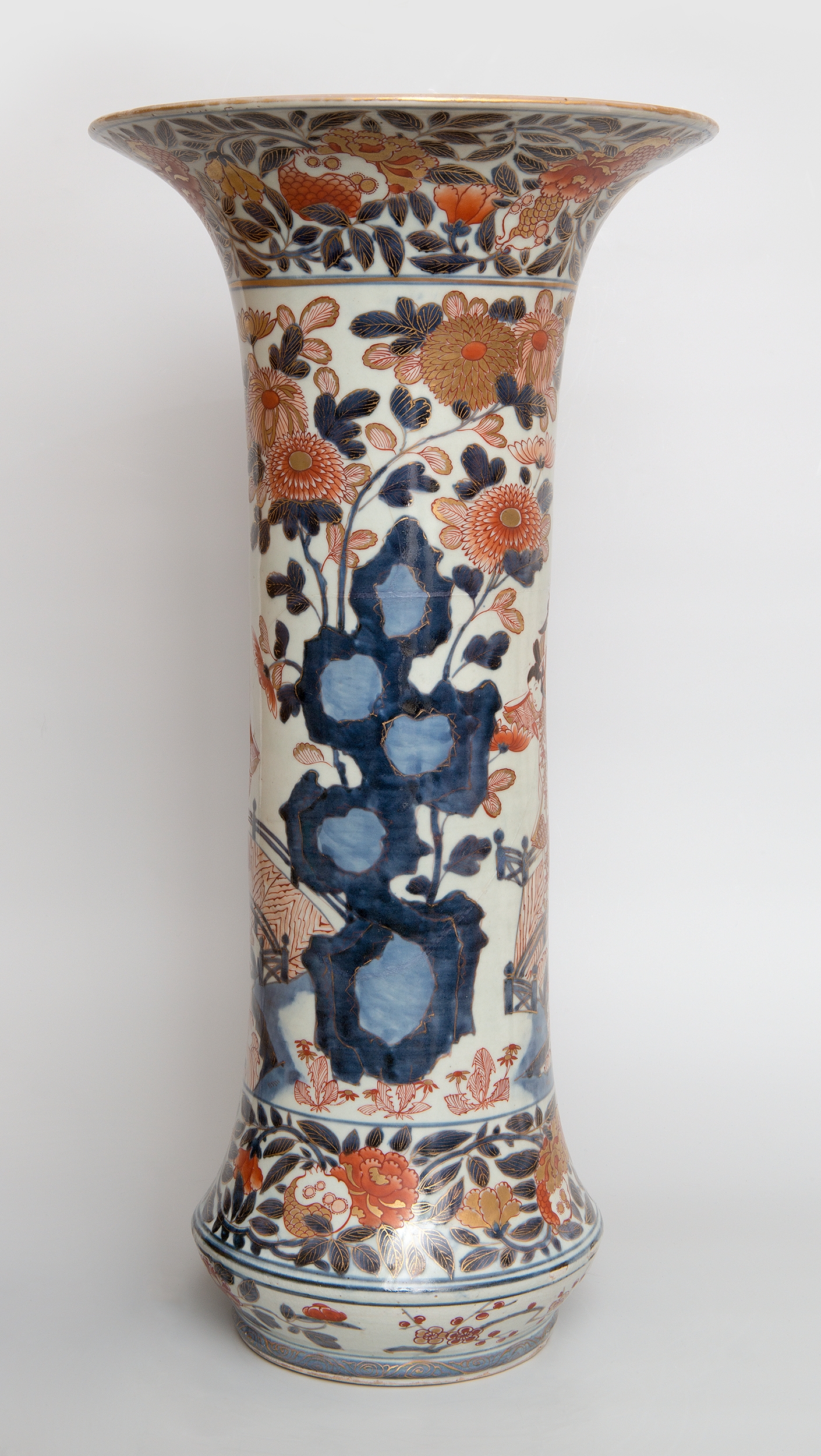 Wazon z jego dekoracją jest typowym przykładem zdobienia nazywanego „Imari”, czyli porcelany wytwarzanej w Arita na wyspie Kiusiu. Określenie Imari pochodzi od nazwy portu, z którego wypływały statki z japońskimi wyrobami eksportowymi. Kolorystyka charakterystyczna dla porcelany typu Imari obejmowała podszkliwny kobalt i naszkliwną czerwień żelazową i złocenia. Wyroby dalekowschodnie były niezwykle cenione i pożądane w Europie, dlatego też od XVII wieku produkowano je z przeznaczeniem na rynek europejski jako naczynia dekoracyjne.