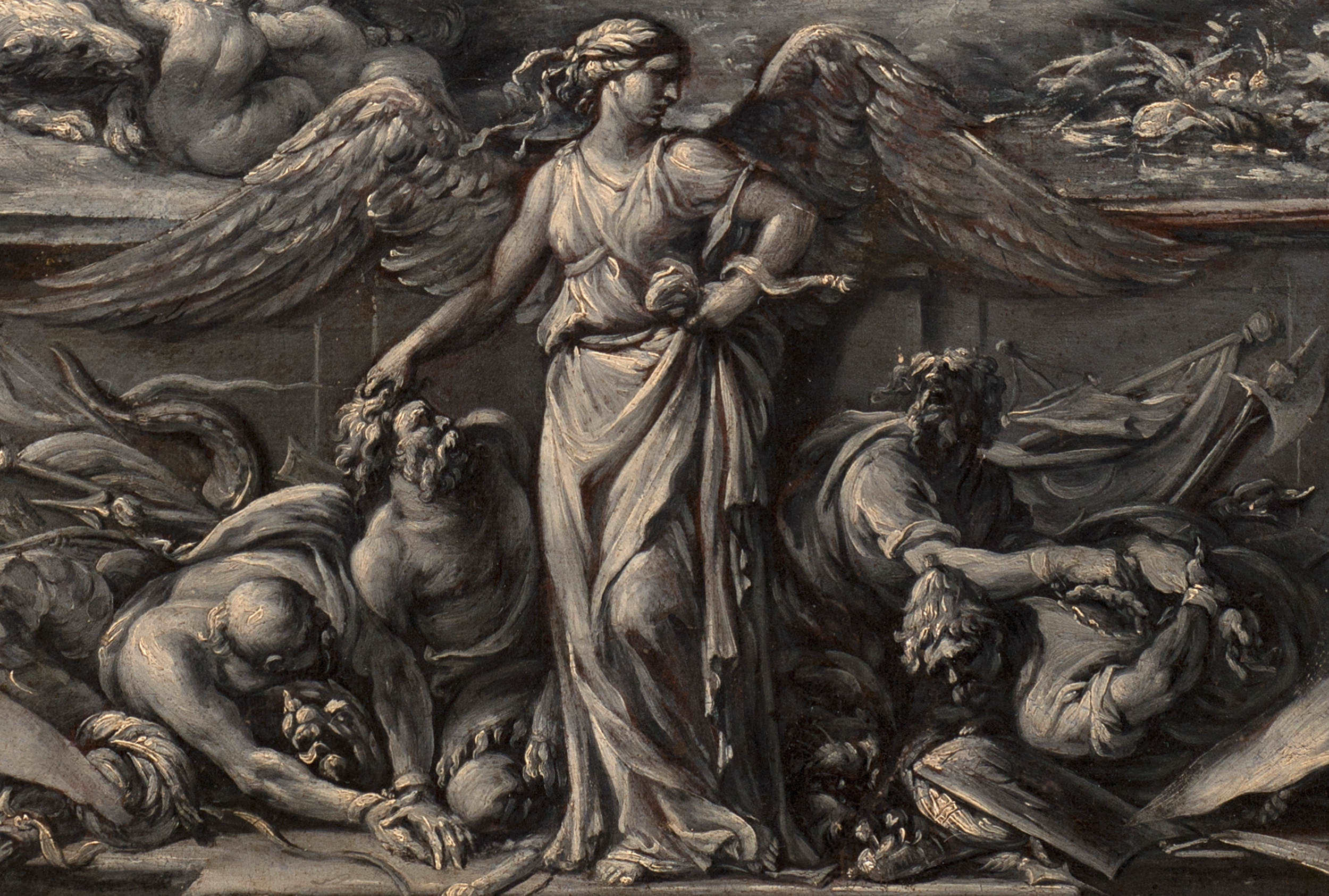Obraz do złudzenia przypomina grafikę. Miękkość rysunku wynikająca z odmienności użytego narzędzia odbiła się na jego precyzji. To jeden ze sposobów barokowego zaskoczenia widza, iluzja wprowadzająca niejednoznaczność w odniesieniu do zastosowanej techniki.