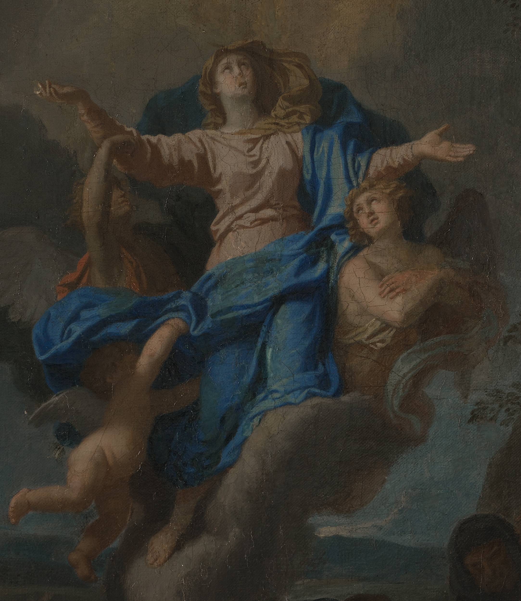 Charles Le Brun, nadworny malarz Ludwika XIV, kilkakroć wracał do tematu wniebowzięcia Maryi (m.in. w Musée Thomas-Henry). Kompozycje te w większości są zbliżone do siebie i noszą znamiona stylu charakterystycznego dla artysty. W roku 1654 artysta przyjął zlecenie na wykonanie cyklu 10 monumentalnych obrazów związanych z życiem Marii z przeznaczeniem do kaplicy seminaryjnej w kościele Saint-Sulpice w Paryżu. Kształt ostateczny zyskały jedynie dwa obrazy, a zachował się jeden: Zesłanie Ducha Świętego (317 x 265 cm; Luwr). W tym kontekście przypuszczać można, że obraz wilanowski był szkicem do jednej z tych scen (niezrealizowanym).