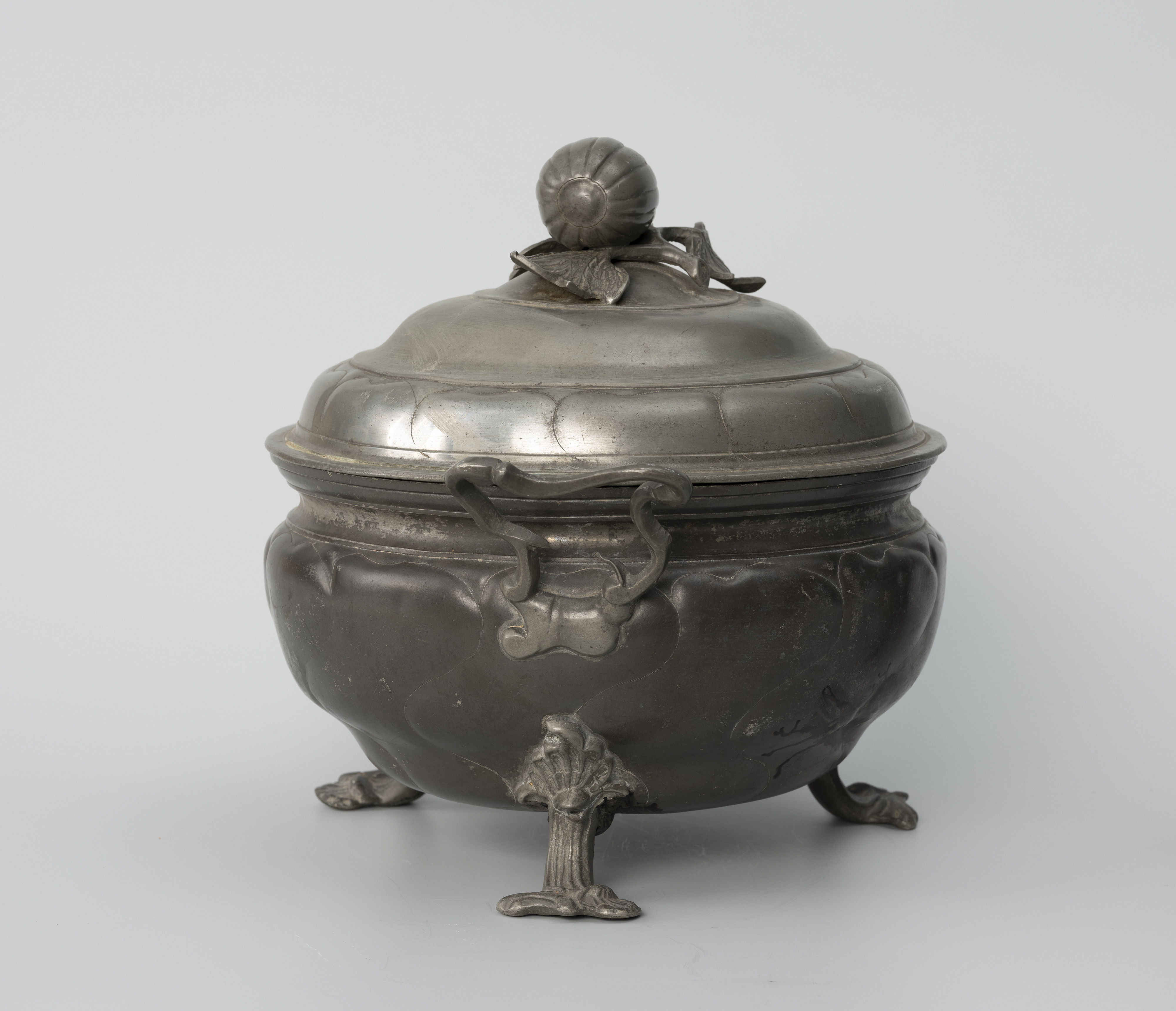 Na obszarze Pomorza jeden z prężniej działających cechów konwisarzy znajdował się w Szczecinie, gdzie w okresie od XV do połowy XIX stulecia funkcjonowało ponad stu rzemieślników, którzy zawodowo zajmowali się tym rzemiosłem. Jednym z nich był Andreas Oestmann, pochodzący ze szwedzkiej miejscowości Karlskrona, który prawa cywilne Szczecina uzyskał 30 lipca 1756 roku. Jako obywatel miasta wykonywał wiele różnego rodzaju przedmiotów, pośród których znajdowała się prezentowana teryna cynowa o bardzo efektownej formie, naśladująca wyroby srebrne. Analogiczne obiekty znajdują się w zbiorach Muzeum Narodowego w Gdańsku (nieco mniejszy wariant), a także Muzeum Narodowego w Warszawie.