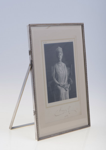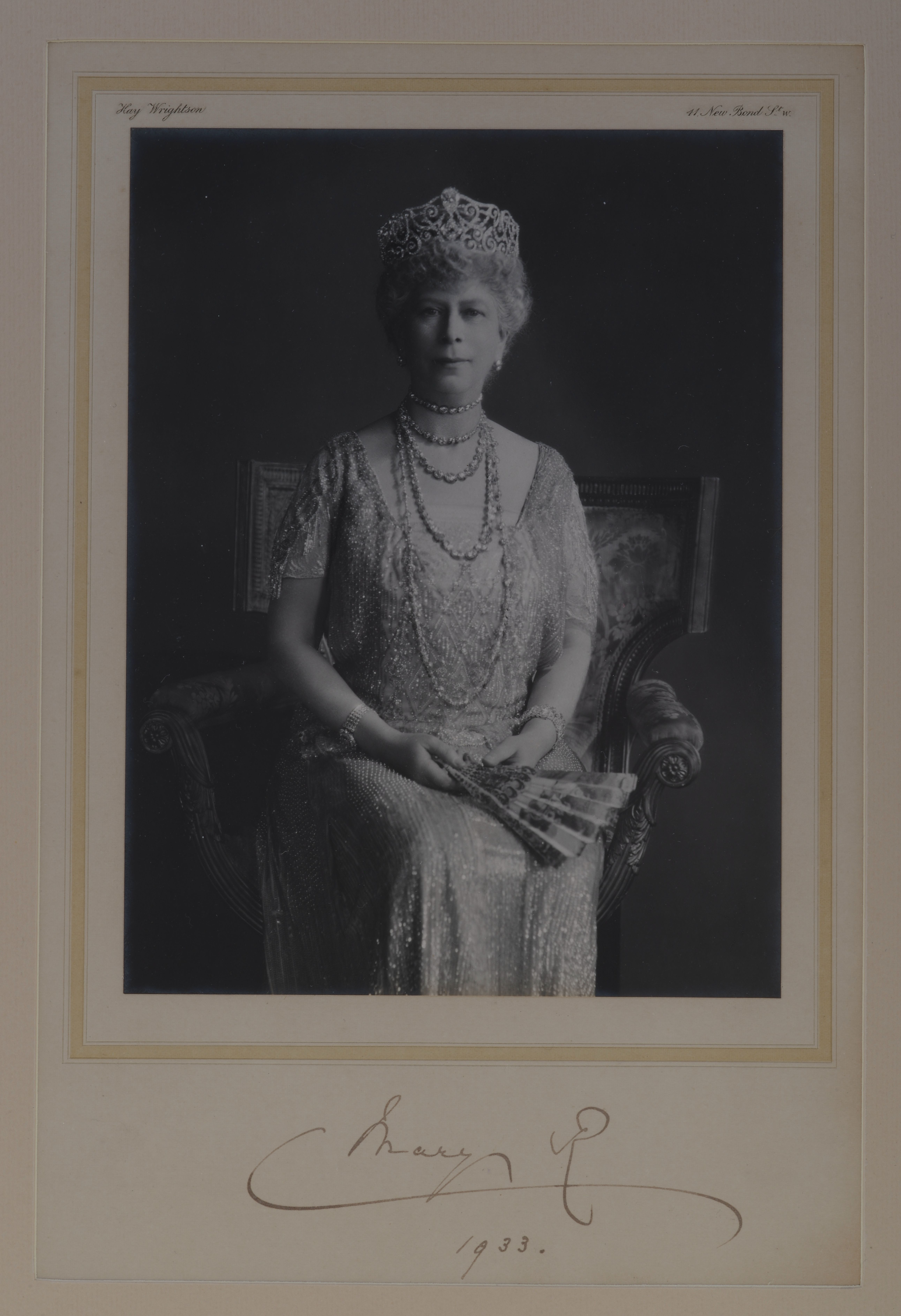 Oprawna odbitka fotograficzna w technice srebrowo-żelatynowej na podłożu papierowym, naklejona na zadrukowany karton podpisany atramentem, umieszczona w srebrnej ramie. Autorem fotografii jest Hay Wrightson (1874–1949). Na oprawie widnieje autograf królowej oraz data: „Mary R || 1933”.
