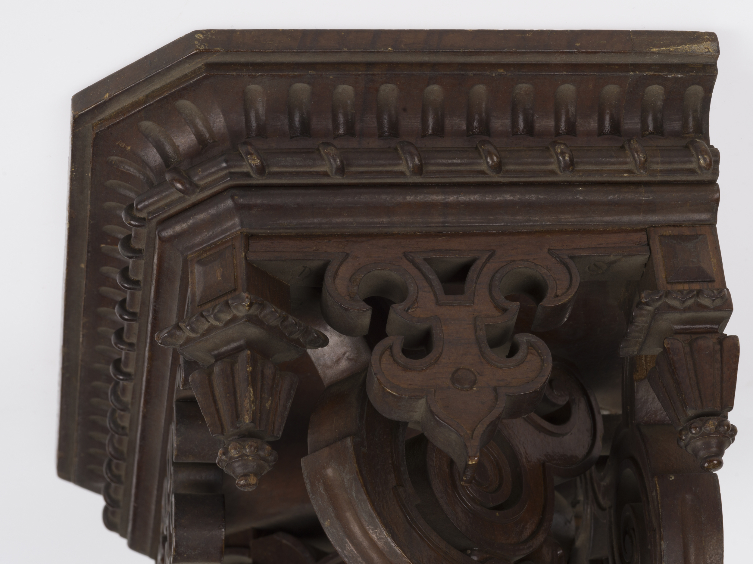 Przedmiot stanowi element zespołu, na który składają się cztery konsolki o numerach inwentarzowych Wil.3237/1-4.