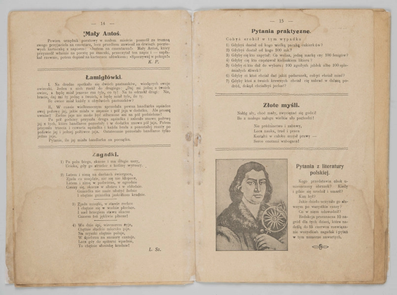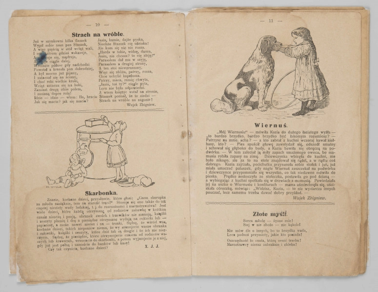 Na łamach miesięcznika publikowano wiersze, modlitwy, pieśni, sztuki teatralne, legendy i opowiadania, a także drukowano obrazki propagujące religijność i wzywające do abstynencji. Docelowym czytelnikiem były dzieci, ale zachęcano też do głośnego czytania pisma przy rodzinnym stole. Dlatego w przypisach można odnaleźć, na przykład, definicję alkoholu – „trucizny, znajdującej się w wódce, w winie itp.” (dzięki temu dzieci miały wpływać na rodziców). W późniejszych numerach autorzy zamieszczali także zagadki, listy od czytelników oraz artykuły przybliżające historię Polski.