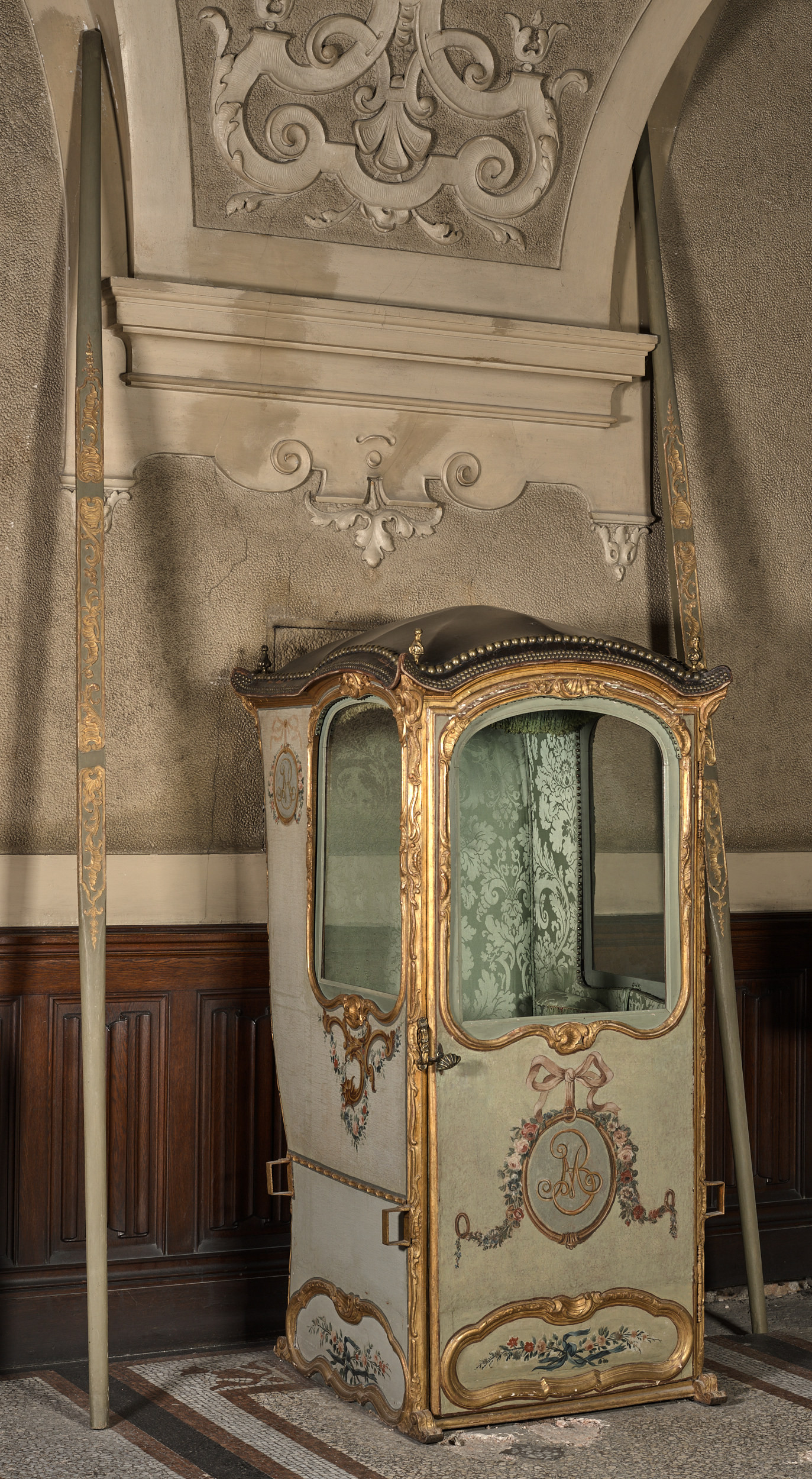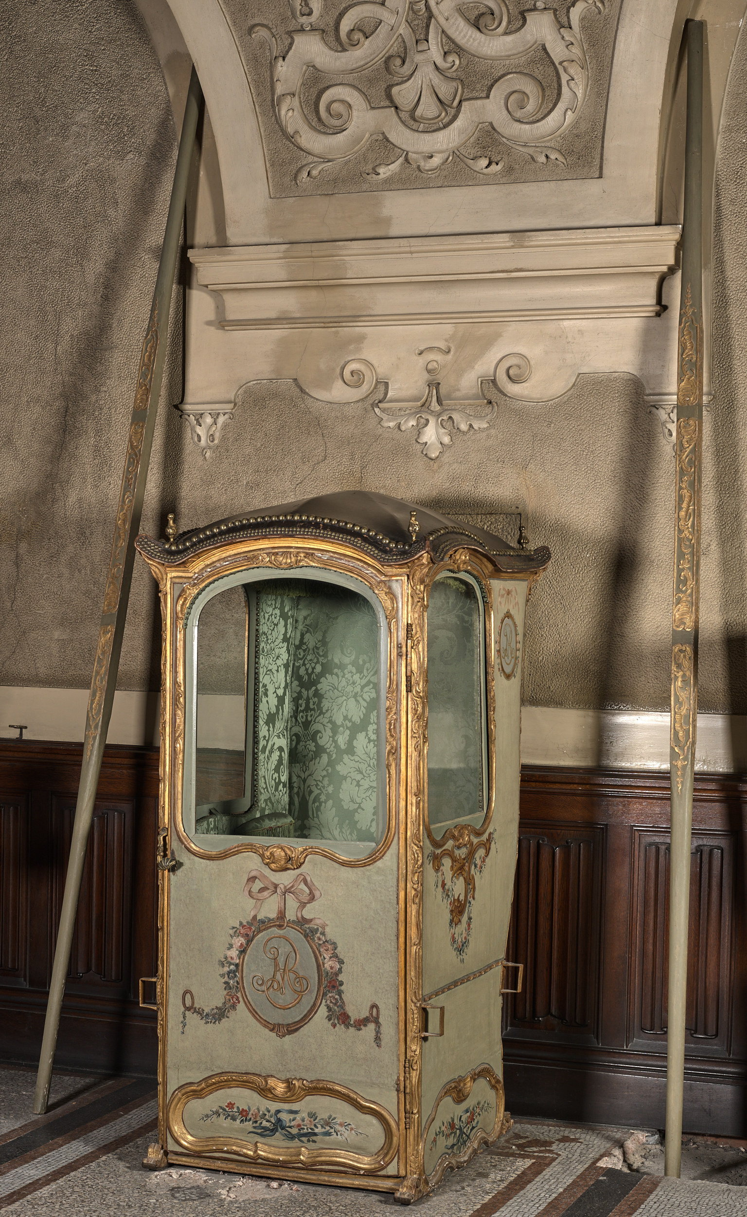 LEKTYKA jest znana już od starożytności i występuję na wszystkich kontynentach. Jest to przeważnie krzesło lub łoże o bokach z tkaniny lub innych trwałych materiałów z własnym zadaszeniem i przenoszone przez tragarzy lub zwierzęta juczne. Stąd może się rodzić pytanie czy lektyka to bardziej pojazd czy też mebel. Nasza lektyka jest wykonana w stylu Ludwika XV, zdobiona motywami charakterystycznymi dla stylu rokoka z lat 1730 – 1750. Powstała około połowy XVIII w. we Francji. Posiada kształt prostopadłościanu o trzech prostych ścianach, zaś ściana tylna jest zaokrąglona dla większego komfortu osoby przenoszonej. W bocznych ściankach i w drzwiach (zajmujące całą szerokość i wysokość lektyki) znajdują się szyby, które można opuszczać za pomocą pasów (zapewniona jest tym sposobem klimatyzacja). Do przenoszenia służą dwa długie drążki (oparte po bokach lektyki), które są wsuwane w antabki umieszczone w dolnej partii boków lektyki. Z przodu na drzwiach lektyki w otoczeniu girland kwiatowych umieszczono medalion z literami „MB”. Według tradycji lektyka ta należała do francuskiego biskupa diecezji Leon – Ludwika Honoriusza de Sabran. W okresie przed rewolucją francuską prowadził prace w swojej diecezji (biskupem został w wieku 37 lat) zaś na dworze króla pełnił pierwsze funkcję spowiednika króla (1767 – 1774) później (od roku 1774) był pierwszym spowiednikiem Marii Antoniny zaś w roku 1780 otrzymał godność Wielkiego Kapelana Królowej Francji Marii Antoniny oraz zarządzał kaplicą królewską w Wersalu. Po wybuchu rewolucji, do której był nastawiony negatywnie i niezłożeniu przysięgi na tzw. ustawę cywilną udał się na emigrację. Przed wyjazdem udzielił jeszcze ostatniego namaszczenia królowej Marii Antoninie, która została ścięta jako „wdowa Capet”: w 1793 roku. Na emigracji przebywał w Anglii, Holandii, Prusach, Austrii tam w Wiedniu 1803 roku spotkał Księżnę Izabelę z Czartoryskich Lubomirską, zwaną Księżną Marszałkową, która francuskiego emigranta zaprosiła do Zamku Łańcuckiego, gdzie otrzymał własny apartament. Przebywając w Łańcucie biskup brał czynny udział w życiu religijnym jego mieszkańców a pod nieobecność Księżnej Marszałkowej zarządzał jej posiadłością do swojej śmierci w roku 1811. Dzisiaj lektyka jest eksponowana w Wielkiej Sieni Wjazdowej i wita turystów udających się na zwiedzanie wnętrz Zamku Łańcuckiego.