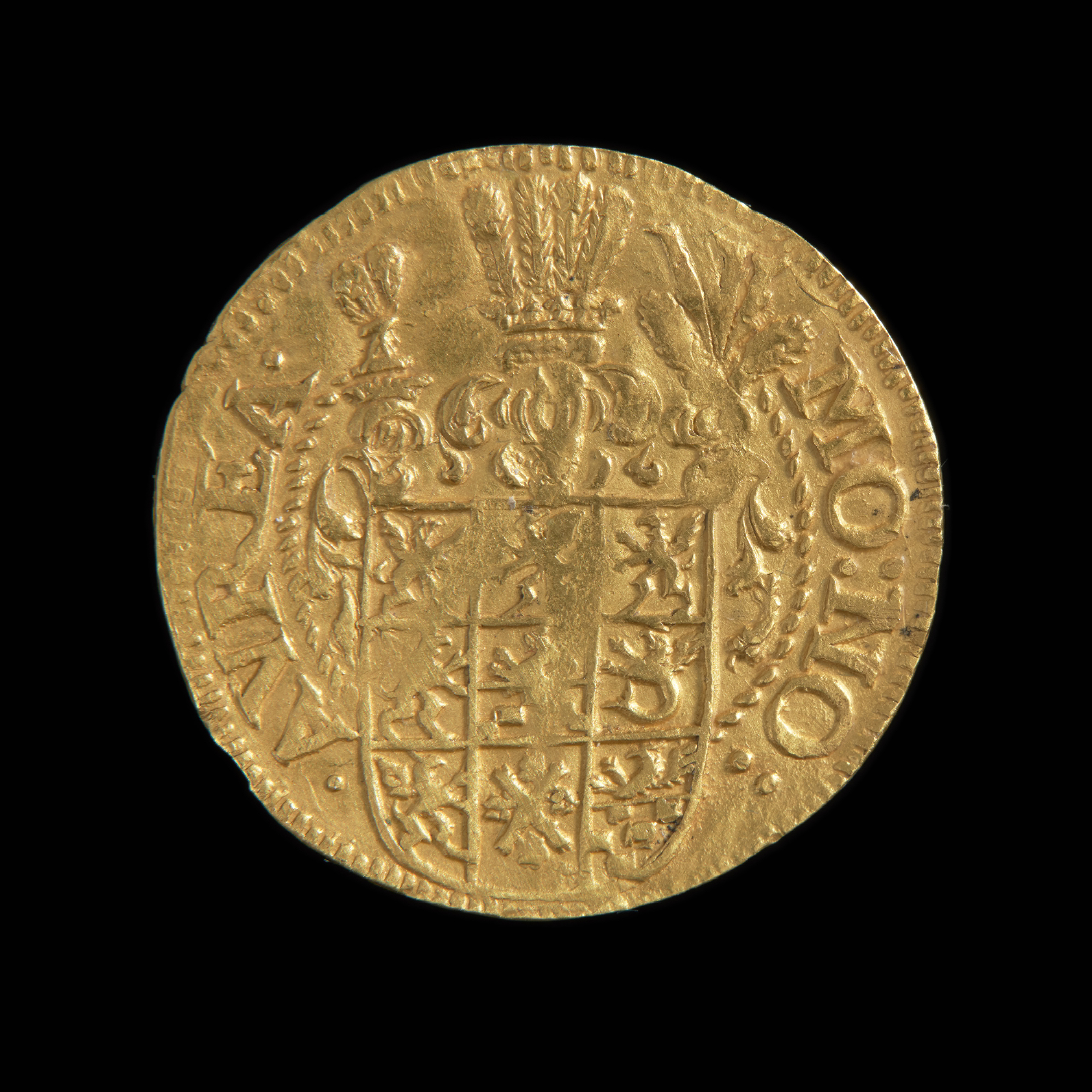 Panowanie księcia Bogusława XIV w całości przypadało na okres wojny trzydziestoletniej (1618–1648). Kontrybucje i utrzymanie armii cesarskiej, która w 1627 roku zajęła terytorium księstwa pochłonęły ogromne sumy. Po okresie masowych emisji niskowartościowych szelągów podwójnych mennice książęce w Szczecinie i Koszalinie produkowały wyłącznie talary, ich frakcje oraz dukaty. Nie służyły one poprawie finansów księstwa, lecz zaspokojeniu roszczeń obcych wojsk. Mimo krytycznej sytuacji politycznej i gospodarczej nie zdołano wprowadzić żadnych zmian w ustroju menniczym państwa. W 1633 roku w obu mennicach bito dukaty o bardzo podobnej szacie graficznej. Na stronie głównej po raz pierwszy umieszczono wizerunek księcia w zbroi stojącego, z rapierem przy boku. Bogusław XIV przedstawiony został w pozie reprezentacyjnej, jako idealny rycerz i władca. Zwraca uwagę wyraźne eksponowanie akcentów militarnych, pomimo tragicznej sytuacji kraju, choroby i częściowego paraliżu księcia. Awers monet nawiązuje do holenderskiego wzorca dukatów, który upowszechnił się w Europie w XVII i XVIII stuleciu. Na rewersie znalazły się wielopolowe tarcze herbowe z symbolami ziem wchodzącymi w skład księstwa pomorskiego. Na tym kończy się podobieństwo ikonograficzne dukatów koszalińskich i szczecińskich. Okazy szczecińskie wyróżnia dekoracyjne zwieńczenie tarczy herbowej, podkreślające tradycyjną, heraldyczną symbolikę państwa pomorskiego i dynastii. Tekst zawarty w legendzie rewersu informuje, że jest to nowa złota moneta o aktualnie obowiązującym stemplu i kursie, co miało znaczenie, gdyż w obiegu były lżejsze guldeny. Prezentowany egzemplarz nie należy do reprezentacyjnych, wizerunek władcy jest bardzo schematyczny i mało staranny, co dziwi ponieważ do emisji złotych monet angażowani byli zazwyczaj uzdolnieni rytownicy. Zdaje się, że w tym przypadku nie decydowały względy estetyczne, ale ekonomiczne. Emisje były przeznaczone na żołd dla wysokiej rangi oficerów cesarskiej armii.