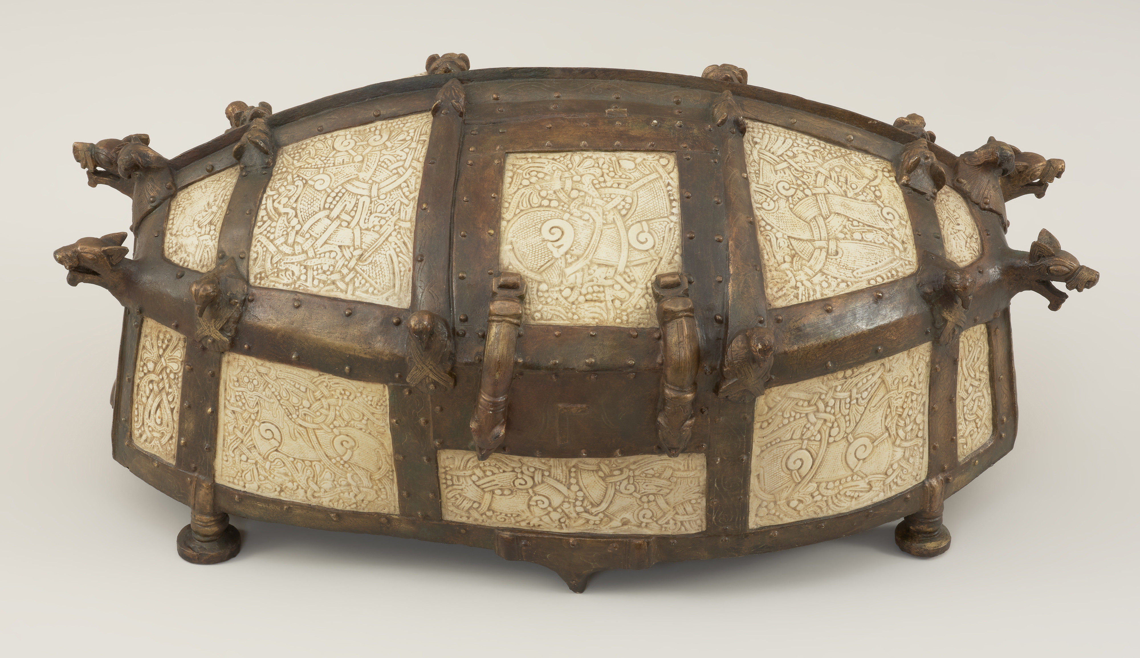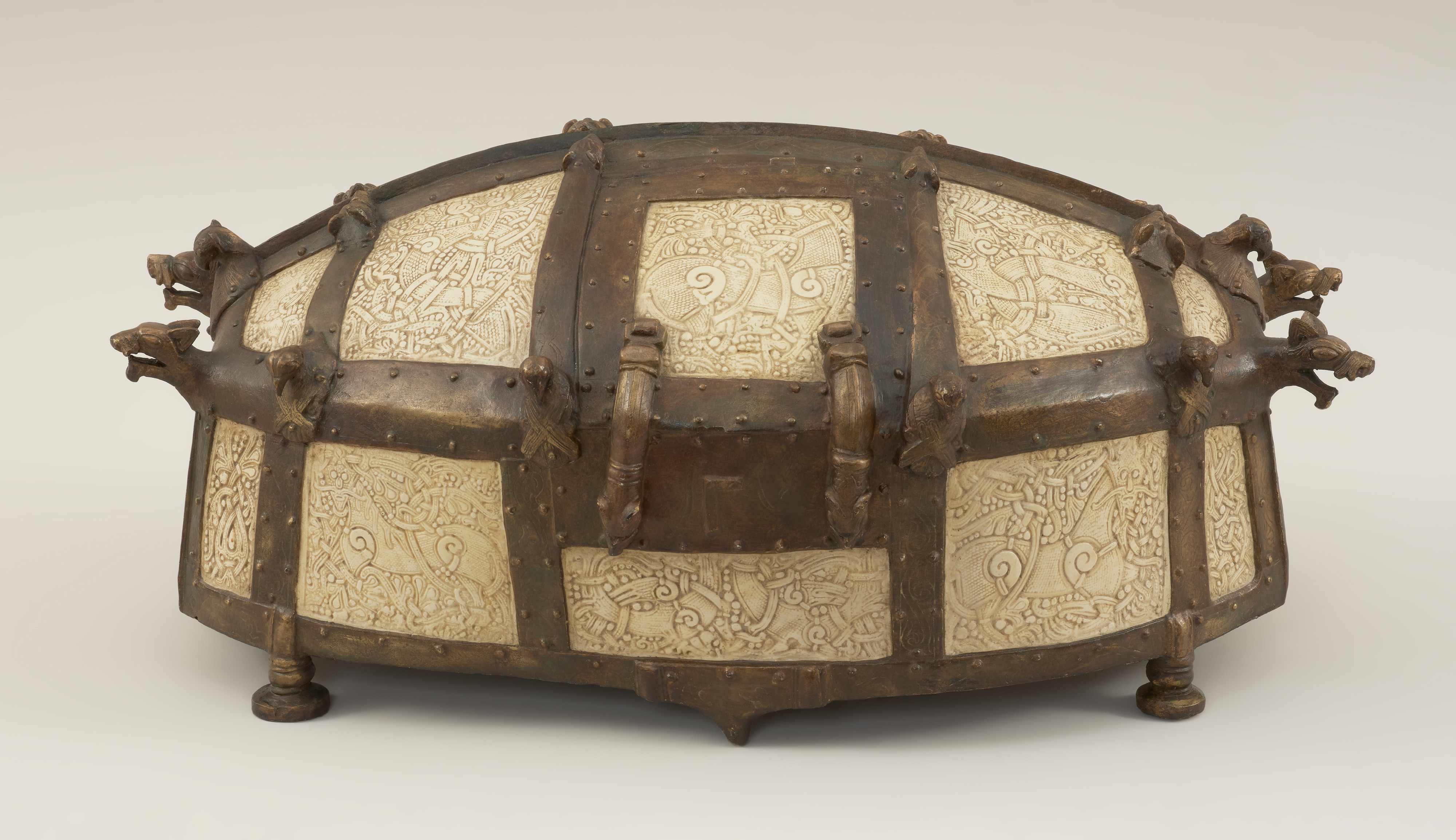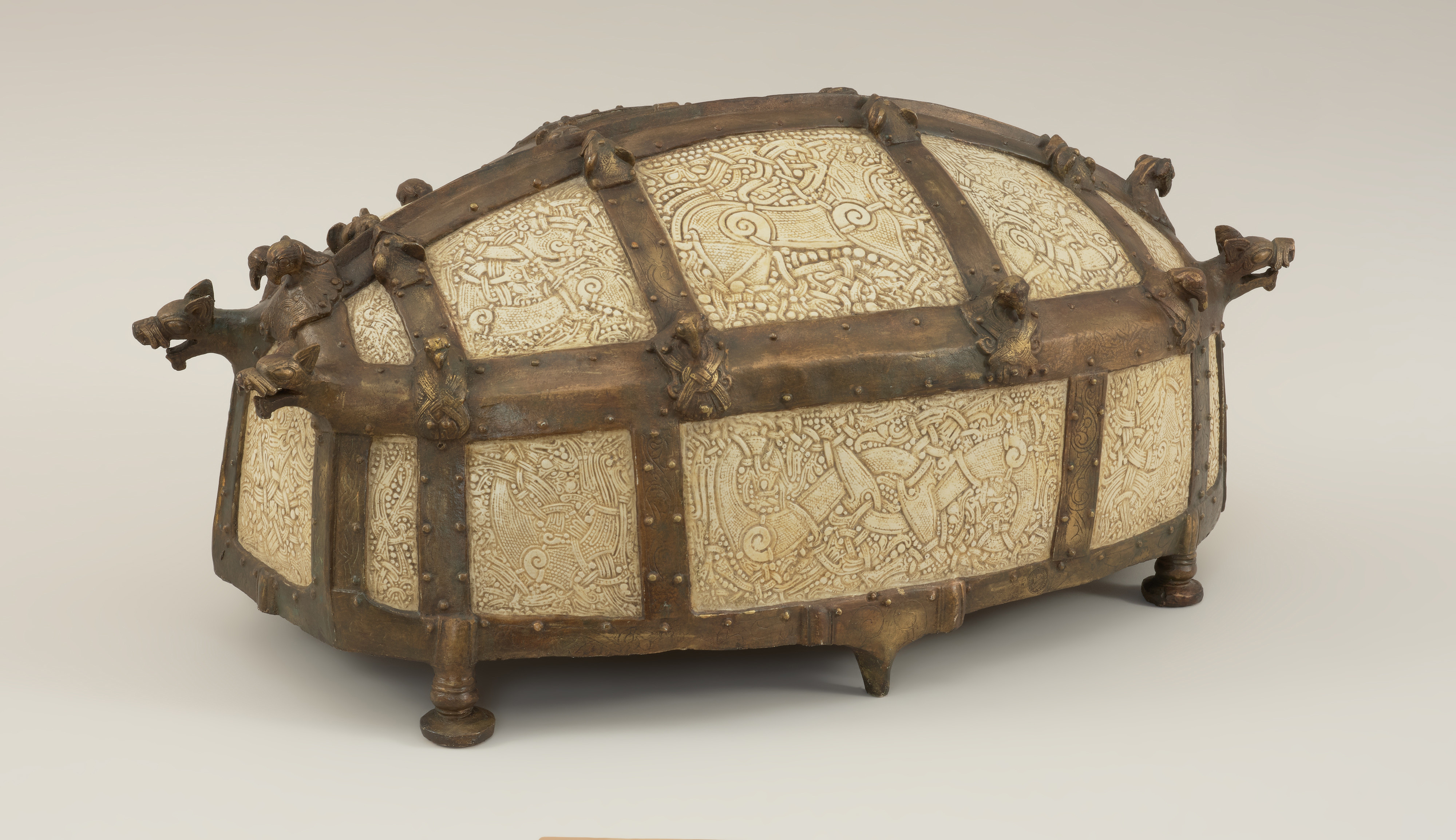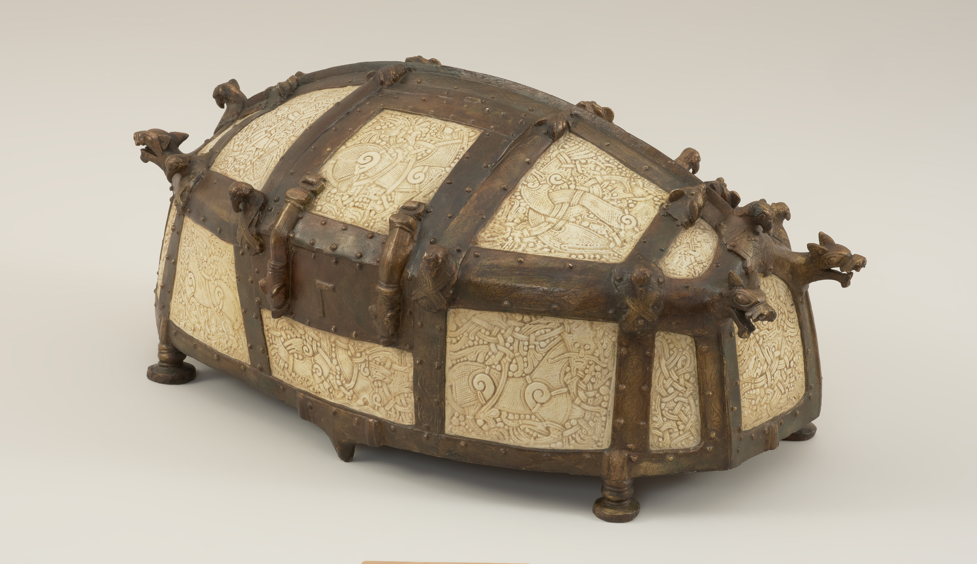 Nie udało się dotąd jednoznacznie ustalić, w jaki sposób szkatuła trafiła do Kamienia i skarbca katedralnego. Jedna z hipotez zakłada jej związek z wyprawą wojenną pomorskiego księcia Racibora I na norweskie miasto Kungahelli w 1135 roku – mogła być łupem wojennym, ofiarowanym następnie kościołowi. Zgodnie z inną opinią mogła być darem biskupa Ottona z Bambergu, Apostoła Pomorza, który był w posiadaniu dwóch takich szkatuł – jedną miał ofiarować kościołowi kamieńskiemu, drugą kilońskiemu. Jeszcze inna zakłada wykonanie szkatuły na miejscu, w pracowni rzemieślniczej Skandynawów osiadłych na Pomorzu. Ze źródeł pisanych wiadomo, że w XV wieku przechowywano w niej czaszkę i kości św. Korduli, jednej z towarzyszek rzymsko-brytyjskiej księżniczki Urszuli, która wyruszyła w podróż statkiem do swego przyszłego męża, królewicza z Bretanii. Wskutek zbiegu złych okoliczności orszak Urszuli znalazł się w jednym z galijskich fortów nad Renem. Księżniczka wraz ze wszystkimi kobietami została zamordowana przez Hunów, ocalała jedynie Kordula, która następnego dnia po pogromie, dręczona wyrzutami sumienia, sama oddała się w ręce oprawców. Jej czaszka, już jako święta relikwia, trafić miała do Kamienia.