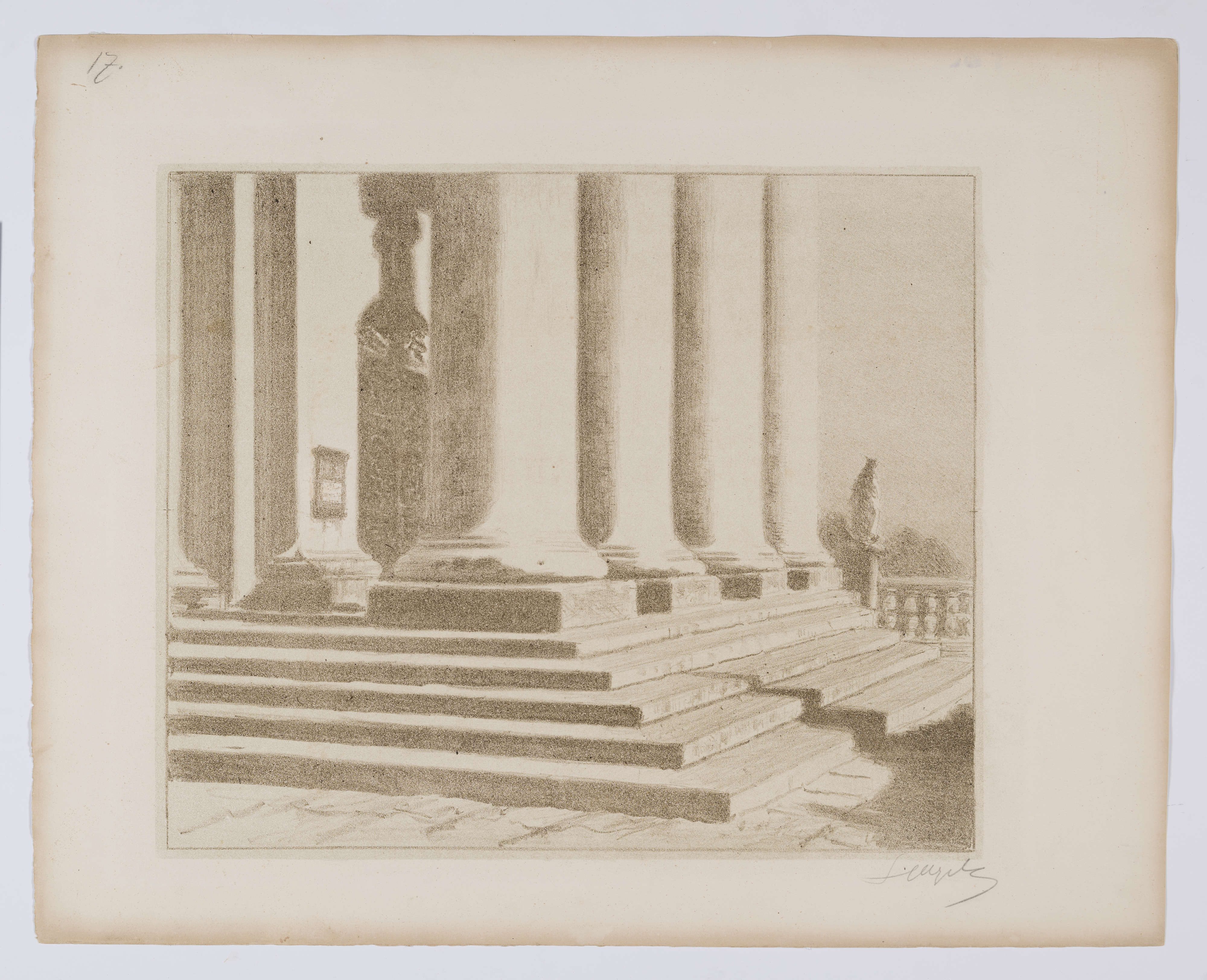 Teka Lublin stanowi jeden z najpiękniejszych portretów graficznych miasta, który artysta uzupełnił trzema planszami niezwiązanymi z architekturą. Należą do nich dwie wersje Sosenek i Stara lipa w Piotrawinie. Wyczółkowski przygotował rysunkowe szkice podczas pobytu w Lublinie w 1918 roku. Złożoną z siedemnastu plansz autolitograficznych tekę wydano rok później w Krakowie w dwudziestu egzemplarzach. Po wydrukowaniu założonego przez artystę nakładu kamienie litograficzne zostały zniszczone, co w przypadku Wyczółkowskiego było częstą praktyką i nadawało jego odbitkom unikatowy charakter. W ostatniej planszy teki, podobnie jak w przypadku Fryzu na gmachu Seminarium i Bernardynów, artysta koncentruje się na niewielkim wycinku architektury. Fragment fasady z ujętą w zbliżeniu zaskakująco skadrowaną dolną partią kolumnowego portyku i prowadzących do katedry schodów można traktować jako ekwiwalent całości. Redukcja formy, wynikająca z zawężonego kadru, zdradza wpływy japońskiego drzeworytu i charakterystyczne dla dojrzałej twórczości rozmiłowanie w detalu architektonicznym. Efekt nocnego światła potęguje przyszarzała kolorystyka oraz miękkie, zacierające się w mroku kontury.