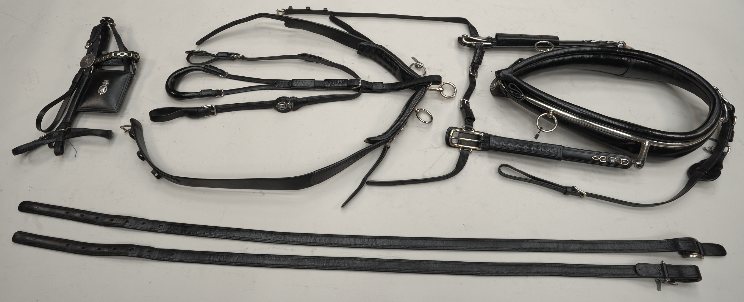 Komplet dwukonnej uprzęży chomątowej Austria, Schleuchter, k. XIX wieku.