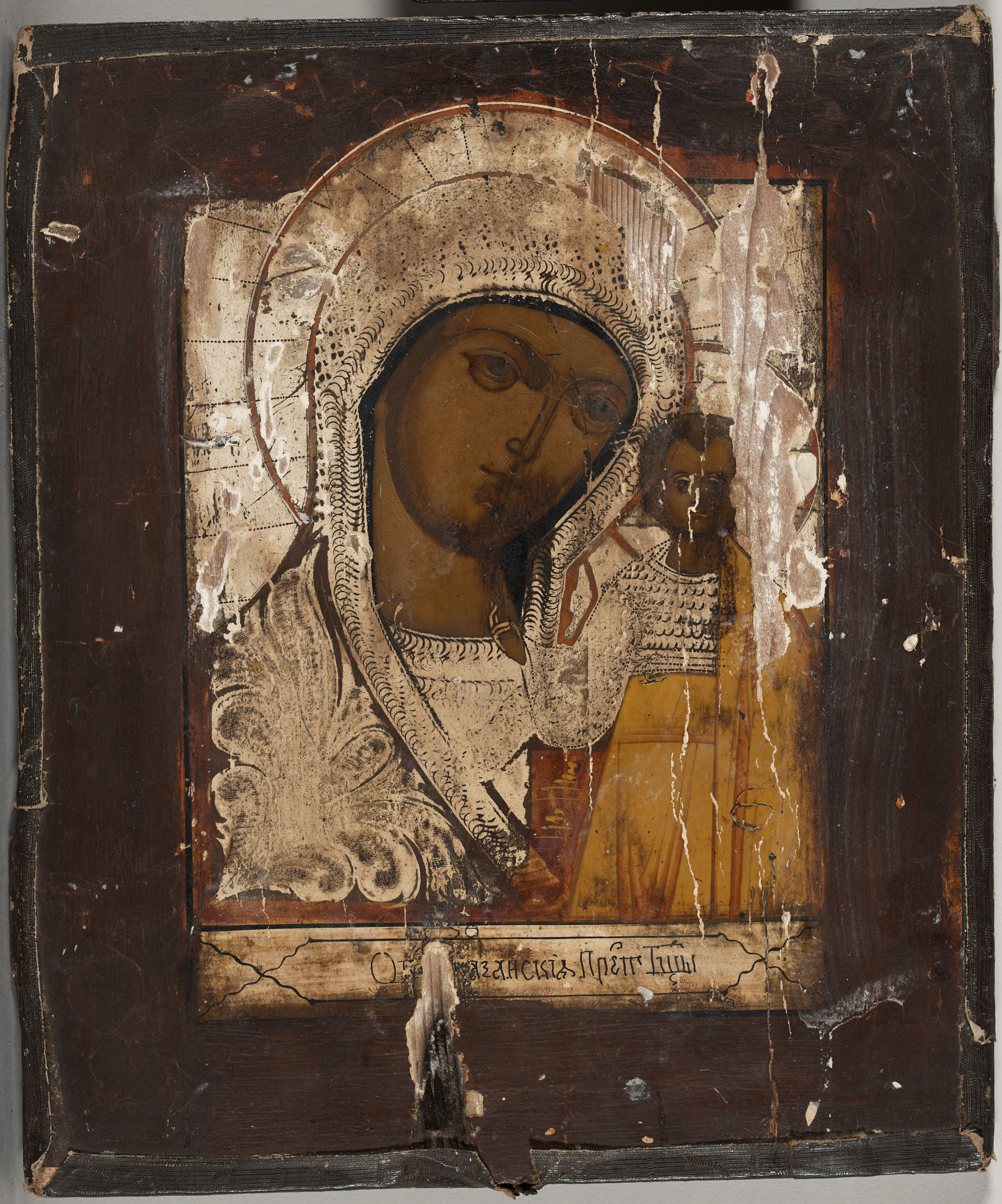 Wizerunek Bogurodzicy Kazańskiej wyróżnia się charakterystycznym popiersiowym ujęciem Marii z Jezusem i należy do jednego z licznych wariantów Hodigitrii – Przewodniczki, patrz S.12677MŁ. Powielany w licznych kopiach, także w ikonach domowego użytku, jak opisywana S.12770MŁ, cieszy się na terenach Rosji niesłabnącą popularnością wśród prawosławnych chrześcijan. Objawienie ikony wiązało się z krzewieniem religii chrześcijańskiej w rozrastającym się Carstwie Rosyjskim. Miasto Kazań leży w środkowym dorzeczu Wołgi, gdzie od VII w. istniała Bułgaria Wołżańsko-Kamska, opanowana w XIII w. przez plemiona tatarskie, które po rozpadzie Złotej Ordy w XV w. stworzyły Chanat Kazański zwany Tatarstanem. Jego najbliższym zachodnim sąsiadem była Ruś Włodzimiersko-Suzdalska, zwana w XIII-XV w. Wielkim Księstwem Włodzimierskim. Po zajęciu Kijowa przez plemiona mongolskie w XIII w. Włodzimierz pozostawał siedzibą wielkich książąt ruskich i metropolity kijowskiego – prężnym ośrodkiem chrześcijaństwa, w odróżnieniu od Kazania – prężnego ośrodka islamu. Po połączeniu Rusi Włodzimiersko-Suzdalska z Wielkim Księstwem Moskiewskim pierwszy na tronie moskiewskim car Iwan IV Groźny walcząc z Chanatem Kazańskim w 1552 r. podbił i zajął miasto Kazań wcielając go do władztwa moskiewskiego. W obliczu dominującego w Tatarstanie islamu, przyniesione z Moskwy prawosławie rozprzestrzeniało się z trudem. Na domiar złego w lipcu 1579 r. w domu strzelca Daniela Onuczina wybuchł pożar, który strawił w ciągu kilku godzin Kazań. Muzułmanie tłumaczyli to wydarzenie gniewem „ruskiego boga” na prawosławnych. W przygnębiającej atmosferze 8 (21 wg kalendarza juliańskiego) lipca 1579 r. w zgliszczach domu Onuczinych odnaleziono ikonę Bogurodzicy z Chrystusem. Jej dalsze dzieje opisano pod S.12773MŁ.