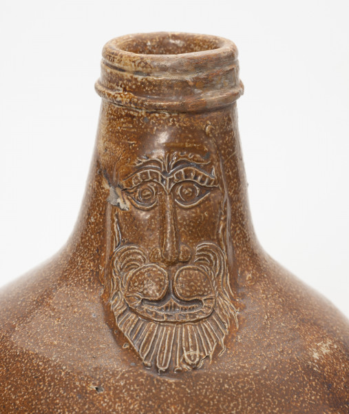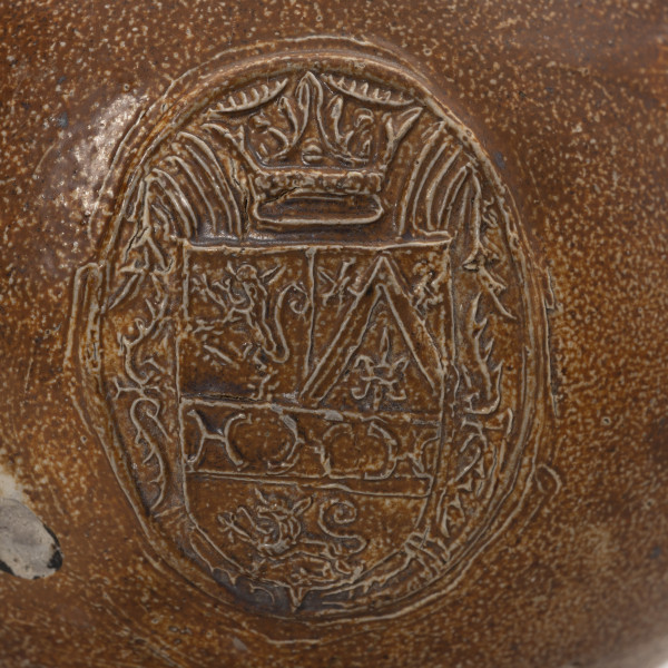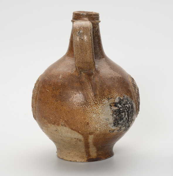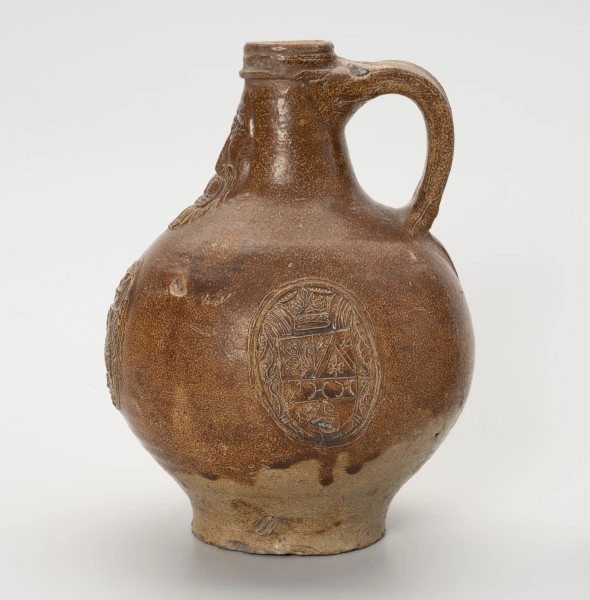 Wśród naczyń produkowanych w ośrodku garncarskim we Frechen (Nadrenia Północna-Westfalia) wyróżniają się dzbany z brodaczami, niem. Bartmannskrug. Są to naczynia o kulistym bądź gruszkowatym brzuścu, krótkiej i wąskiej szyjce, na której umieszczano twarz mężczyzny z brodą. Oprócz brodaczy na nakładkach zdobiących szyjki i brzuśce dzbanów tego typu pojawiały się również motywy roślinne, sentencje lub medaliony. Prezentowany egzemplarz zdobiony jest na brzuścu trzema medalionami o motywach heraldycznych umieszczonych na tarczy herbowej zwieńczonej koroną, której jednym z elementów jest kroczący lew, godło książąt Jülich, przez wiele wieków władających Frechen.