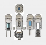 Gabinet na planie kwadratu zwieńczony został półkolistą kopułą z oculusem na szczycie, przez który do wnętrza wpada światło. Ściany zostały ujęte w zdwojone arkady filarowe, w których od północy i zachodu znajdują się portale z wejściami do Antykamery i Biblioteki Króla, od południa półkoliście zamknięte okno w obramieniu z uszakami u dołu, a od wschodu ustawiony ołtarz z półkoliście zamkniętą niszą z posągiem Madonny z Dzieciątkiem. Do wysokości gzymsu, pod łukami arkad, ściany wyłożono marmurem karraryjskim; dekorację powyżej wykonano w stiuku i zaprawie wapiennej. Obramienia drzwi, okna i niszy ołtarzowej zdobione są delikatnym ornamentem perełkowym; nadproża portali kimationem jońskim. Czaszę kopuły wypełniają kasetony czworo i wieloboczne z dekoracją roślinną i pojedynczymi rozetami. Wszystkie ornamenty wystroju i wyposażenia wykonano płaskim reliefem. Marmurowy ołtarz przyścienny i tabernakulum zdobione są ornamentem oraz inkrustacją z kolorowych kamieni.