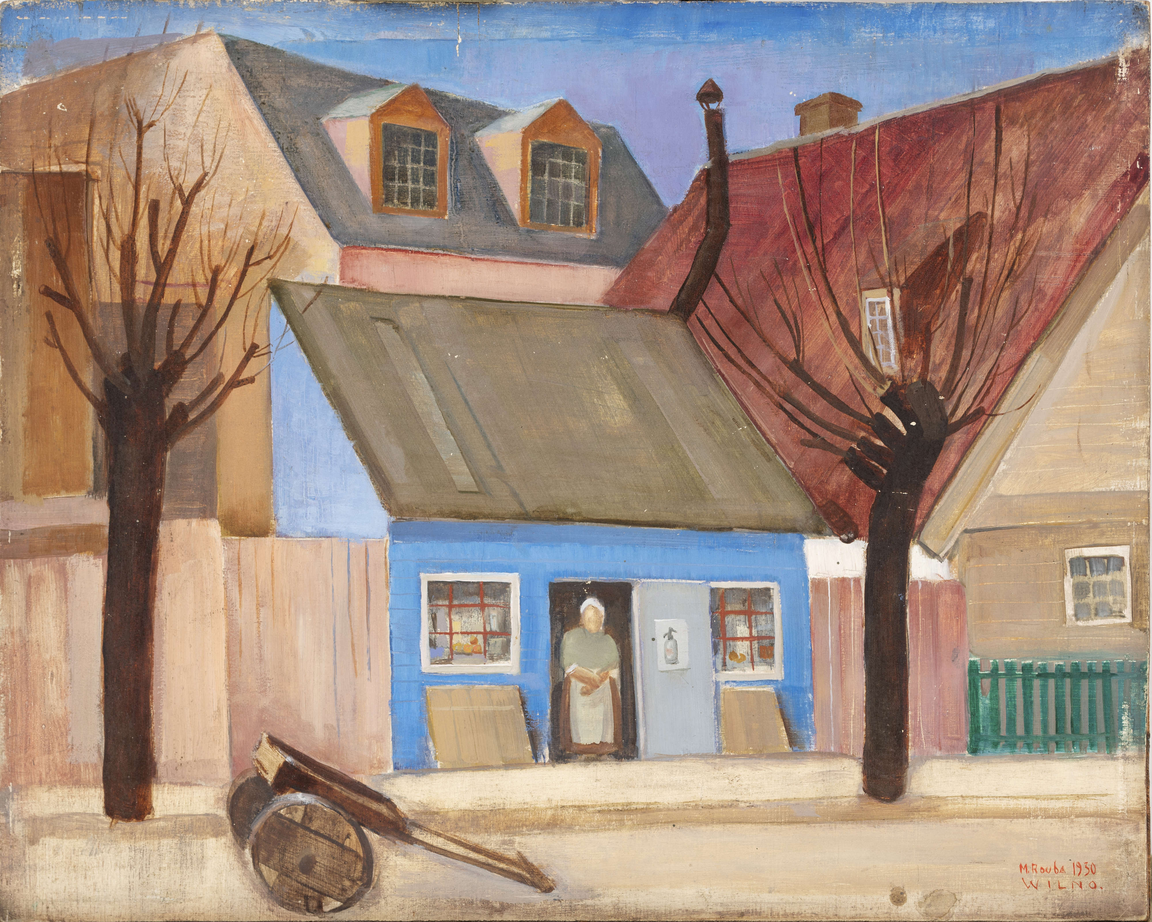 Twórczość Rouby ujmowała dwa aspekty malarstwa pejzażowego – zdystansowanych obserwacji panoramicznie ukazanych scen i wyobrażeń miejskich, wedut kształtowanych wąskim ujęciem ciasno zabudowanych kompozycji. Ulica Mickiewicza – główna arteria dawnego i współczesnego Wilna – stanowi malarską transpozycję w kameralne studium wypełnione gęstą drewnianą zabudową. Scena wypełniona mocnym światłem jest pozbawiona szczegółów, zredukowana do geometrycznego rytmu kolorowych brył i płaszczyzn, wąskiego pasa ulicy i porzuconej drewnianej taczki. W ten pusty, wyciszony miejski krajobraz jest wkomponowana stojąca w drzwiach kobieca postać ukazana frontalnie, uogólniona, pozbawiona indywidualności. Jednocześnie wileński krajobraz jest pokazany z niezwykłą zażyłością, ciepło, intymnie, potraktowany prowincjonalnie, ale też czule. W 1930 Rouba spędził wakacje we Włoszech, znajdując tam inspiracje dla nowej formuły krajobrazu, barwnego, rozświetlonego, wypełnionego zabudowaniami.