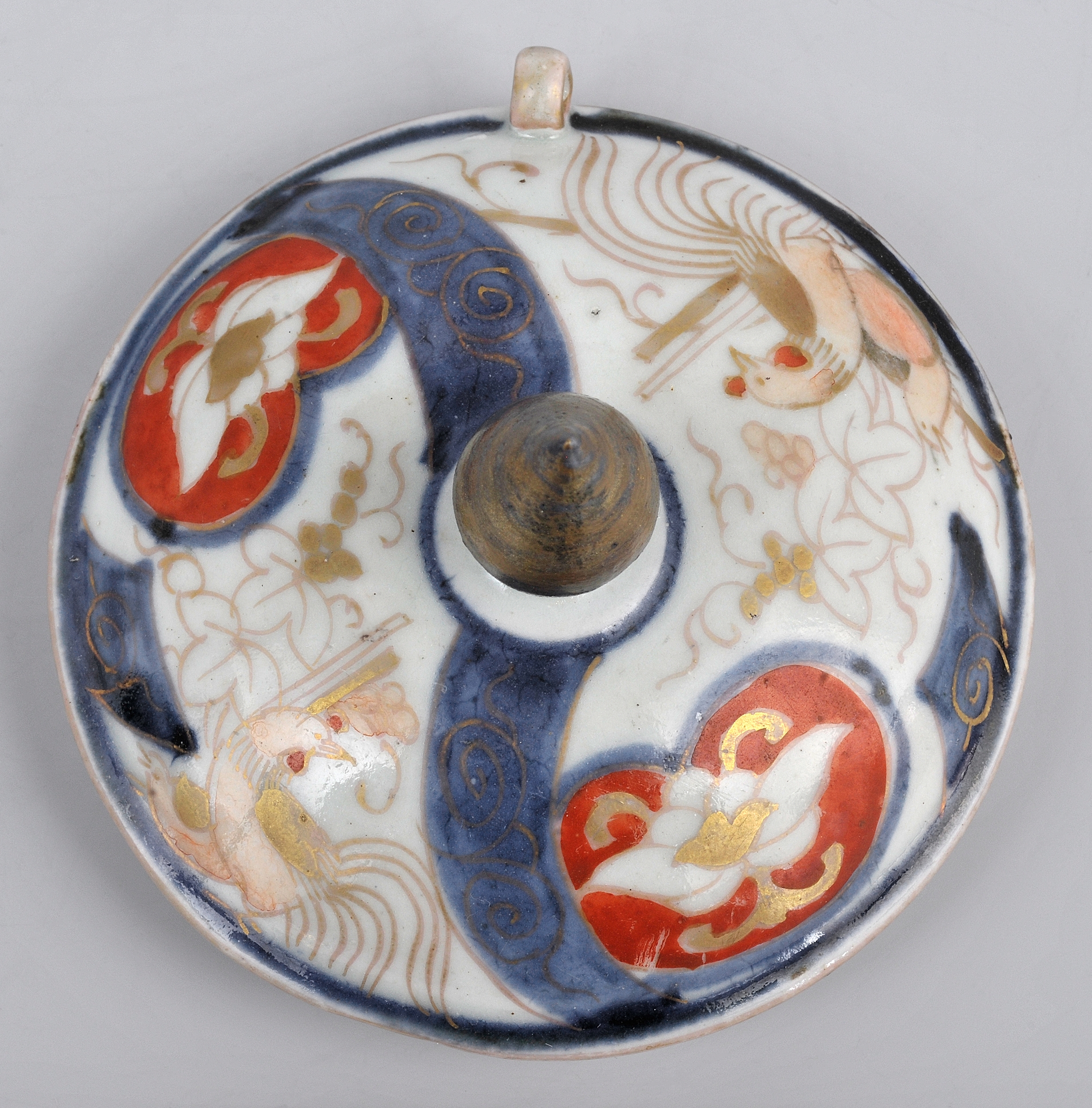 Imbryczek z jego dekoracją jest przykładem zdobienia nazywanego „Imari”, czyli porcelany wytwarzanej w Arita na wyspie Kiusiu. Określenie Imari pochodzi od nazwy portu, z którego wypływały statki z japońskimi wyrobami eksportowymi. Kolorystyka charakterystyczna dla porcelany typu Imari obejmowała podszkliwny kobalt i naszkliwną czerwień żelazową i złocenia. Wyroby dalekowschodnie były niezwykle cenione i pożądane w Europie, dlatego też od XVII wieku produkowano je z przeznaczeniem na rynek europejski jako naczynia dekoracyjne.