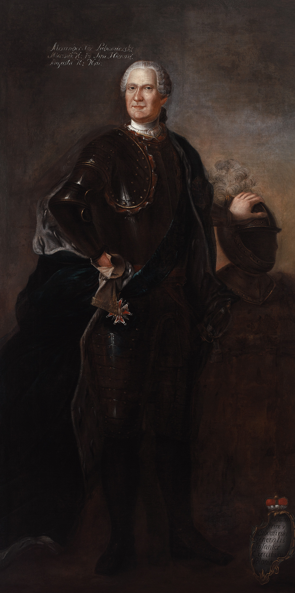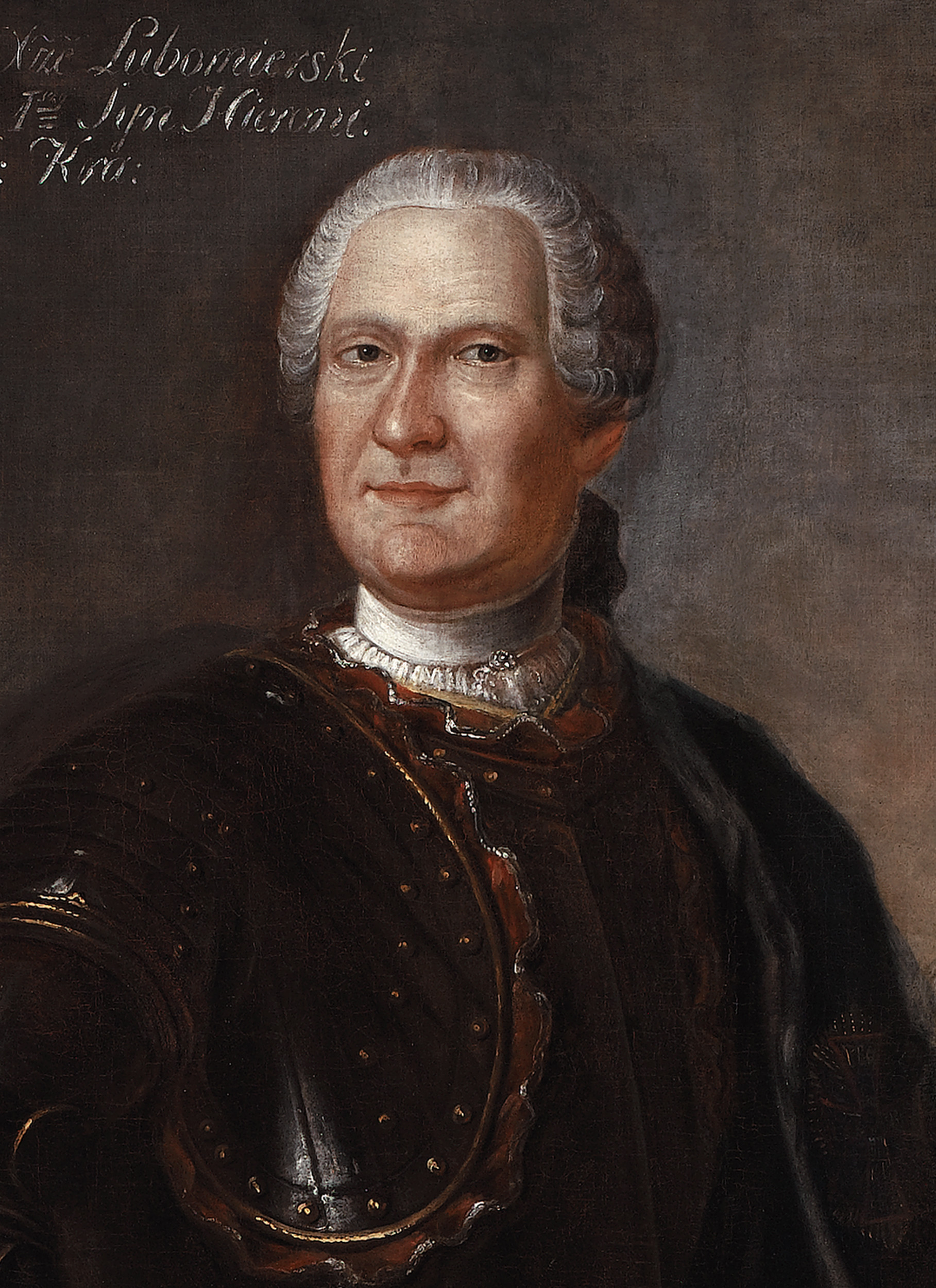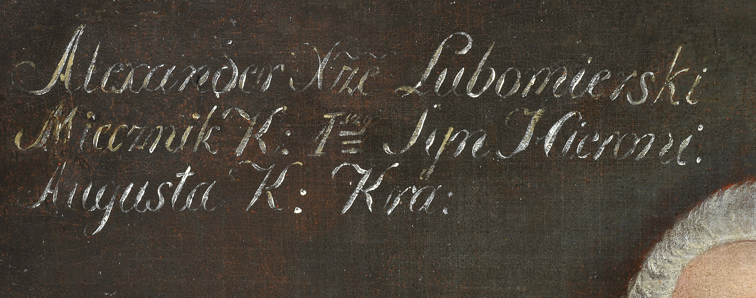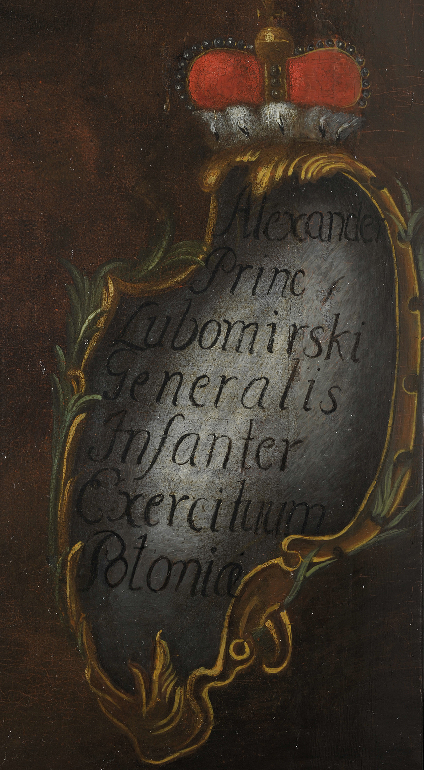 Jakub Aleksander Lubomirski (1695-1772), książę, miecznik wielki koronny; Hieronim Augustyn Lubomirski (ok. 1647-1706), książę; Konstancja Bokumówna (Konstancja z Bokumów Lubomirska; zm. 1709); August II Wettin (1670-1733); peruka z harcapem; hełm z białym pióropuszem; Order Orła Białego; zbiory wilanowskie.