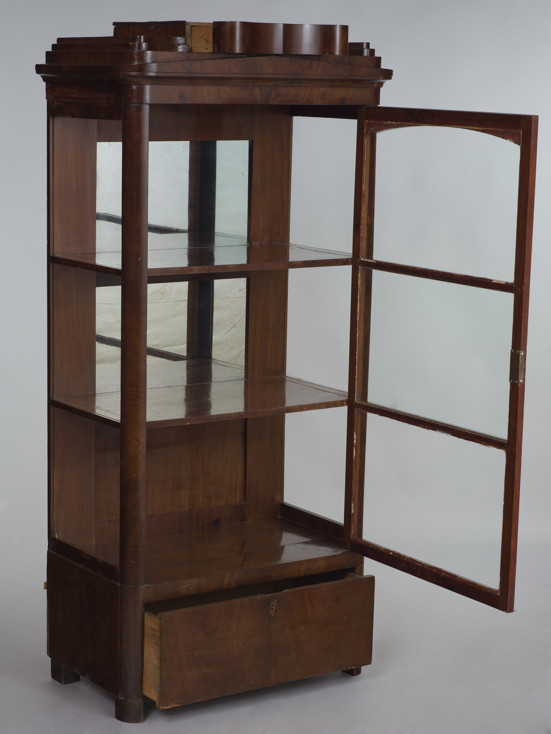 Tego typu meble były bardzo popularne w XIX wieku jako wyposażenie salonów i jadalni, ale także pomieszczeń przeznaczonych do wypoczynku. Miały podwójne przeznaczenie – poza niewątpliwą funkcją ekspozycyjną, umożliwiającą podziwianie bezpiecznie zamkniętych wewnątrz cennych i kruchych przedmiotów, takich jak szkło, kryształy, porcelana czy srebra w każdej chwili umożliwiały one pełen dostęp do ich zawartości jeśliby zaszła potrzeba skorzystania chociażby z serwisu herbacianego podczas niewielkiego spotkania towarzyskiego w pokoju muzycznym. Z kolei na zwieńczeniu można było eksponować nieduże rzeźby lub wazy.