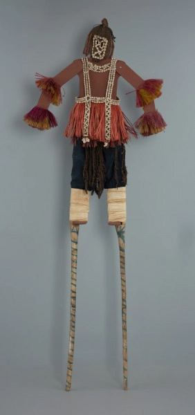 Maski na szczudłach nigdy nie tańczą, tak jak pozostałe w kręgu, lecz zjawiają się niespodziewanie w czasie już trwających tańców i po krótkiej chwili równie nagle znikają. Używane są przez członków tajnego stowarzyszenia Awa podczas świąt pogrzebowych Dama.