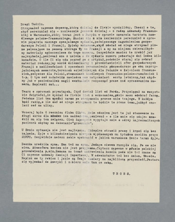 Prawda, że przyjemnie jest dowiedzieć się[,] że gdzieś, w dalekiej, zamorskiej krainie, jest ktoś bliski, którego się nie zna[,] ale którego gotowym się jest poznać i kochać z daleka? Taką przyjemność mieliśmy tu moja Mama i ja, gdy Twoja Mama o Tobie nam napisała. Teraz więc chcielibyśmy Cię poznać, niestety tylko z listów i z fotografji, aż będziecie mogli wybrać się do nas na wizytę. A kto wie kiedy to nastąpi.
